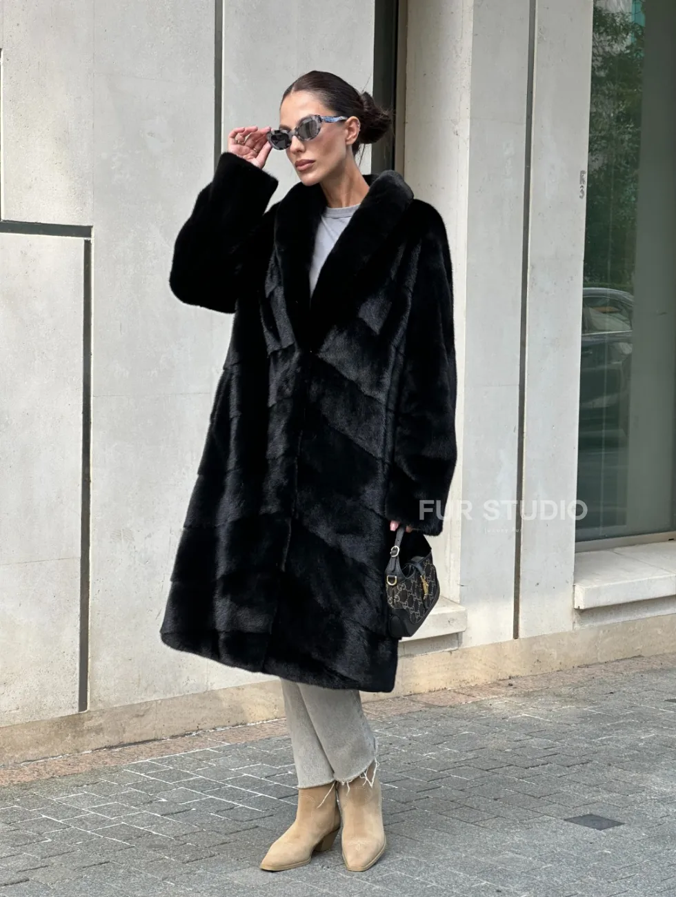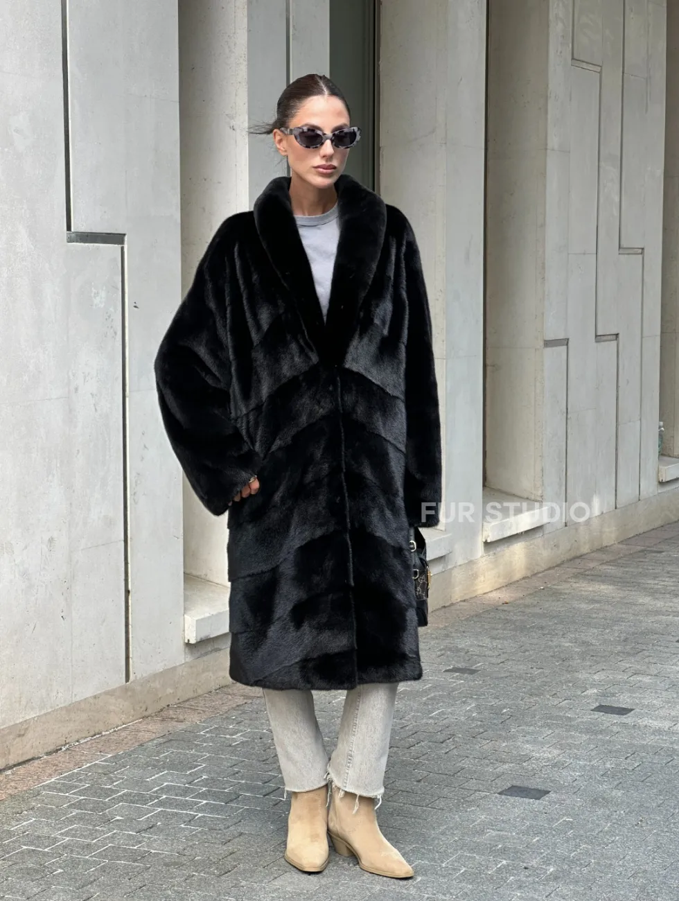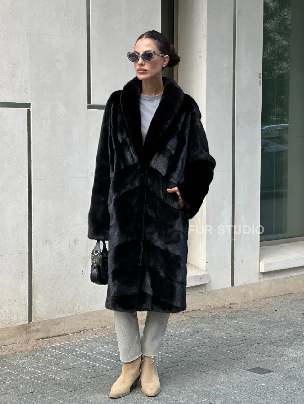 Шуба из скандинавского меха норки Saga furs с шалевым воротником доступна для покупки в нашем шоуруме Furs Studio в Чите. У нас так же есть доставка во все города России. Добавьте немного роскоши в свой гардероб с этой шубой, которая будет служить вам многие годы.