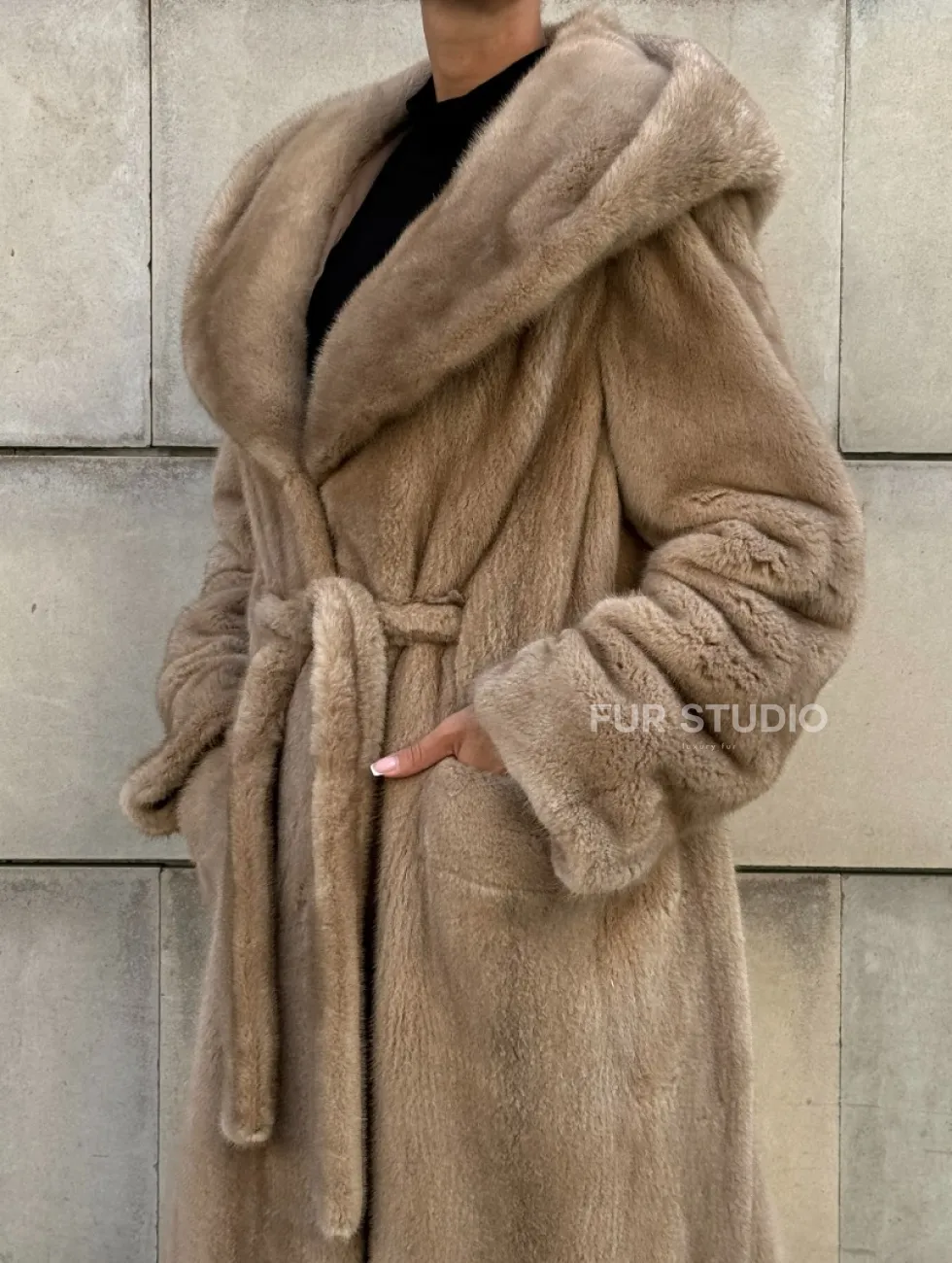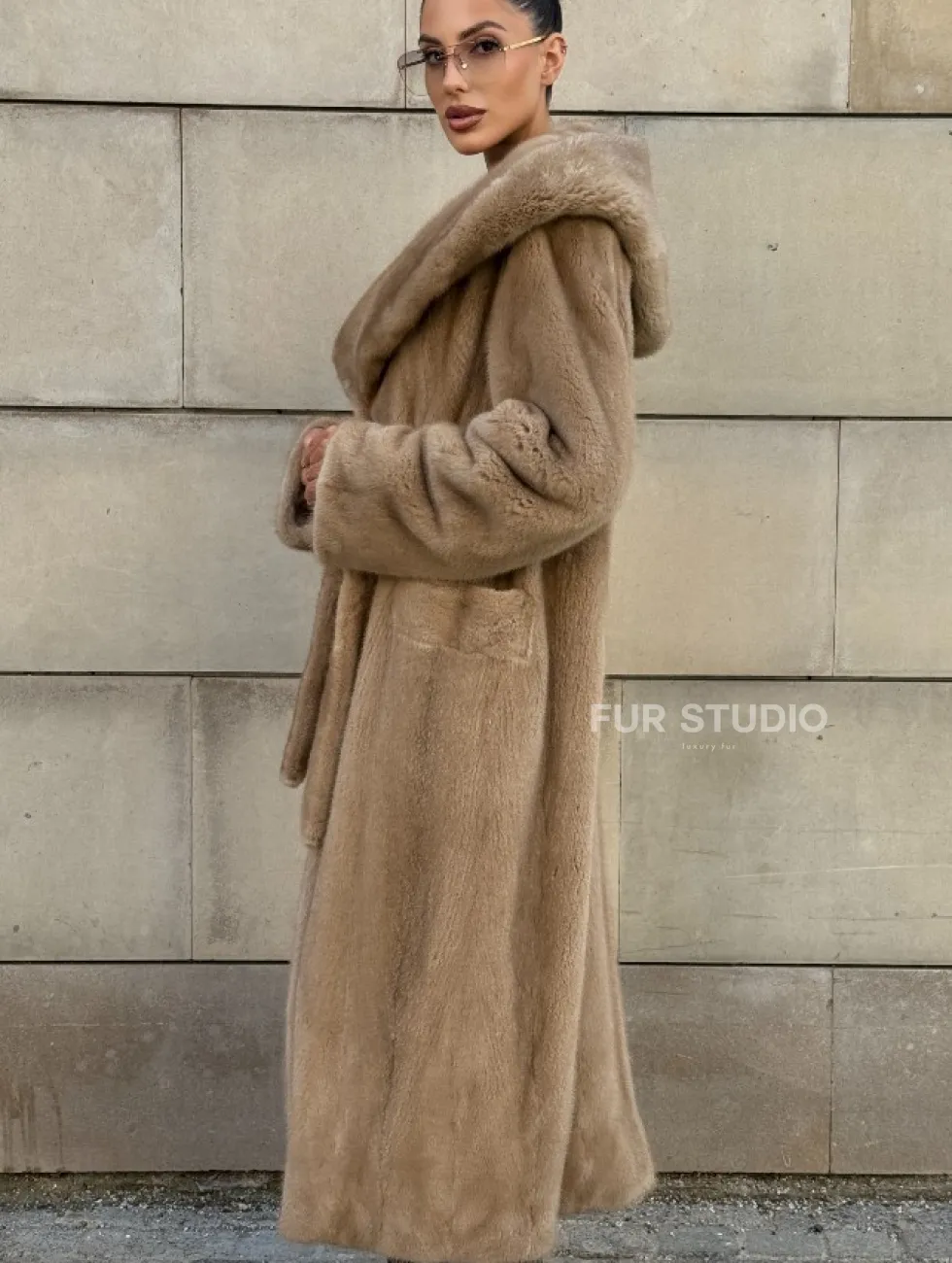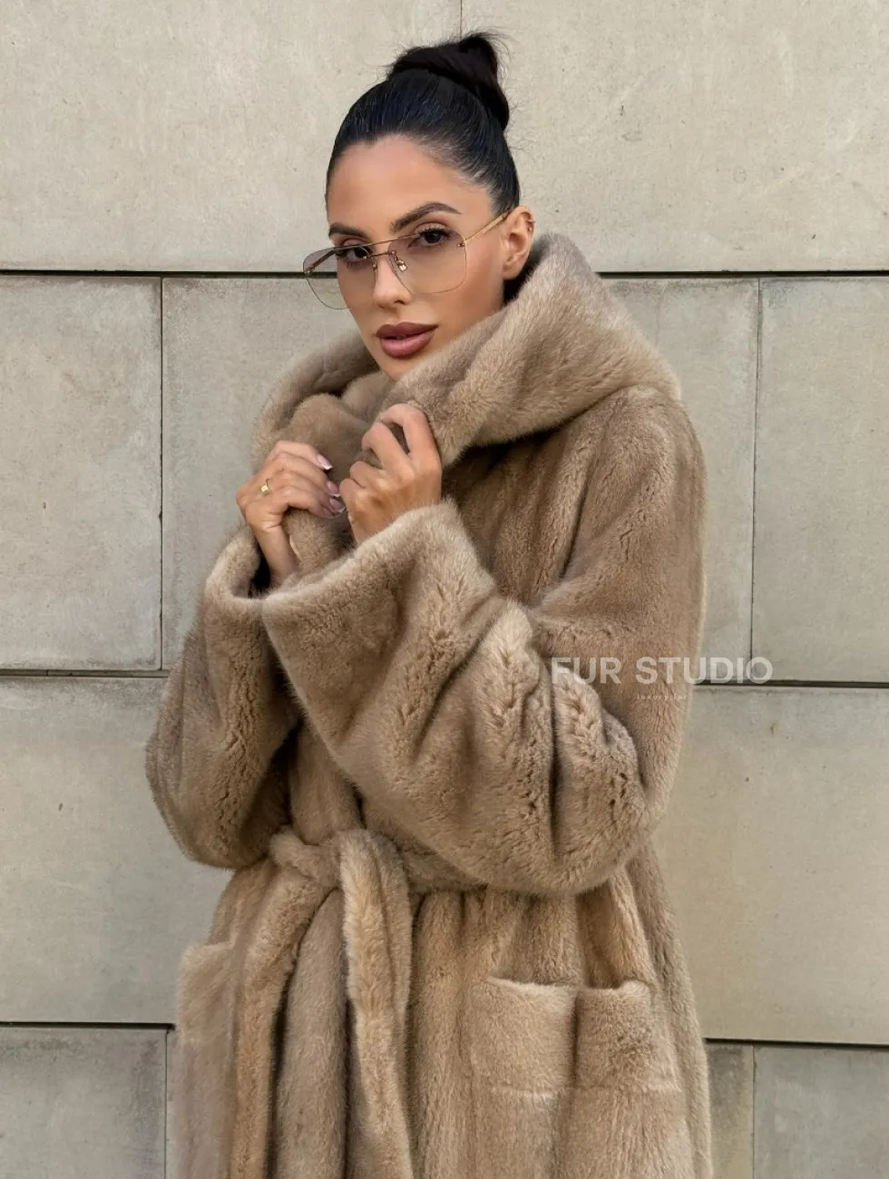 Шуба из скандинавской норки с капюшоном, цельный мех доступна для покупки в нашем шоуруме Furs Studio в Чите. У нас так же есть доставка во все города России. Добавьте немного роскоши в свой гардероб с этой шубой, которая будет служить вам многие годы.