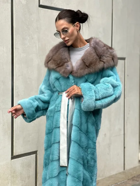 Мех данной шубы аукционная норка, цвет коричневый. Предлагается в размерах от 42 до 52. Длина модели 110-115 см, что выгодно подчеркивает фигуру девушек. Эта модель идеально подойдет для девушек и женщин, предпочитающих роскошные натуральные меха.