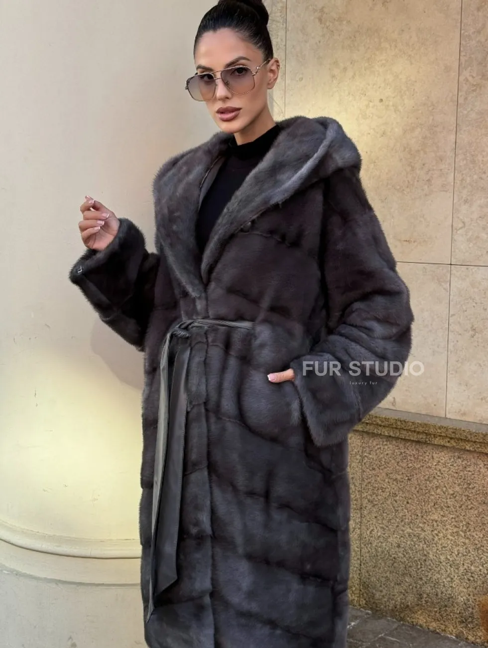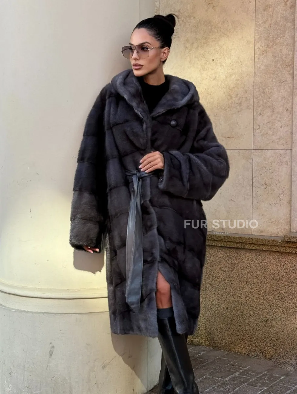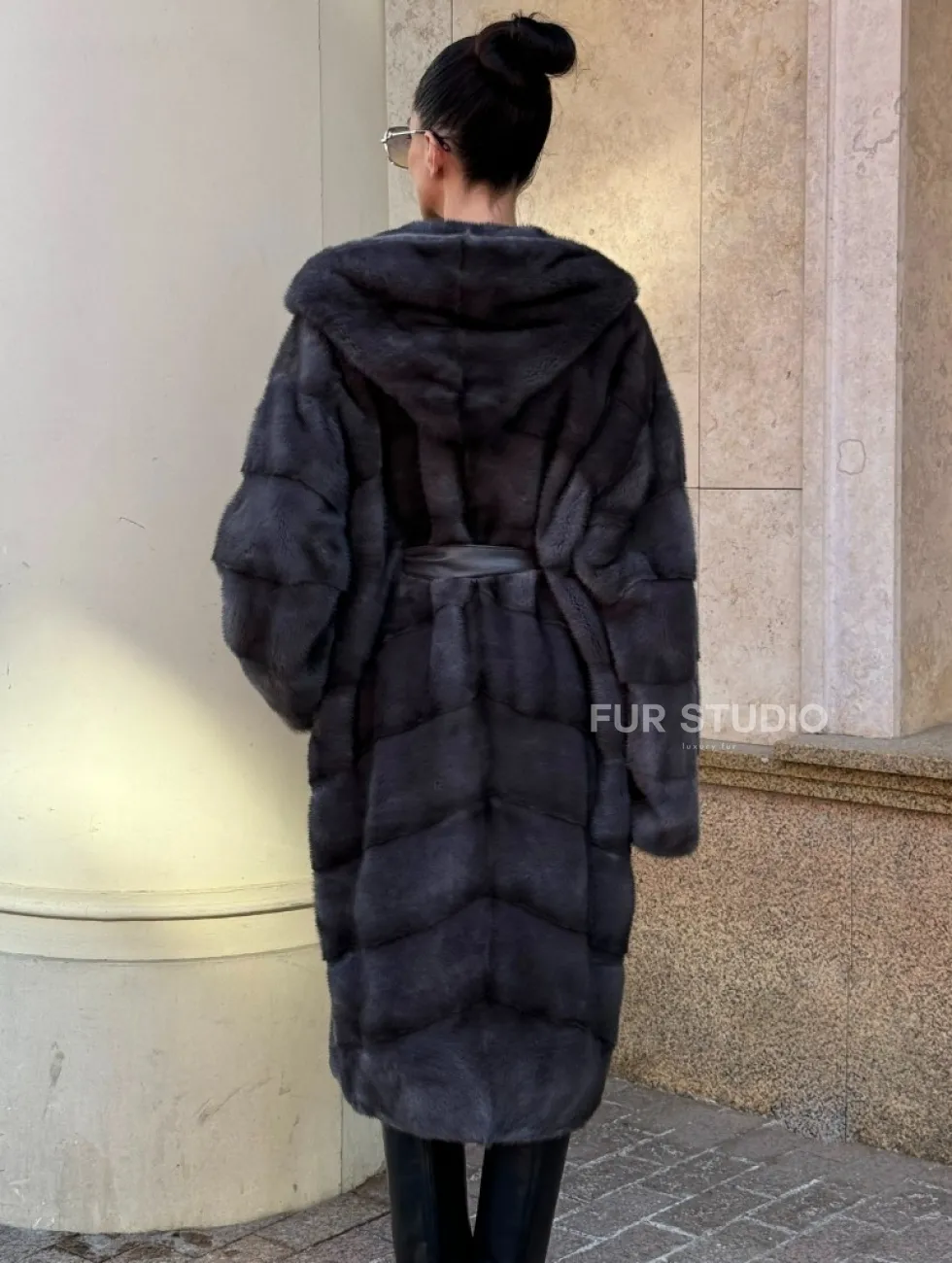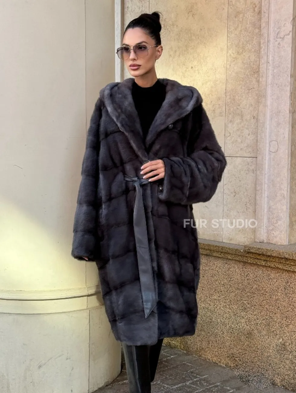 Шуба кимоно из импортной норки с капюшоном в цвете графит доступна для покупки в нашем шоуруме Furs Studio в Чите. У нас так же есть доставка во все города России. Добавьте немного роскоши в свой гардероб с этой шубой, которая будет служить вам многие годы.