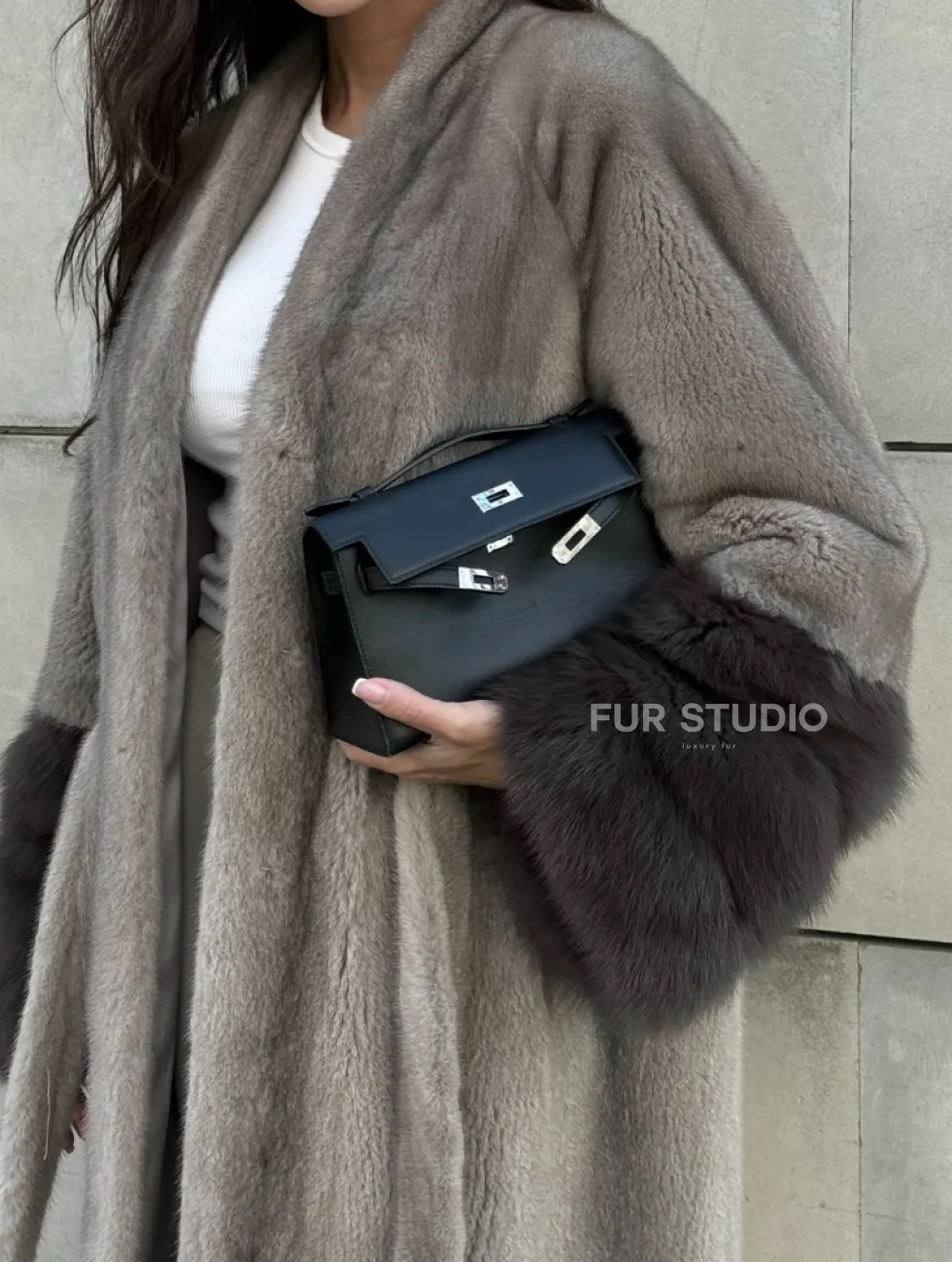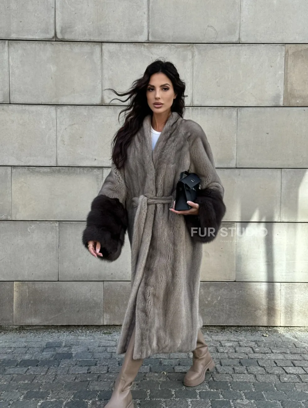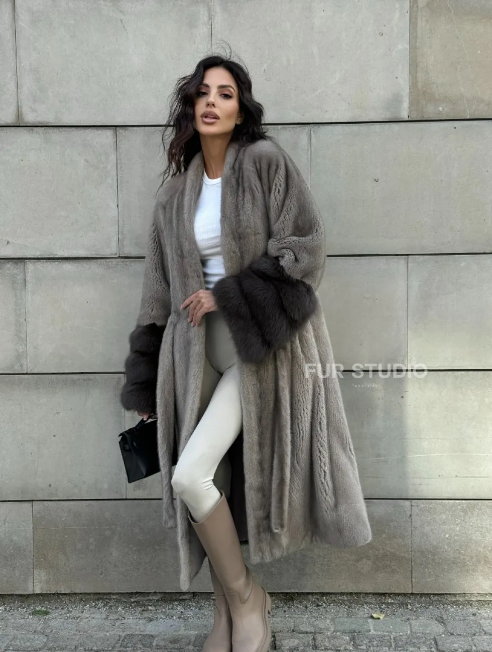 Шуба кимоно из меха норки Vintage Grey рукава с отделкой из куницы доступна для покупки в нашем шоуруме Furs Studio в Чите. У нас так же есть доставка во все города России. Добавьте немного роскоши в свой гардероб с этой шубой, которая будет служить вам многие годы.