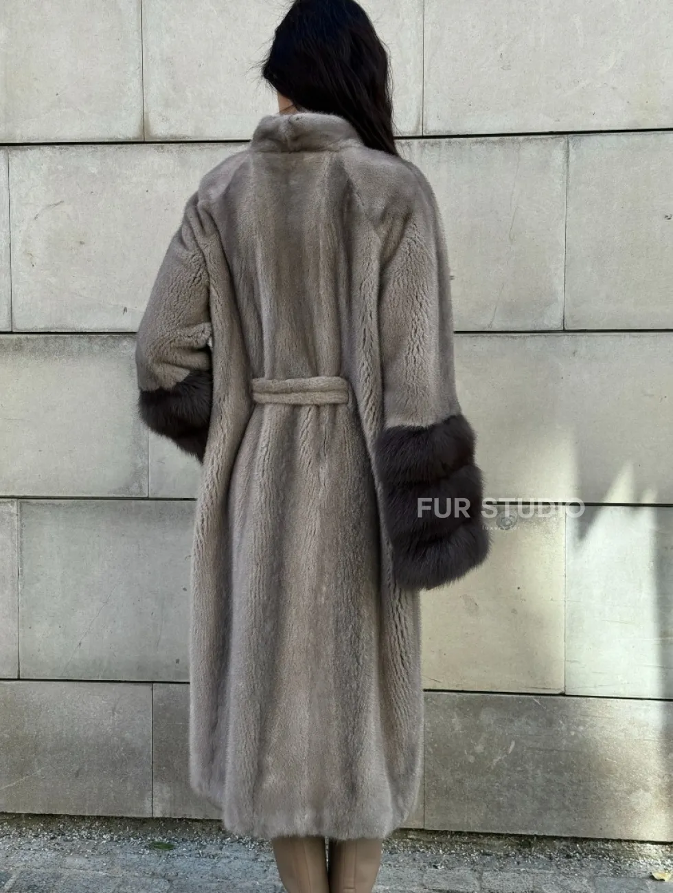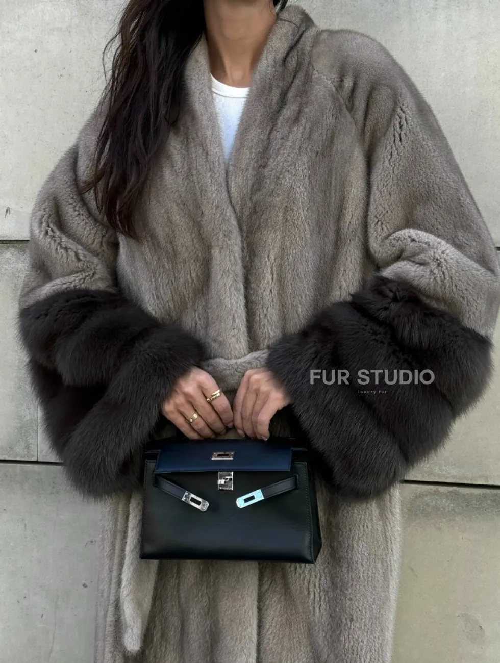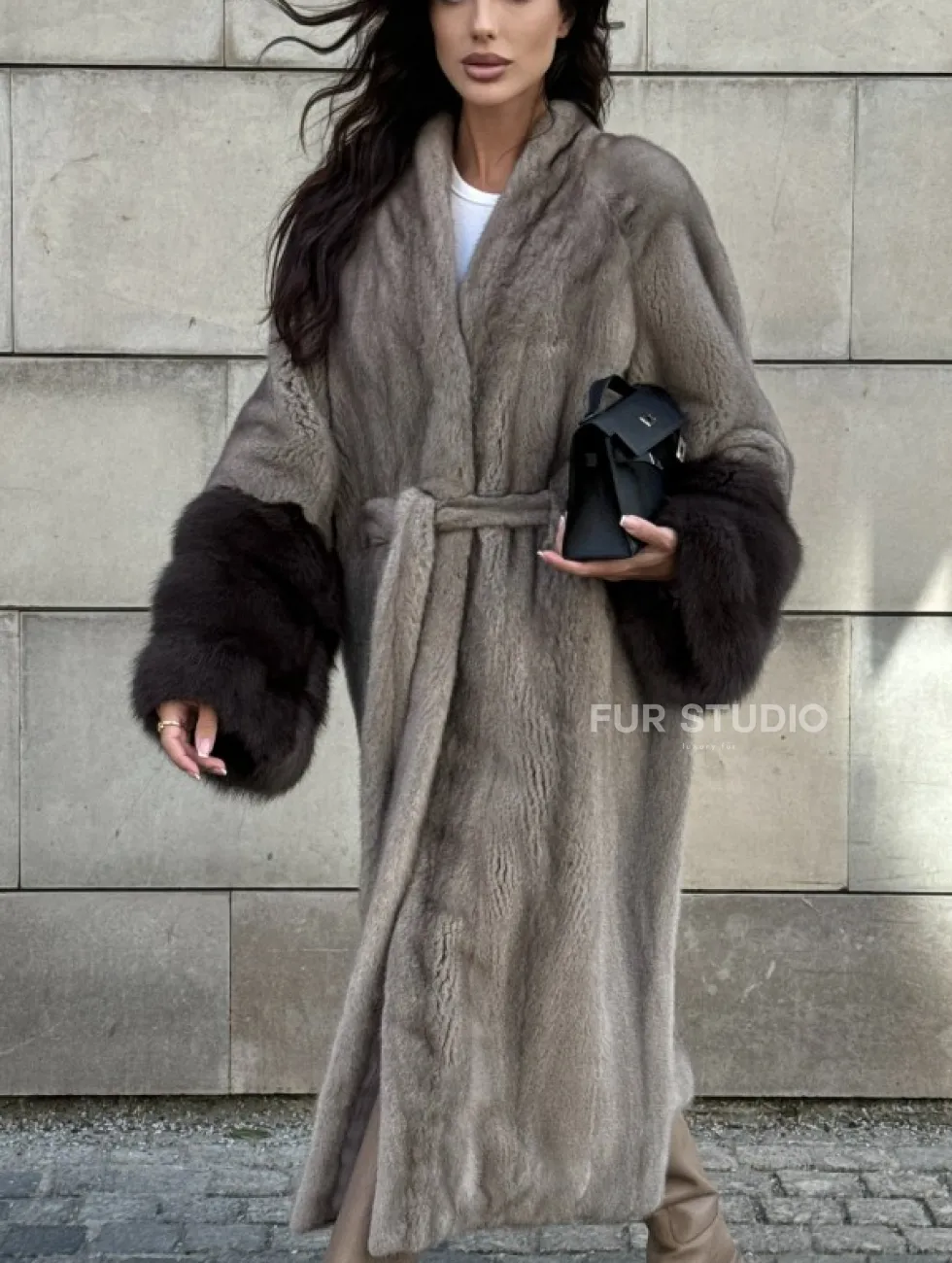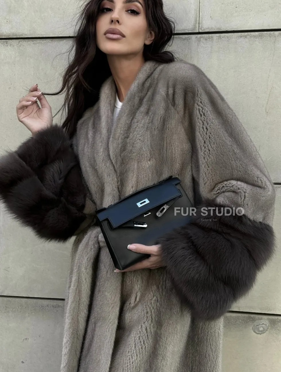 Шуба кимоно из меха норки Vintage Grey рукава с отделкой из куницы доступна для покупки в нашем шоуруме Furs Studio в Чите. У нас так же есть доставка во все города России. Добавьте немного роскоши в свой гардероб с этой шубой, которая будет служить вам многие годы.