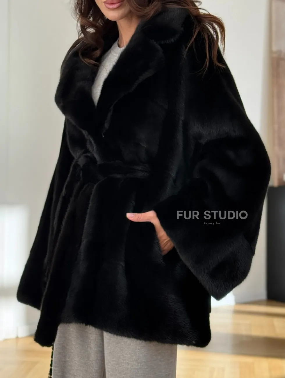 Шуба кимоно из норки - черная доступна для покупки в нашем шоуруме Furs Studio в Чите. У нас так же есть доставка во все города России. Добавьте немного роскоши в свой гардероб с этой шубой, которая будет служить вам многие годы.