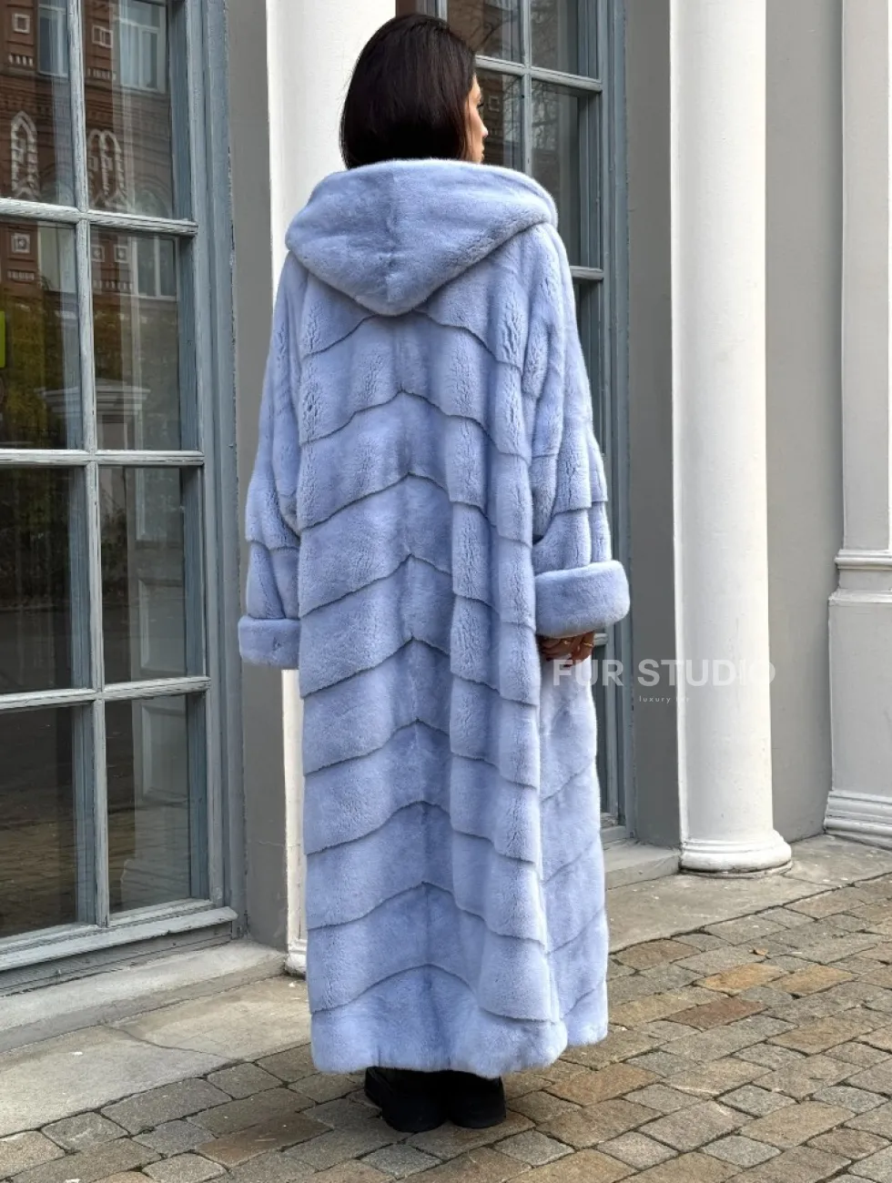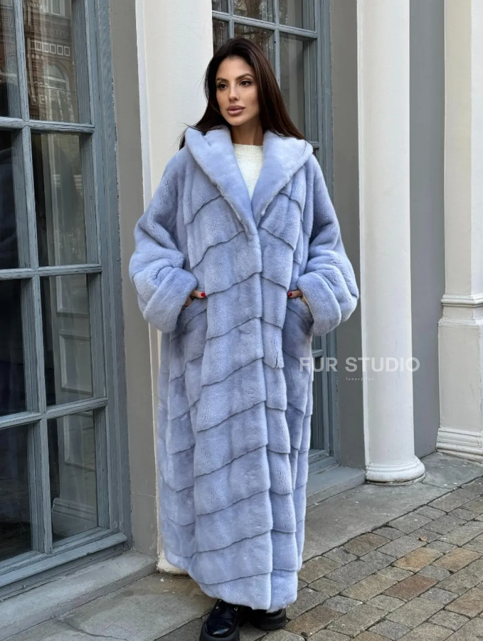 Шуба кимоно LUXURY FASHION из меха голубой норки с капюшоном доступна для покупки в нашем шоуруме Furs Studio в Чите. У нас так же есть доставка во все города России. Добавьте немного роскоши в свой гардероб с этой шубой, которая будет служить вам многие годы.