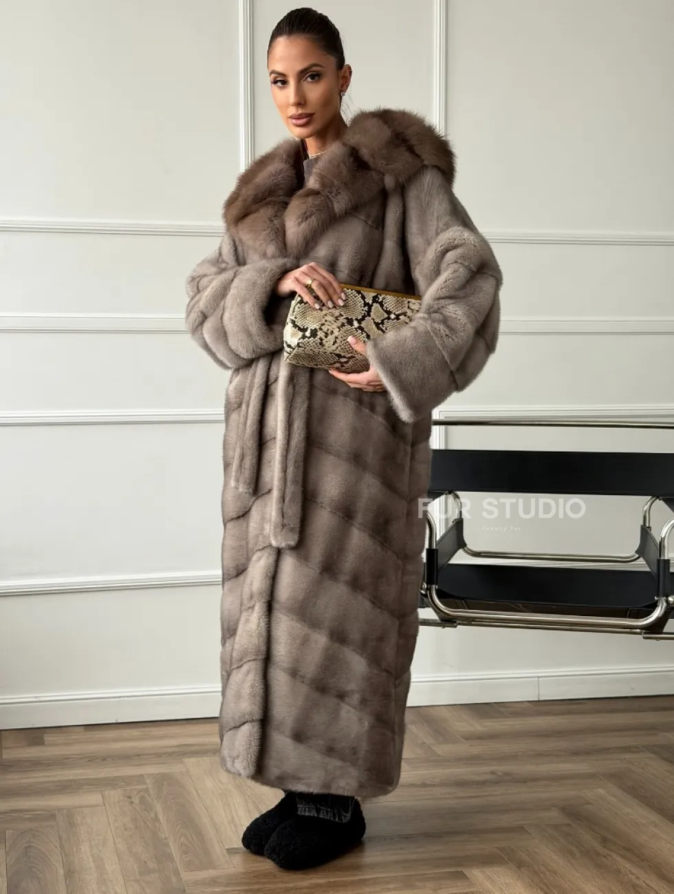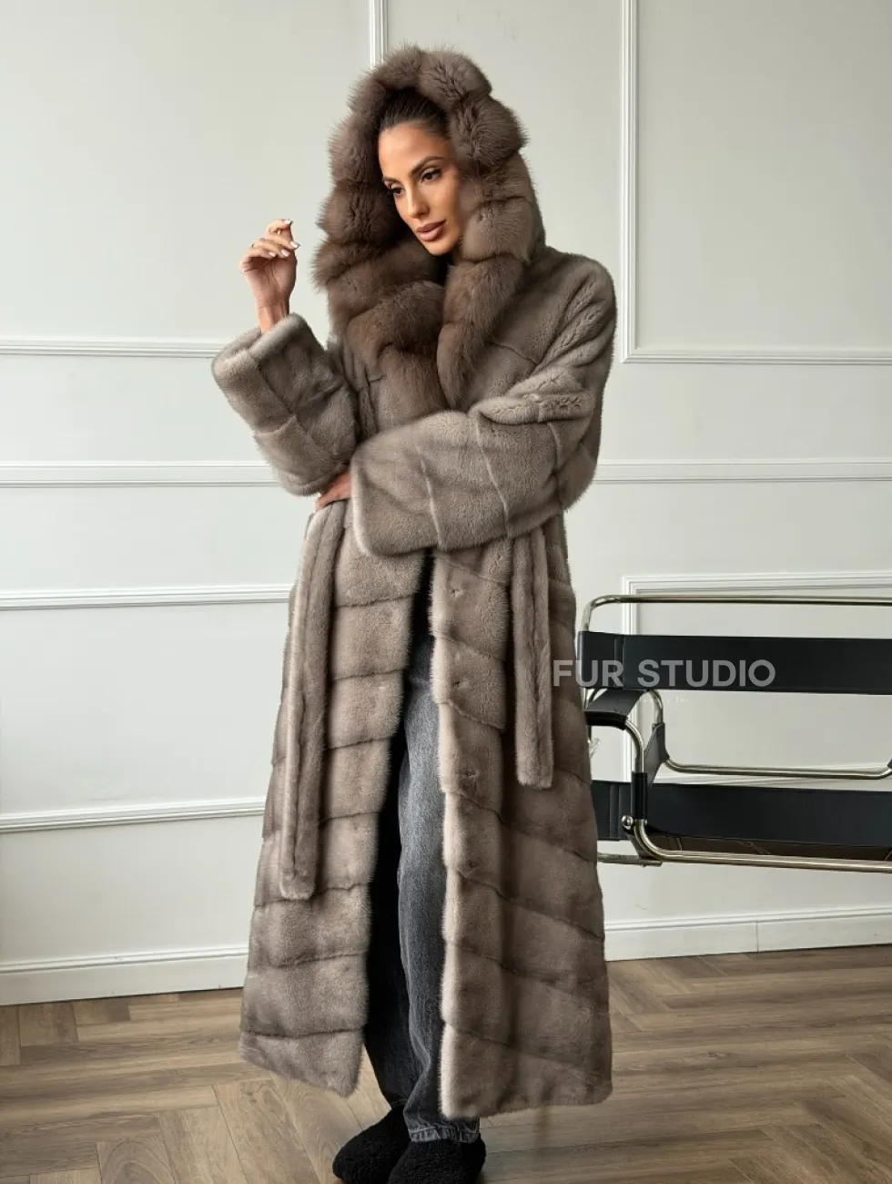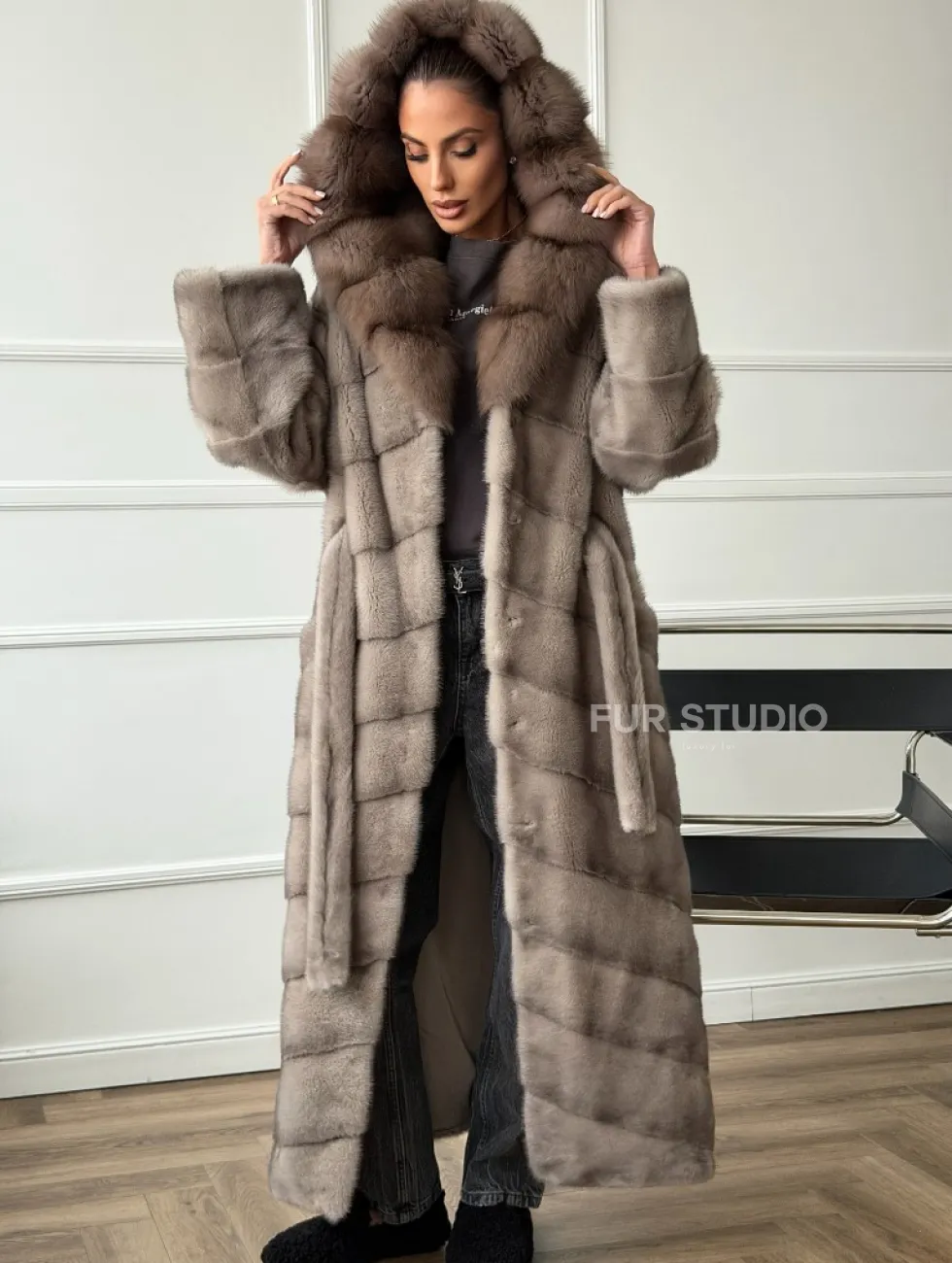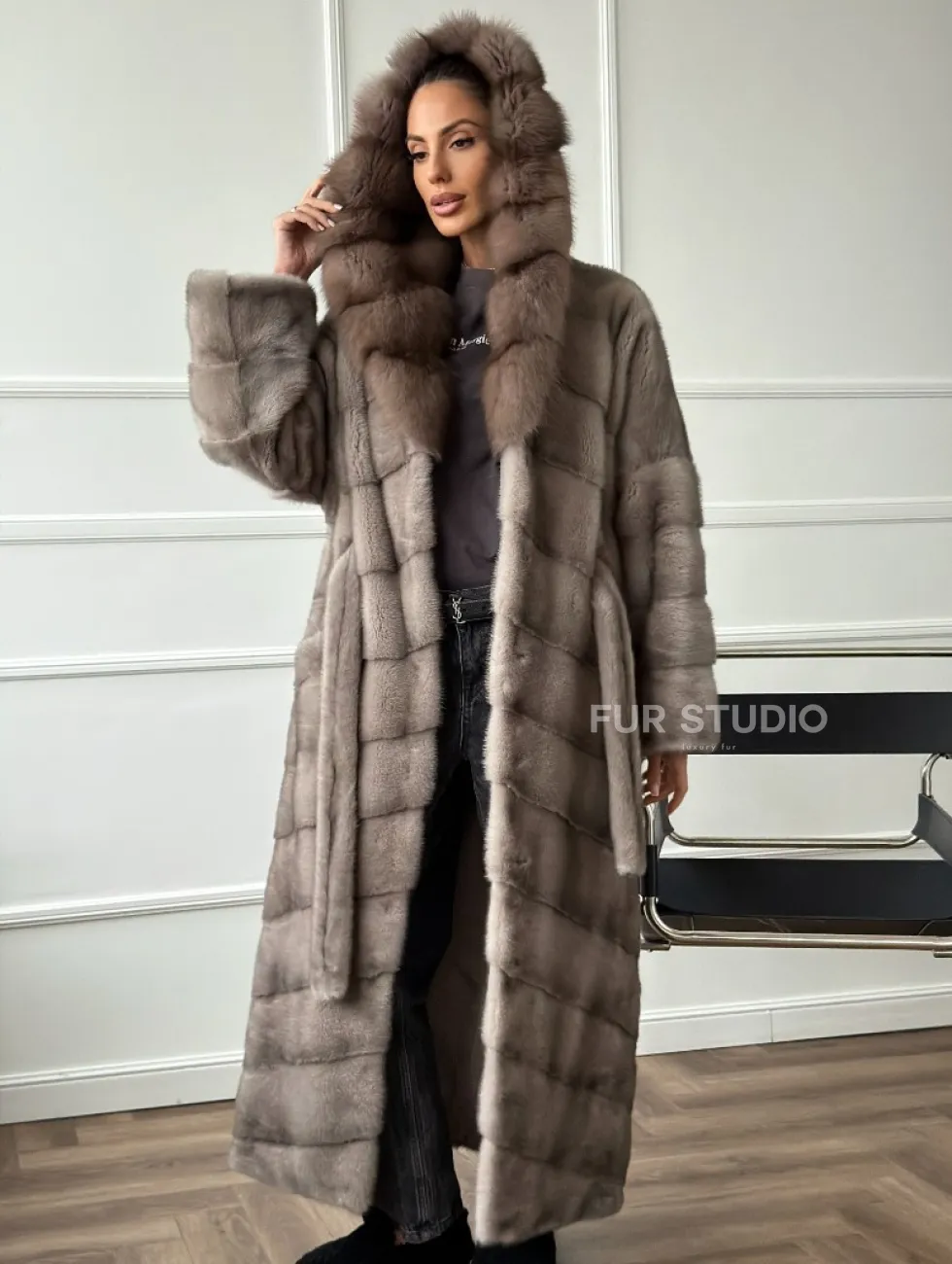 Шуба-кимоно норка в пол с капюшоном куница доступна для покупки в нашем шоуруме Furs Studio в Чите. У нас так же есть доставка во все города России. Добавьте немного роскоши в свой гардероб с этой шубой, которая будет служить вам многие годы.