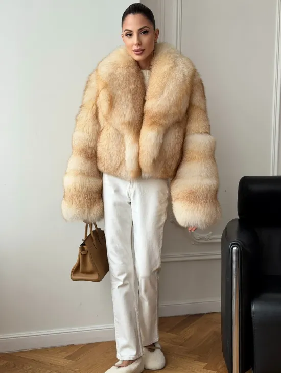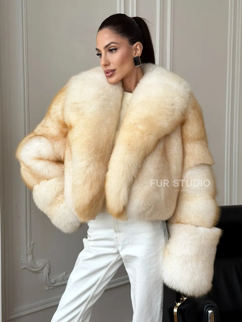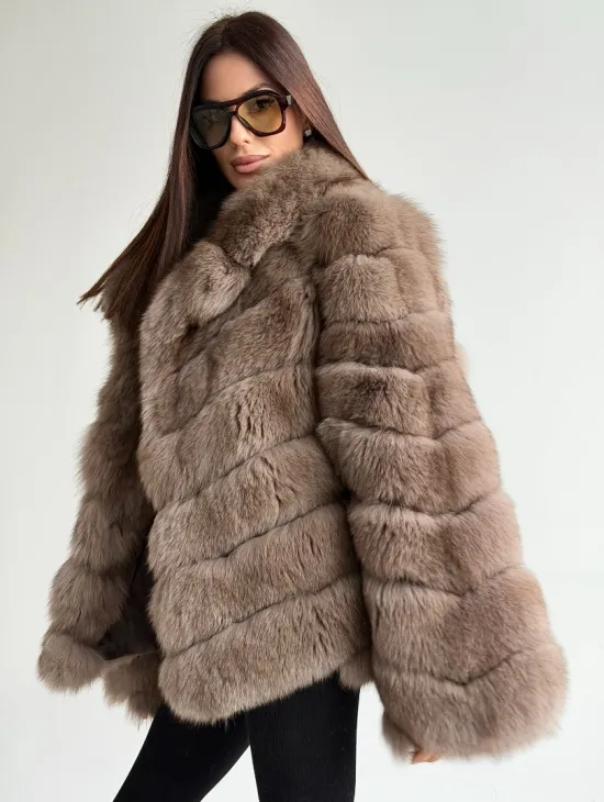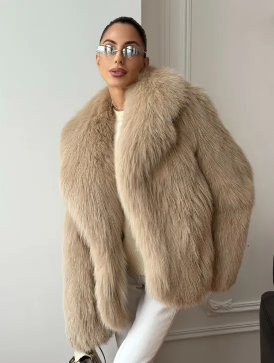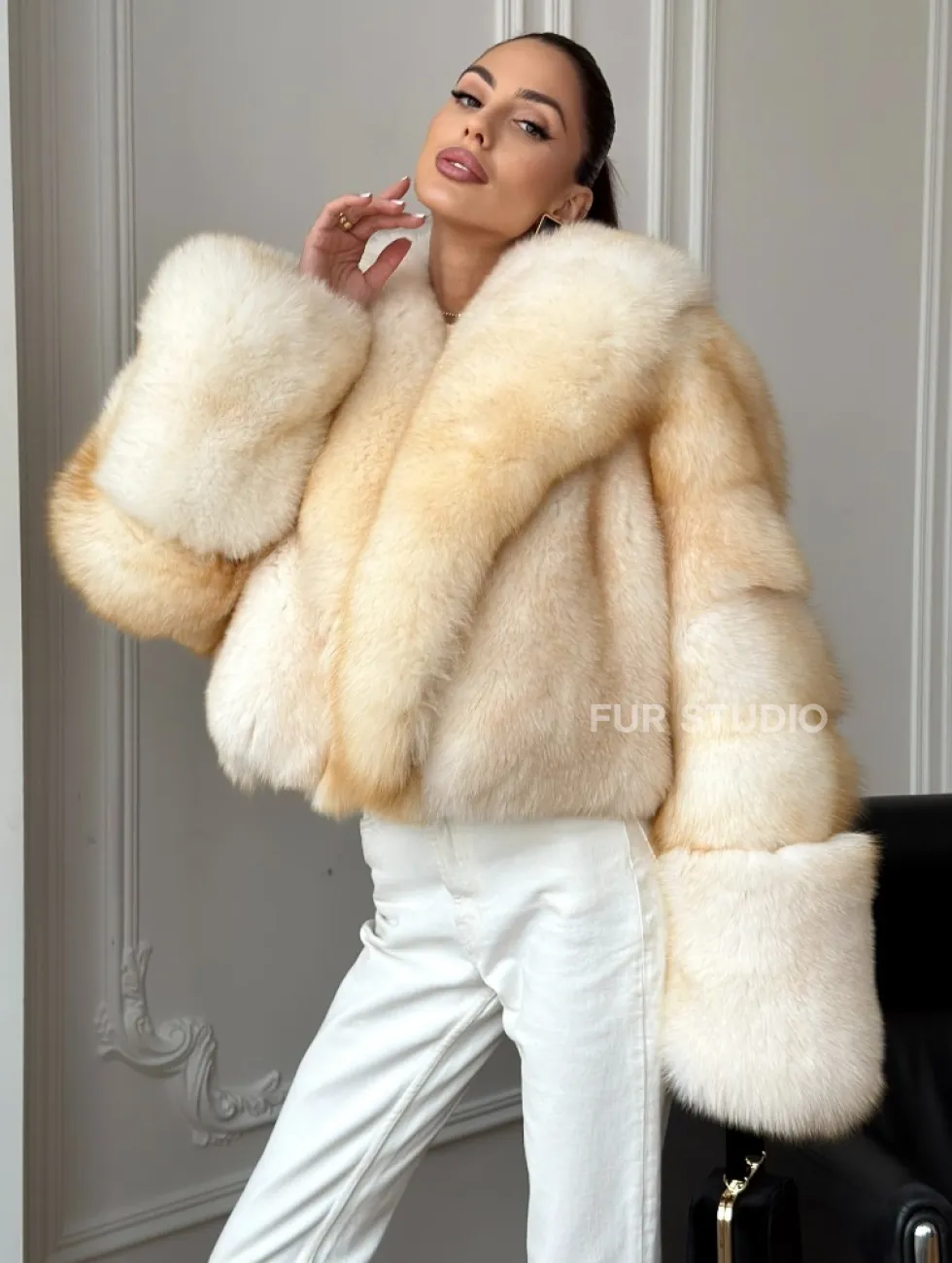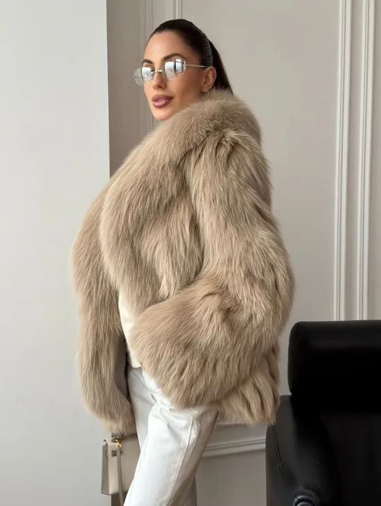 Мех данной шубы финский песец, цвет бежевый. Предлагается в размерах от 40 до 48. Длина модели 45-50 см, что выгодно подчеркивает фигуру девушек. Эта модель идеально подойдет для девушек и женщин, предпочитающих роскошные натуральные меха.
