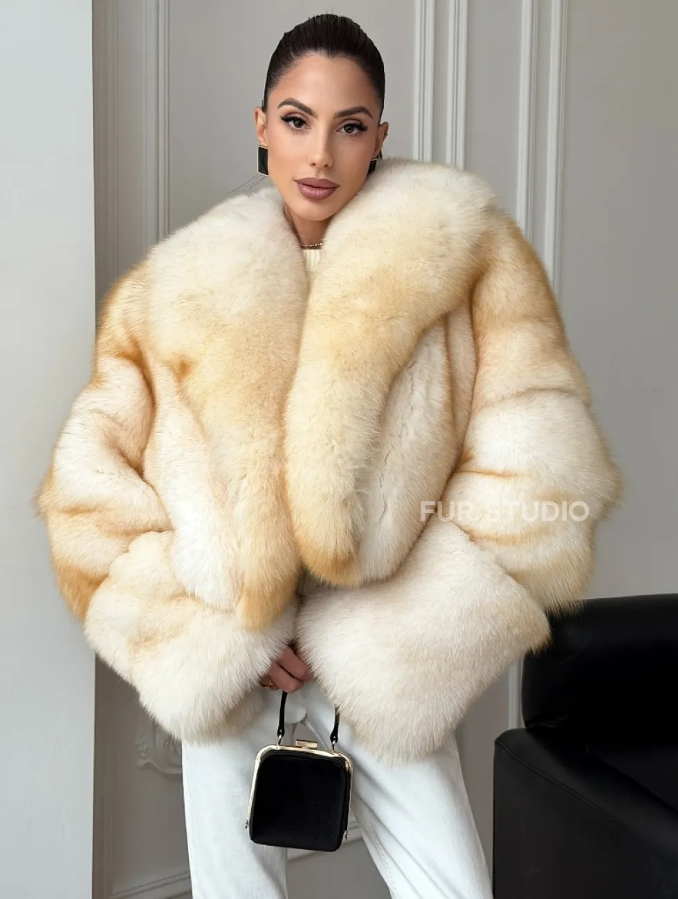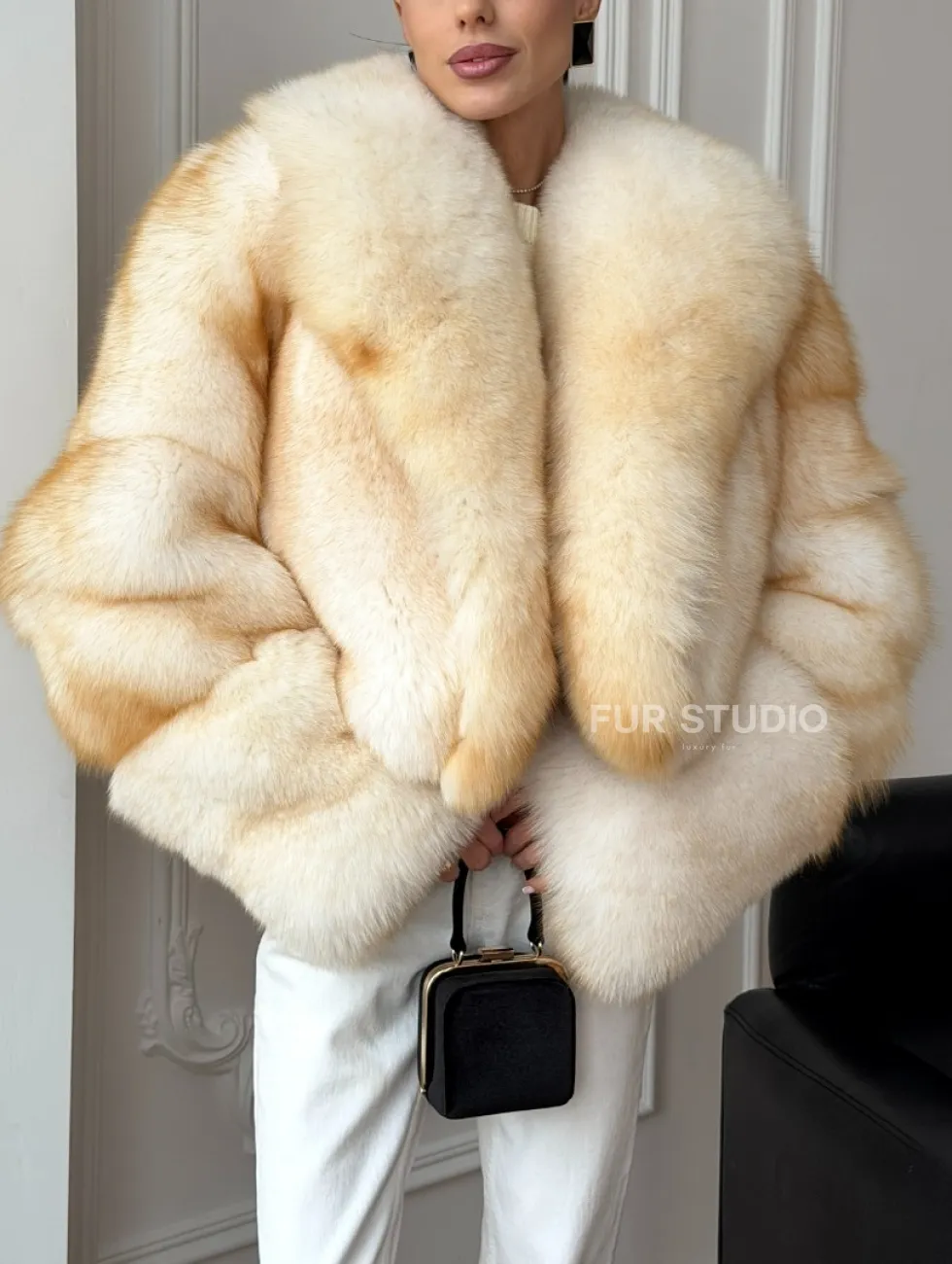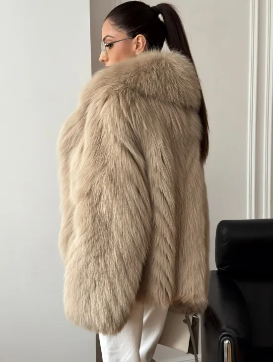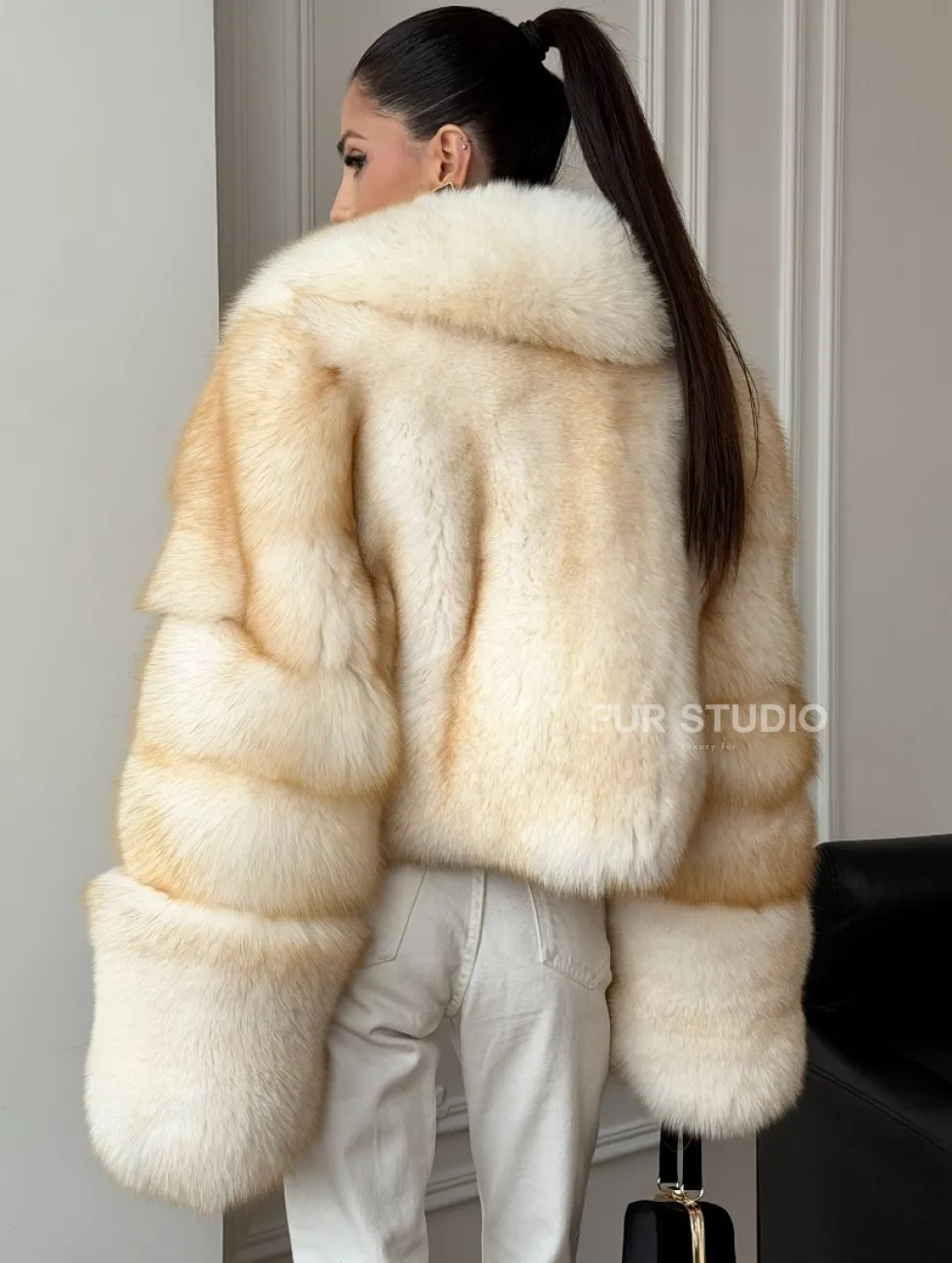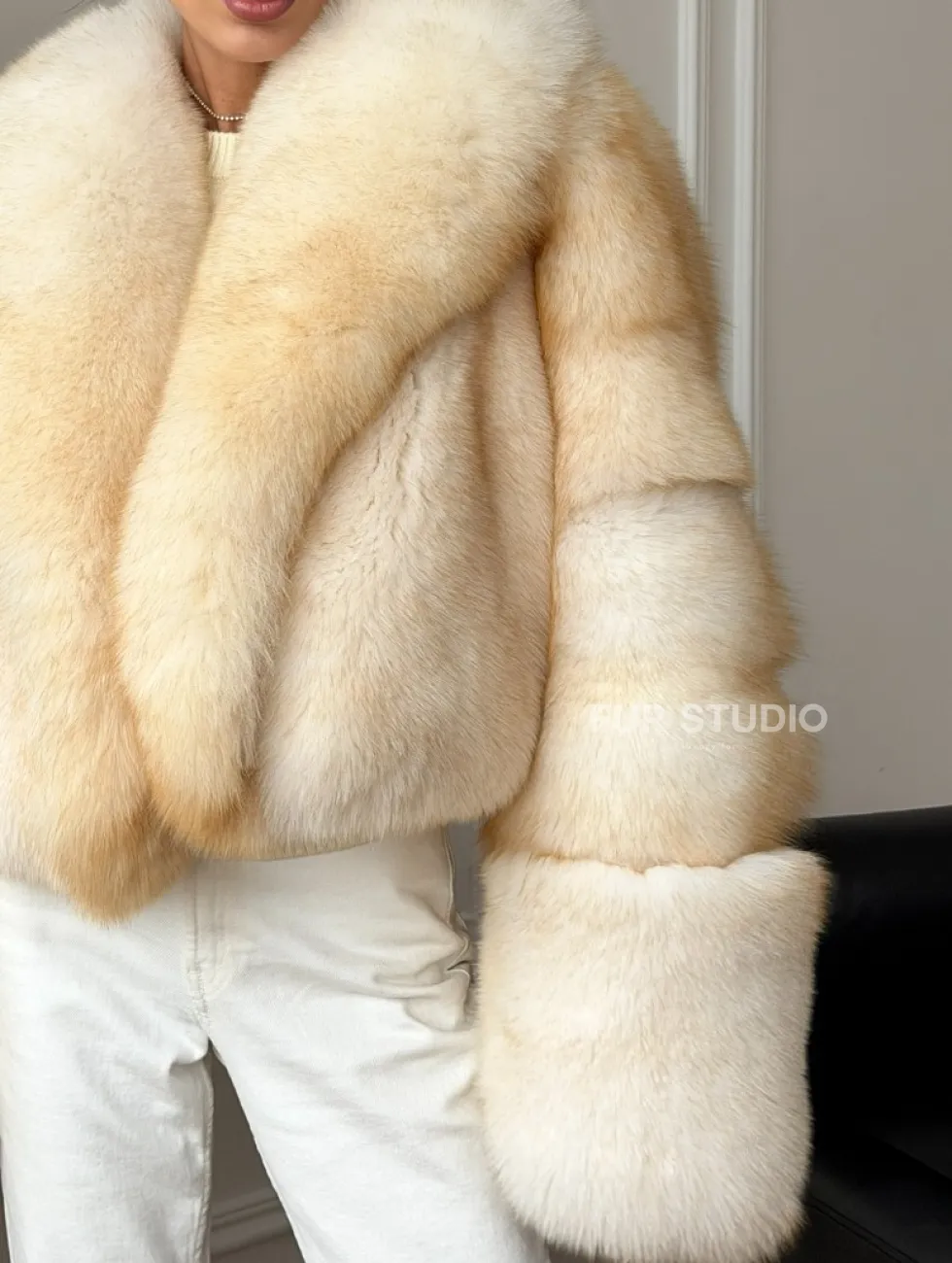 Мех данной шубы финский песец, цвет бежевый. Предлагается в размерах от 40 до 48. Длина модели 45-50 см, что выгодно подчеркивает фигуру девушек. Эта модель идеально подойдет для девушек и женщин, предпочитающих роскошные натуральные меха.