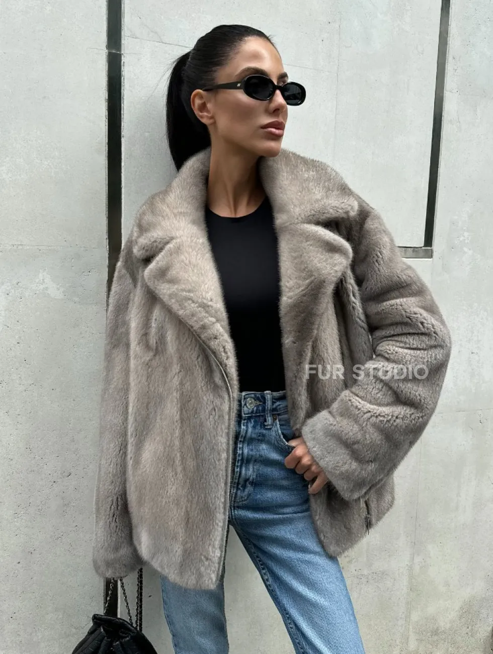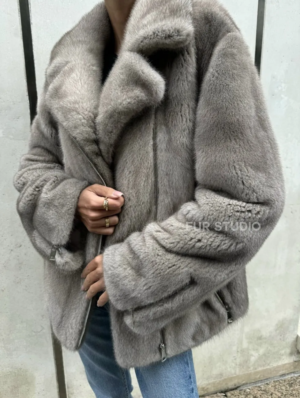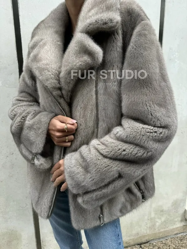 Мех данной шубы аукционная норка, цвет серый. Предлагается в размерах от 42 до 50. Длина модели 65-70 см, что выгодно подчеркивает фигуру девушек. Эта модель идеально подойдет для девушек и женщин, предпочитающих роскошные натуральные меха.