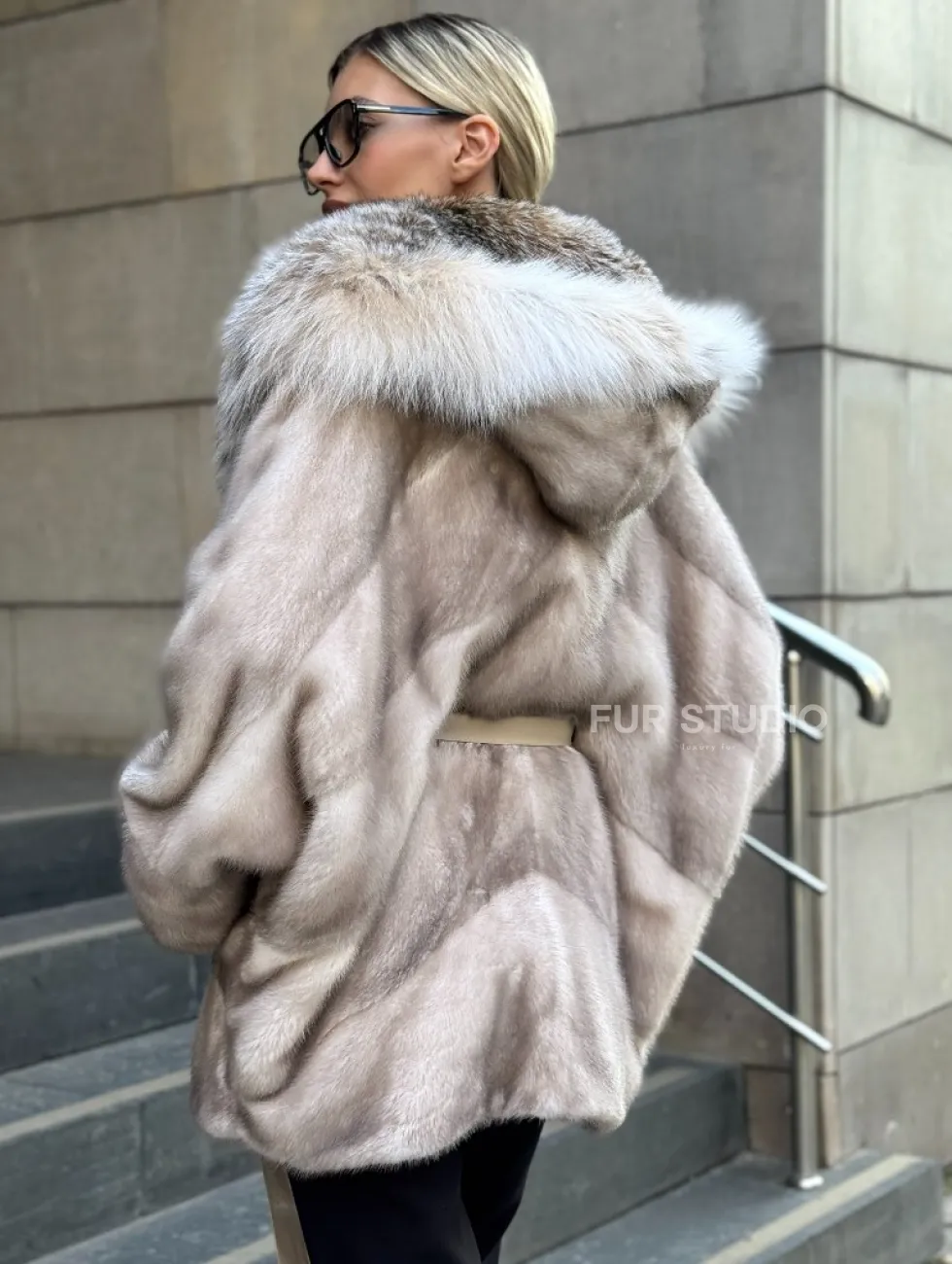 Шуба летучая мышь из норки Ivory с капюшоном из меха рыси доступна для покупки в нашем шоуруме Furs Studio в Чите. У нас так же есть доставка во все города России. Добавьте немного роскоши в свой гардероб с этой шубой, которая будет служить вам многие годы.