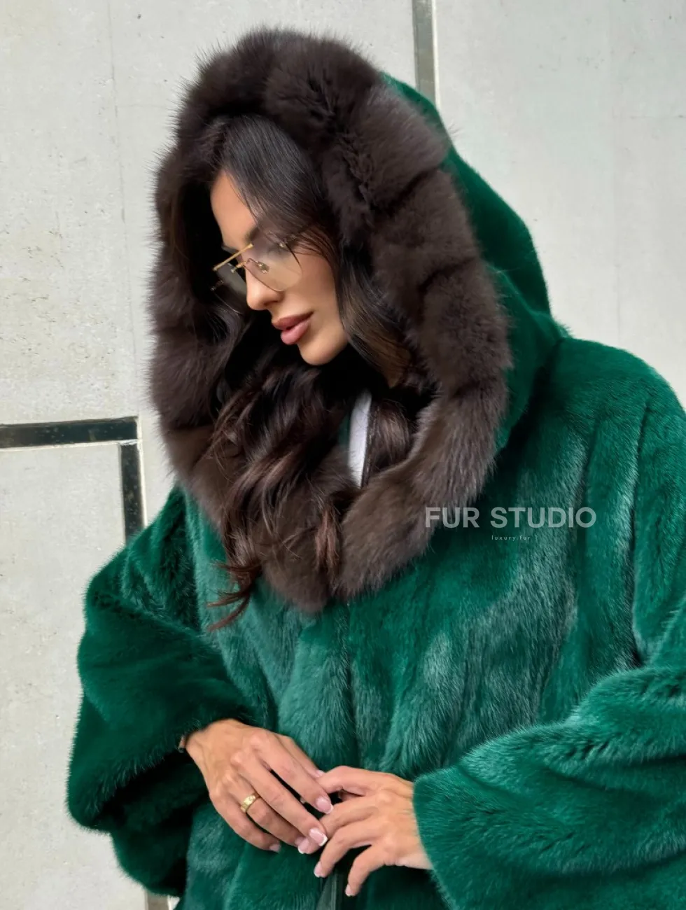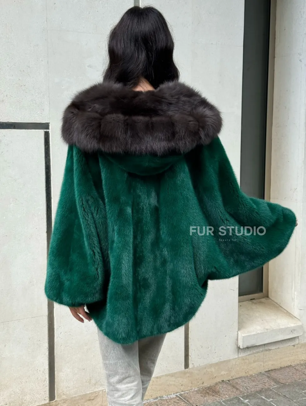 Шуба летучая мышь из норки с капюшоном из куницы - темный изумруд доступна для покупки в нашем шоуруме Furs Studio в Чите. У нас так же есть доставка во все города России. Добавьте немного роскоши в свой гардероб с этой шубой, которая будет служить вам многие годы.