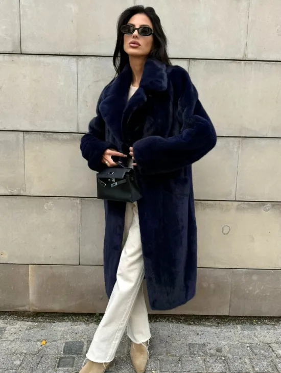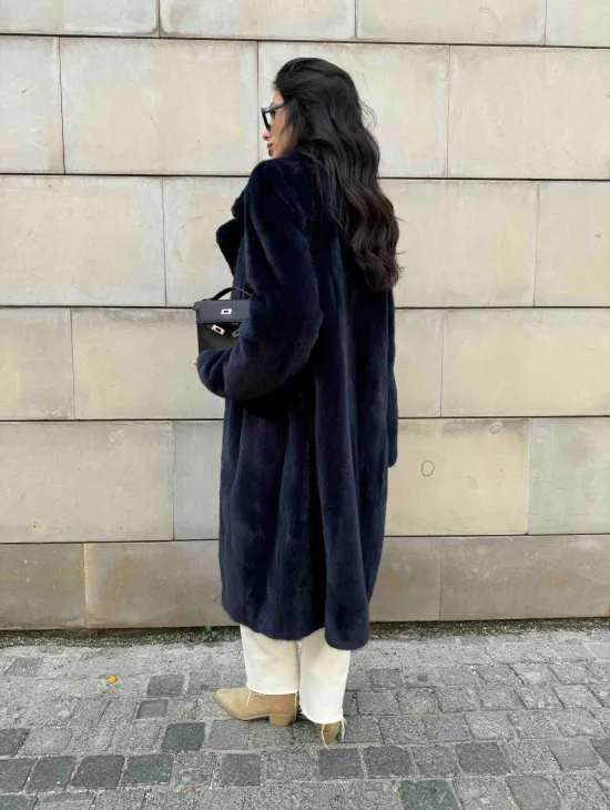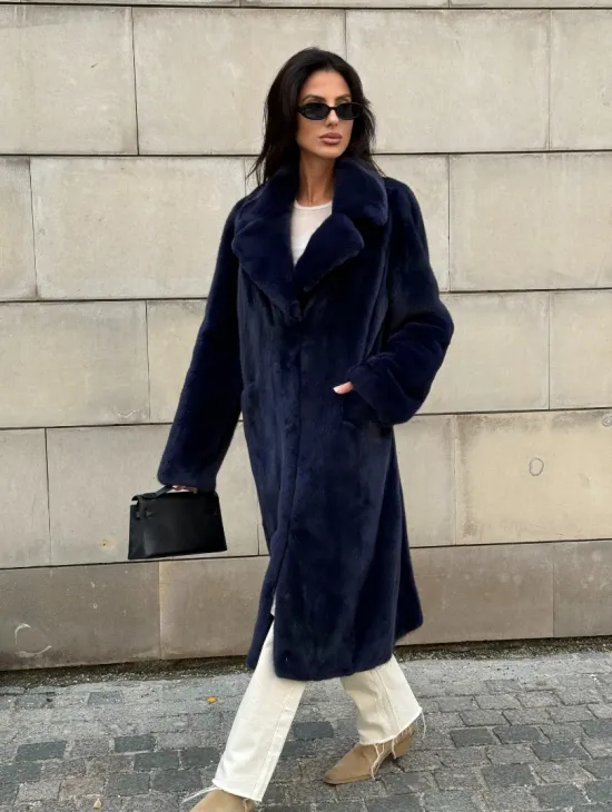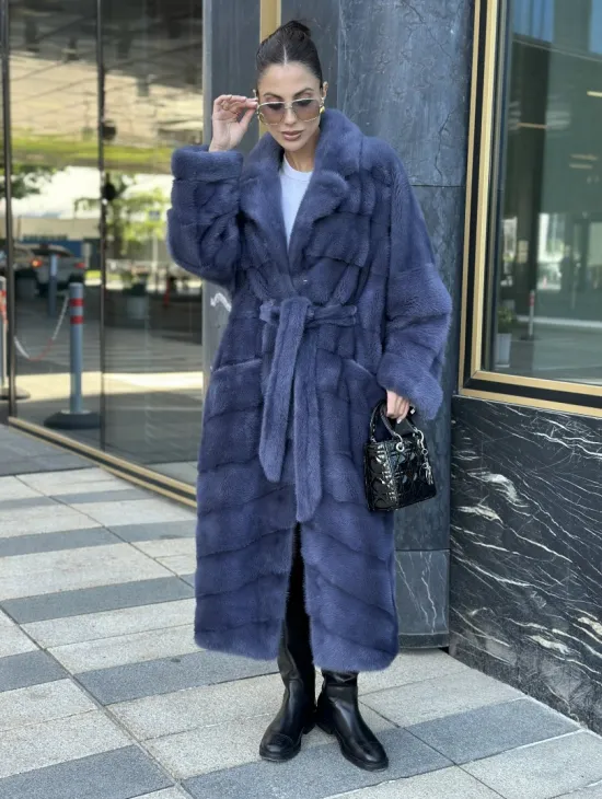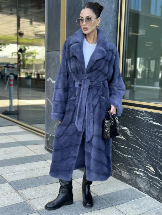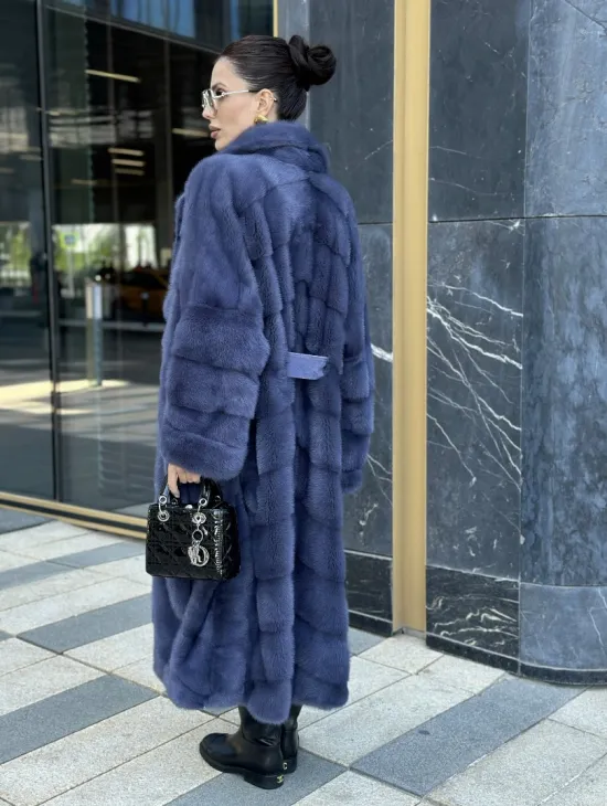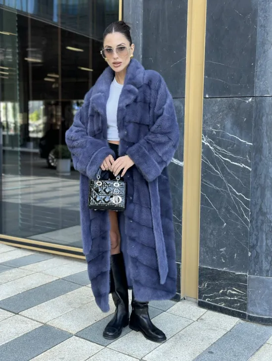 Мех данной шубы аукционная норка, цвет синий. Предлагается в размерах от 42 до 58. Длина модели 70-75 см, что выгодно подчеркивает фигуру девушек. Эта модель идеально подойдет для девушек и женщин, предпочитающих роскошные натуральные меха.