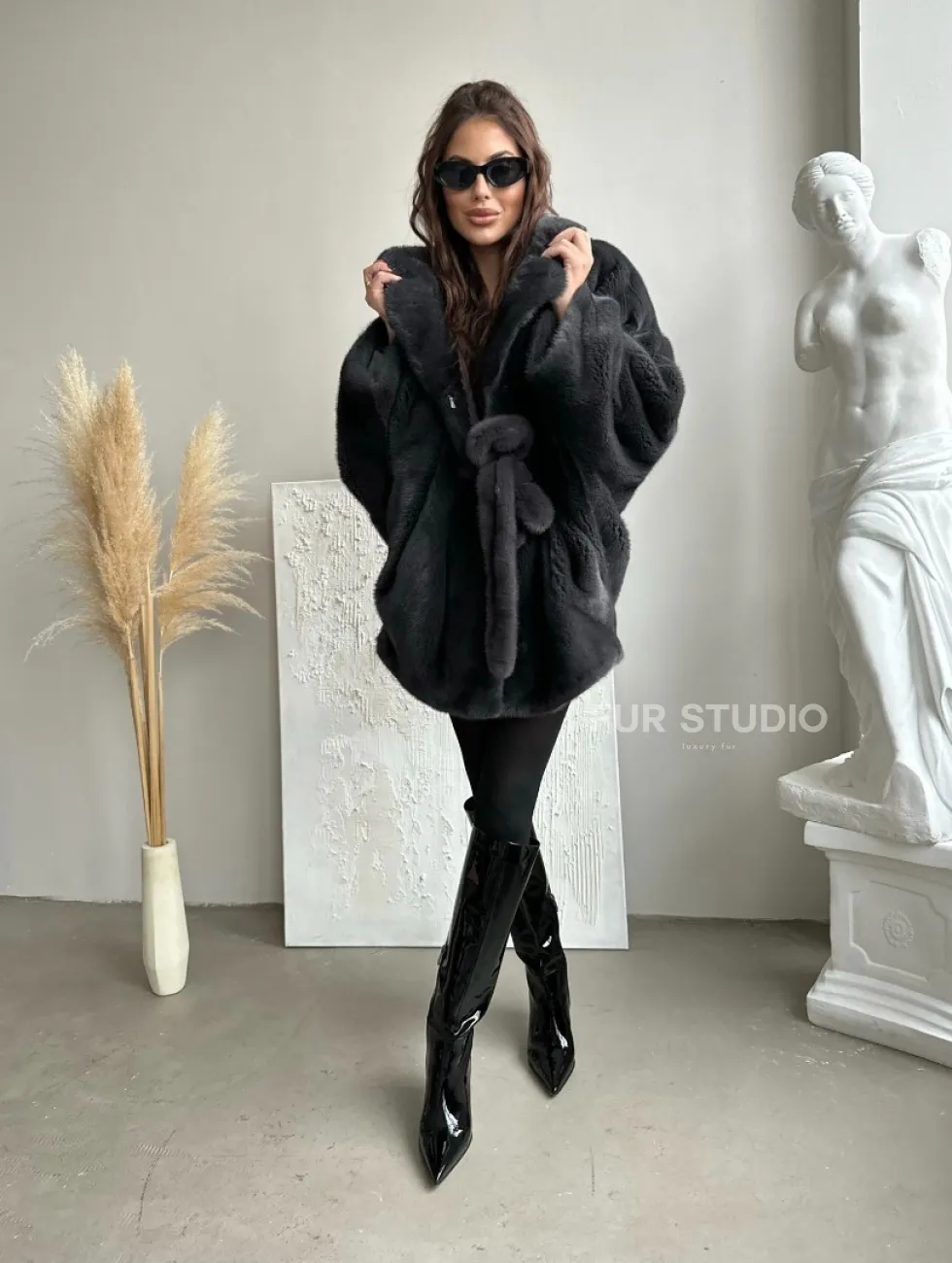 Шуба - манто из меха норки Nafa в цвете графит доступна для покупки в нашем шоуруме Furs Studio в Чите. У нас так же есть доставка во все города России. Добавьте немного роскоши в свой гардероб с этой шубой, которая будет служить вам многие годы.