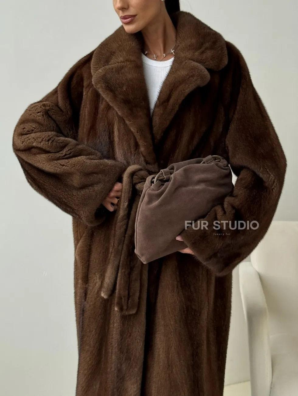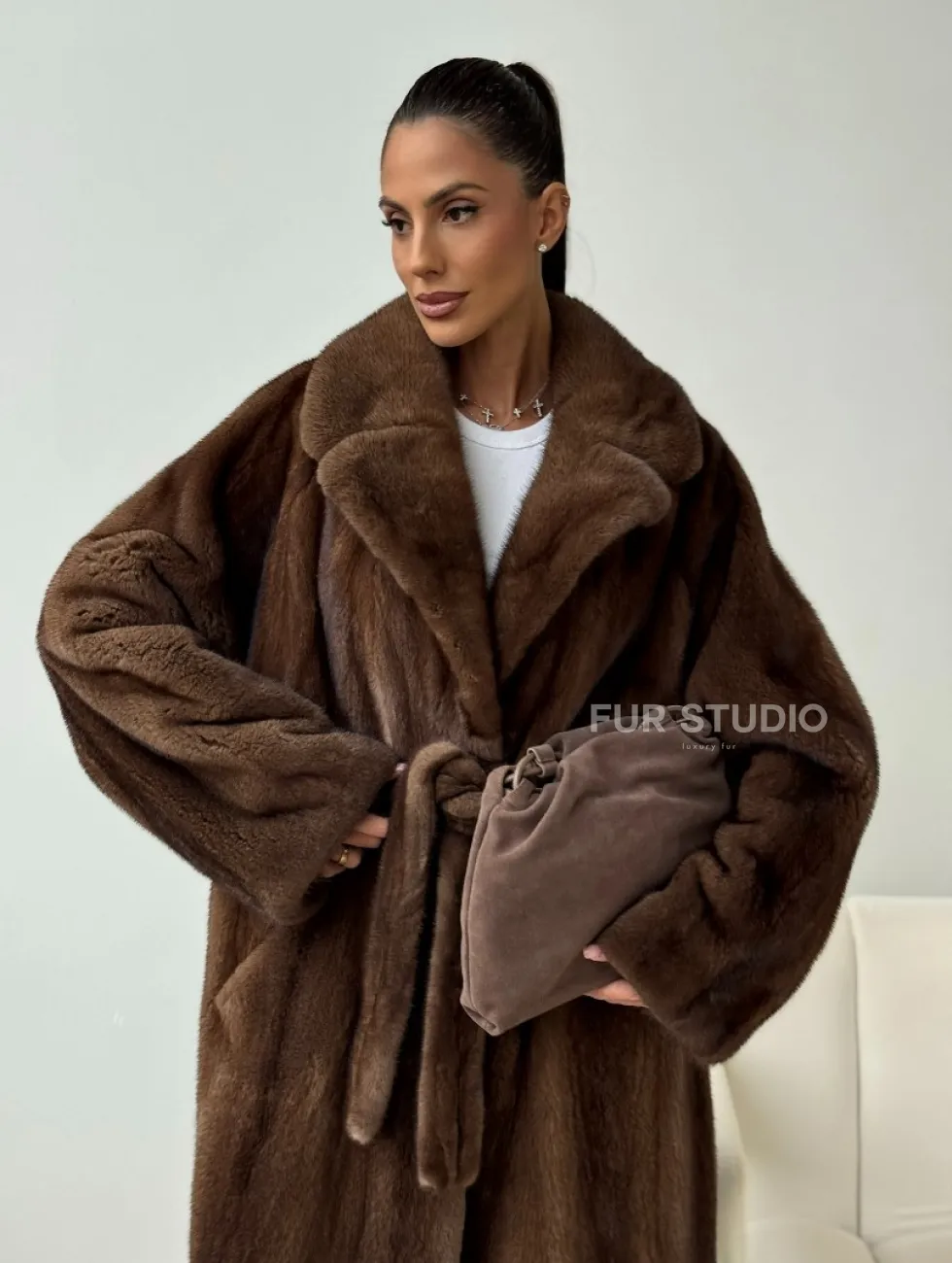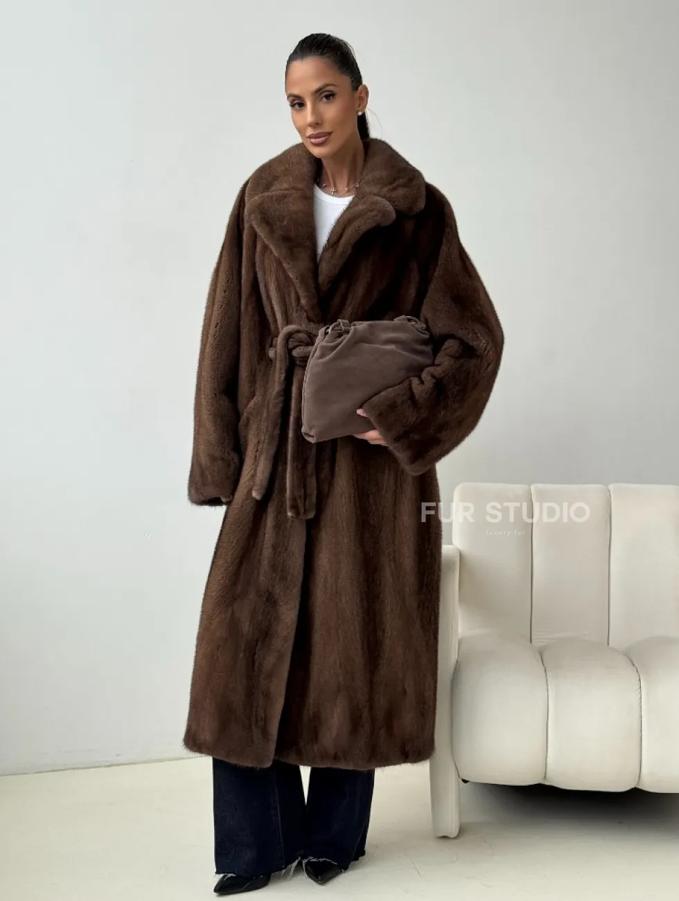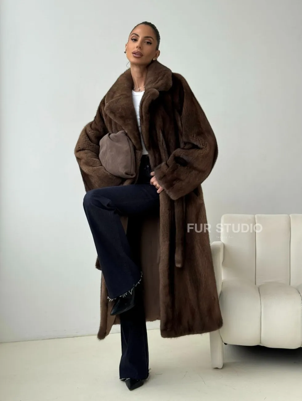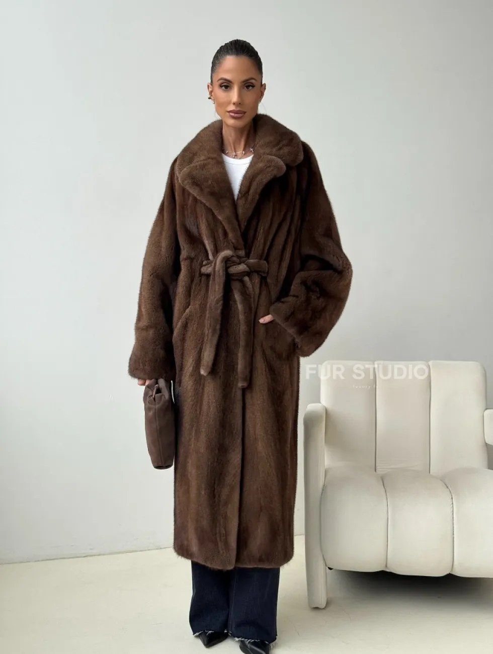 Мех данной шубы аукционная норка , цвет коричневый. Предлагается в размерах от 42 до 54. Длина модели 115-120 см, что выгодно подчеркивает фигуру девушек. Эта модель идеально подойдет для девушек и женщин, предпочитающих роскошные натуральные меха.
