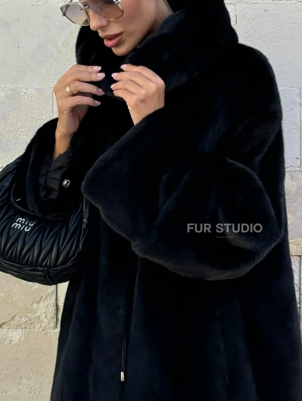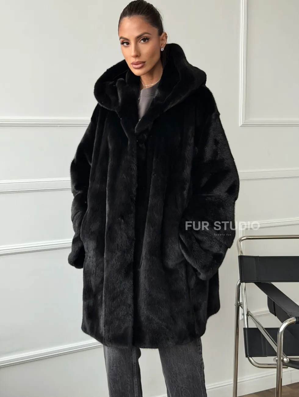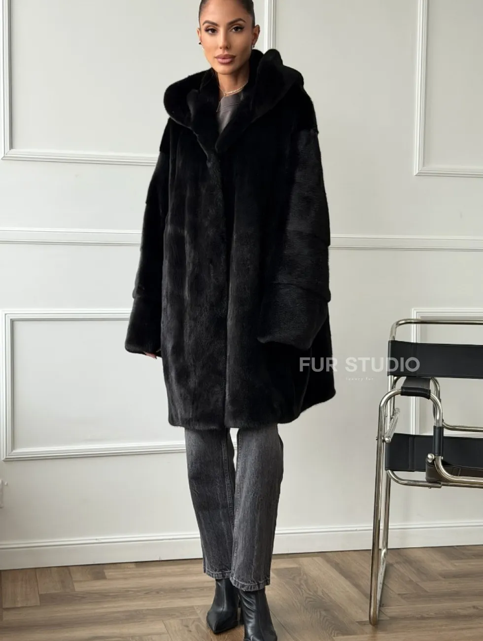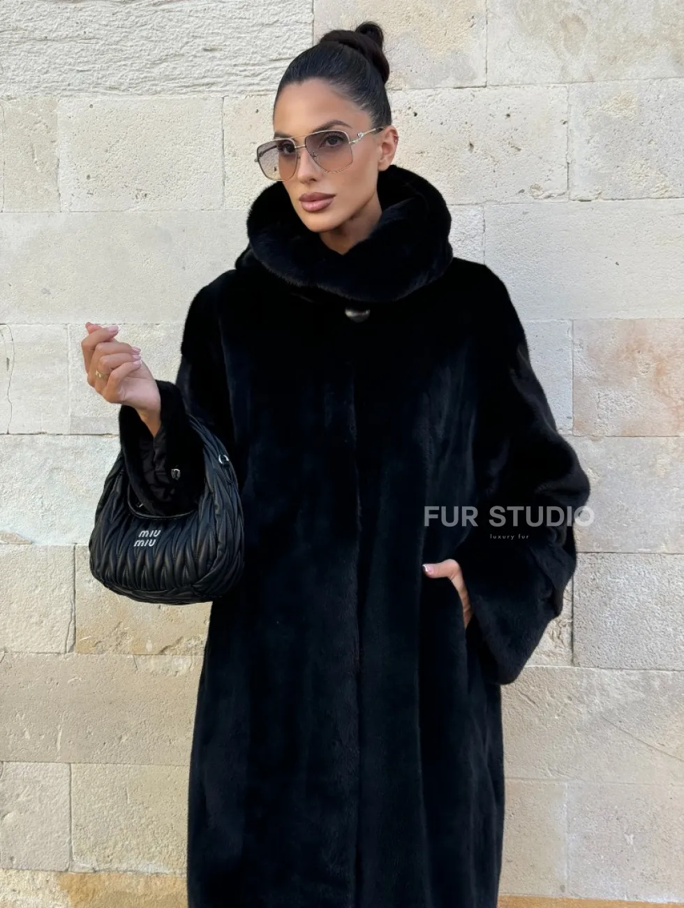 Шуба натуральная женская из норки Blackglama с капюшоном доступна для покупки в нашем шоуруме Furs Studio в Чите. У нас так же есть доставка во все города России. Добавьте немного роскоши в свой гардероб с этой шубой, которая будет служить вам многие годы.