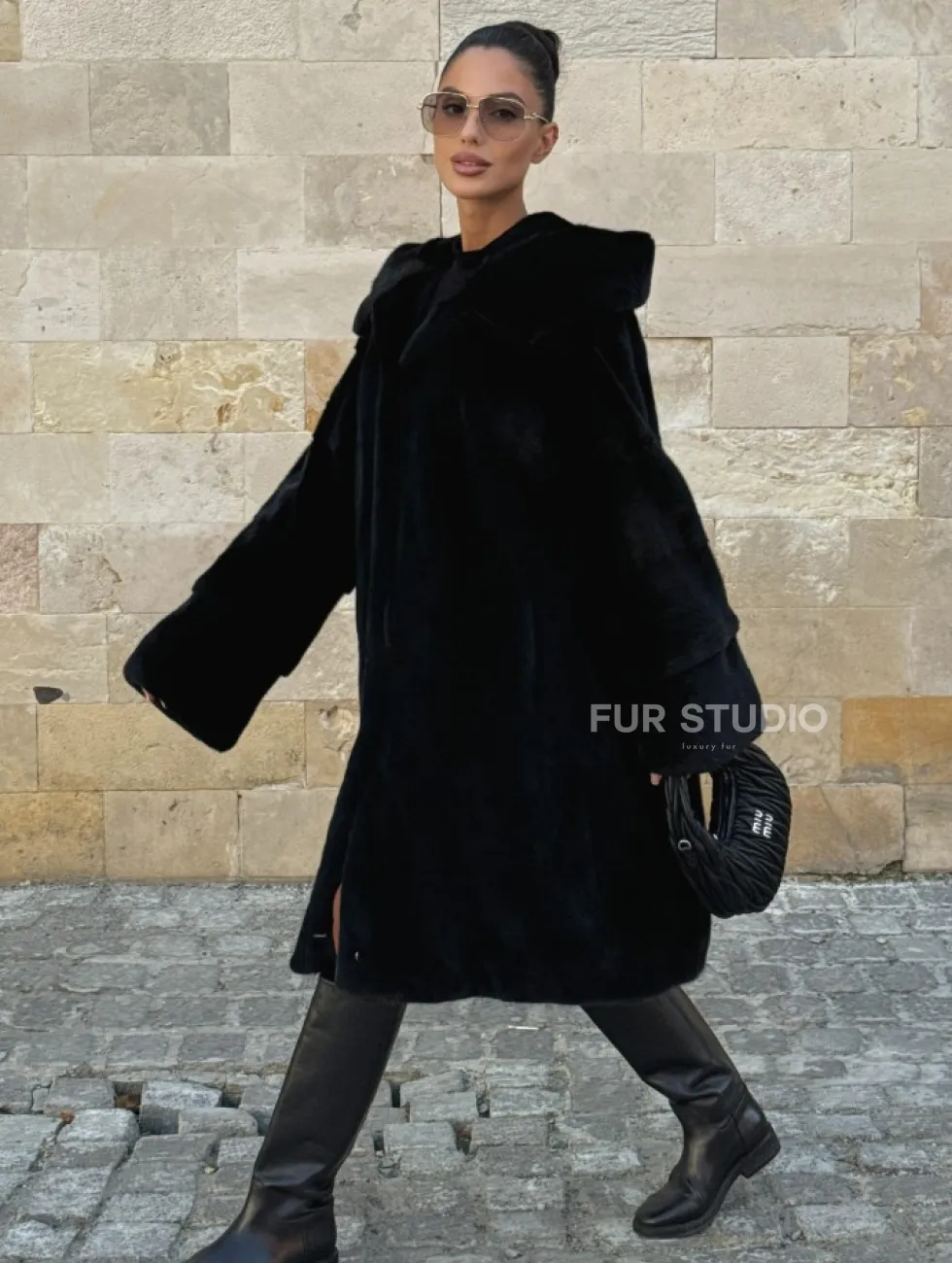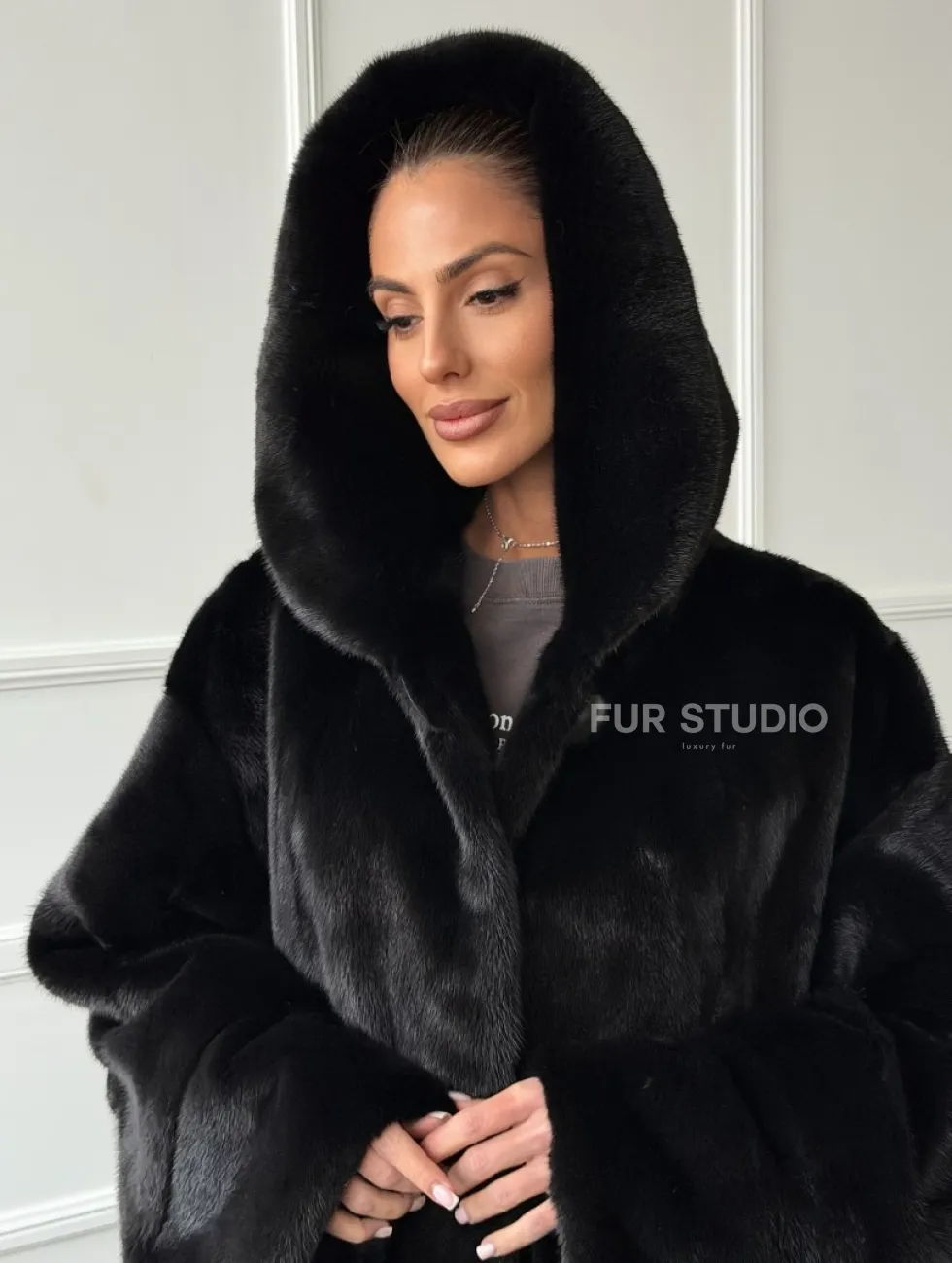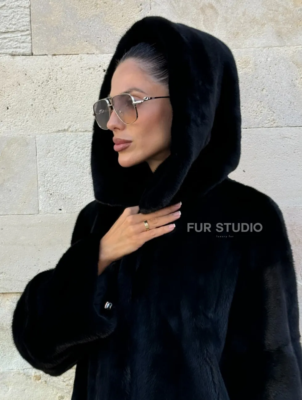 Шуба натуральная женская из норки Blackglama с капюшоном доступна для покупки в нашем шоуруме Furs Studio в Чите. У нас так же есть доставка во все города России. Добавьте немного роскоши в свой гардероб с этой шубой, которая будет служить вам многие годы.
