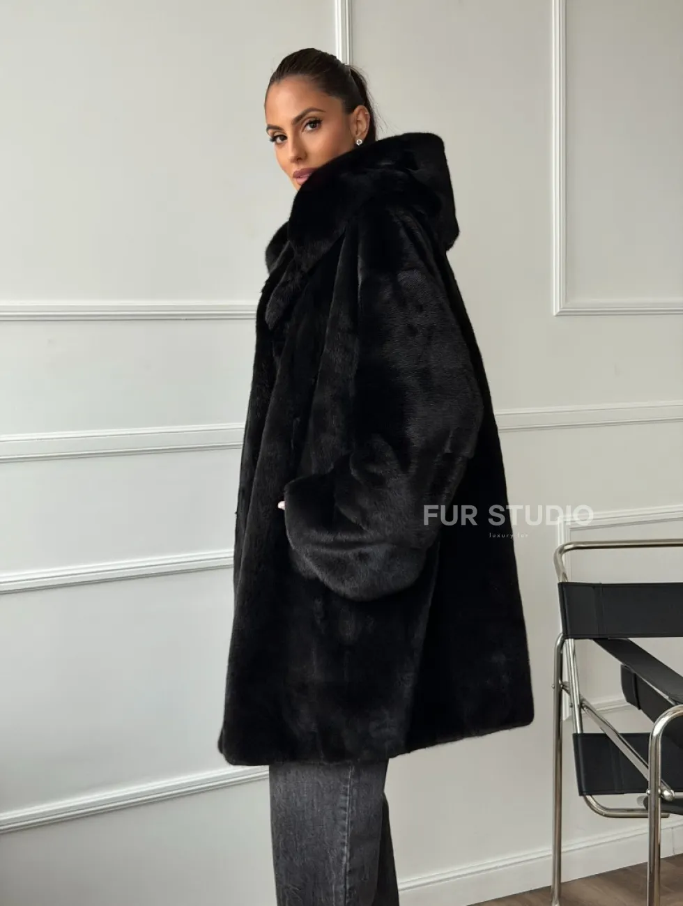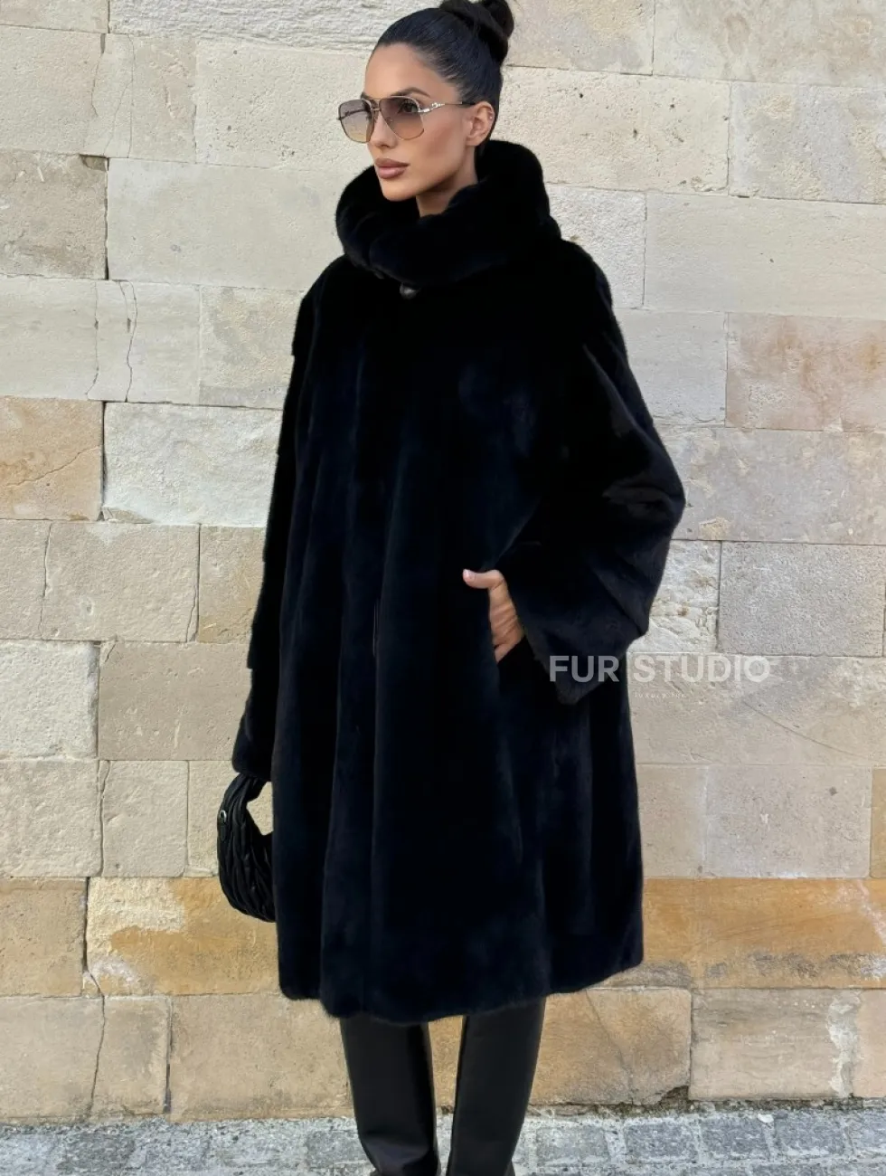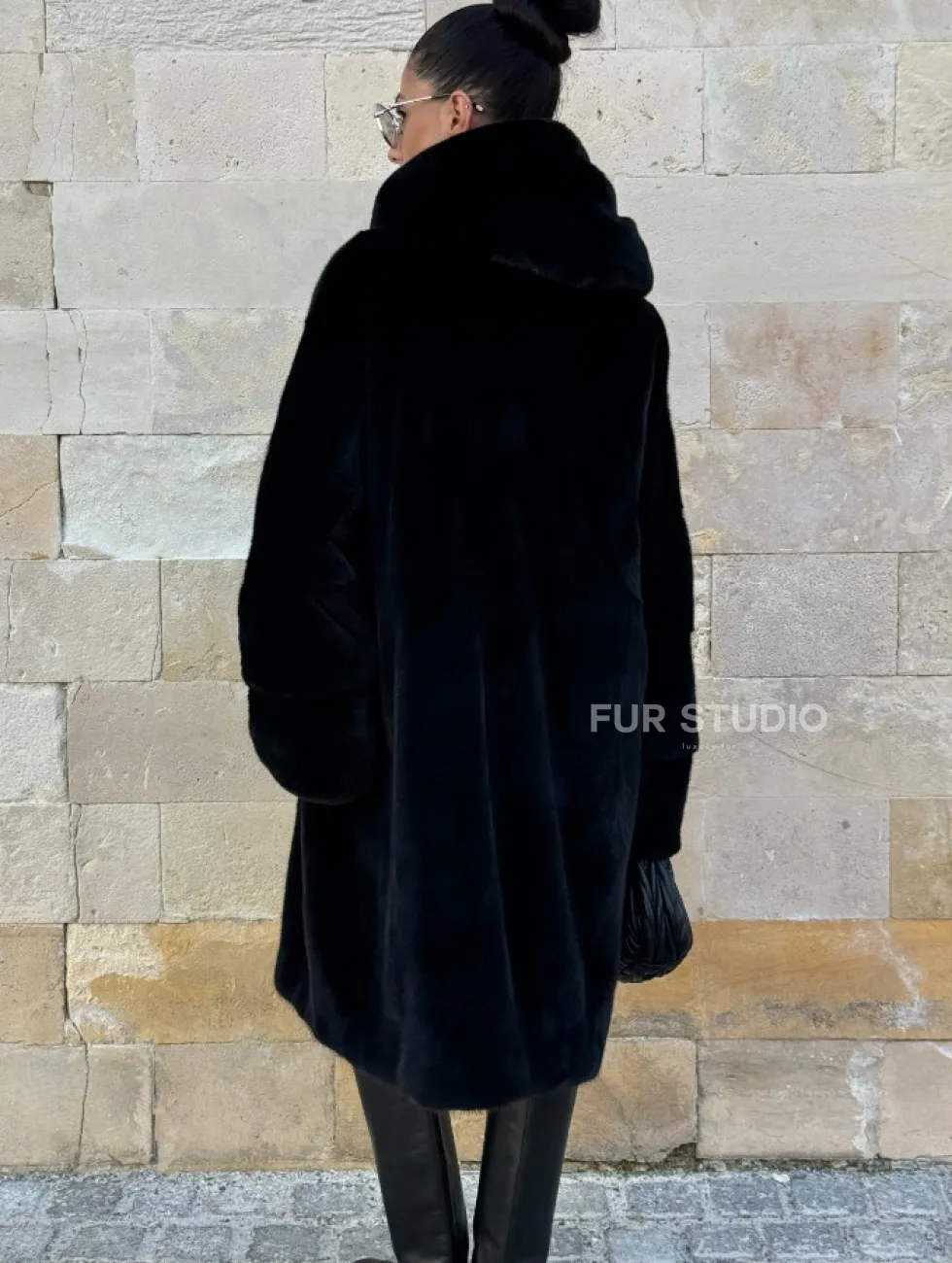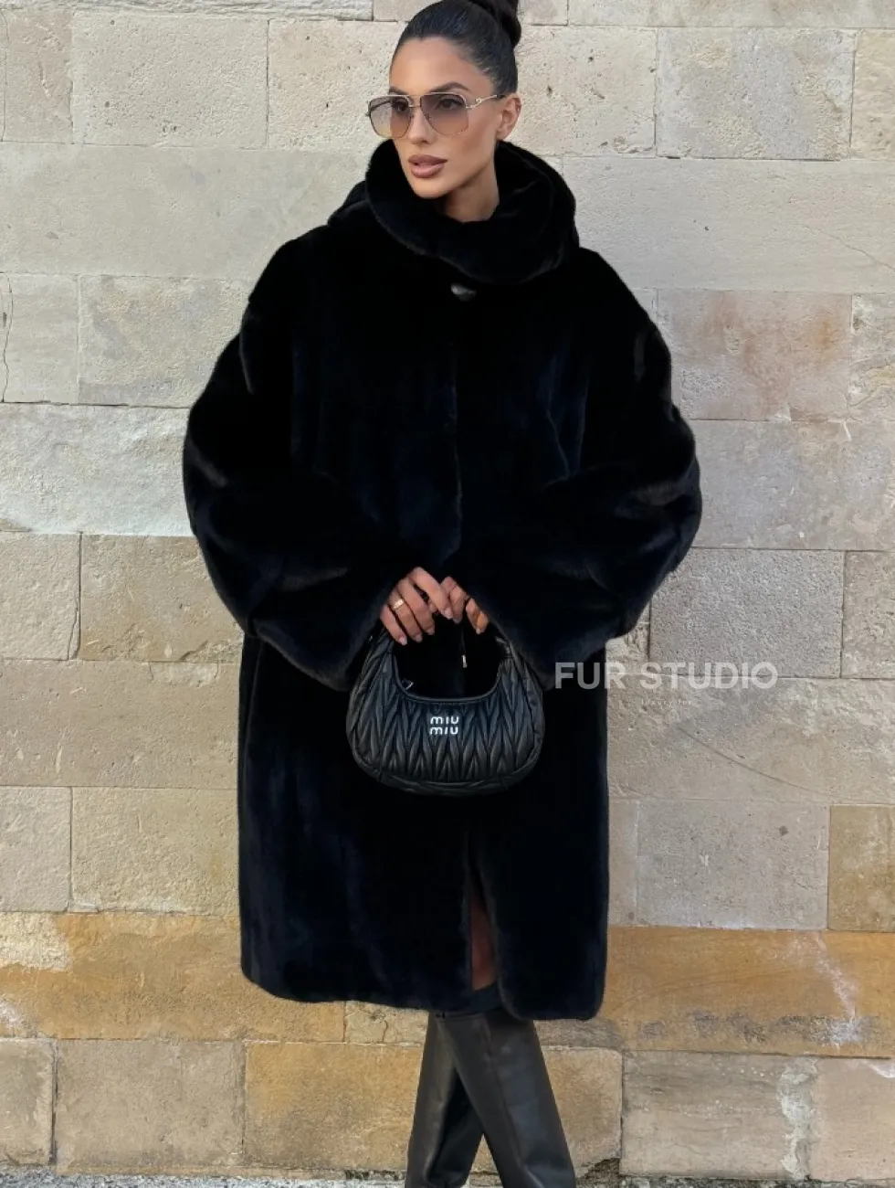 Шуба натуральная женская из норки Blackglama с капюшоном доступна для покупки в нашем шоуруме Furs Studio в Чите. У нас так же есть доставка во все города России. Добавьте немного роскоши в свой гардероб с этой шубой, которая будет служить вам многие годы.