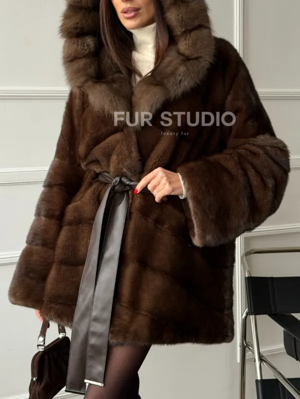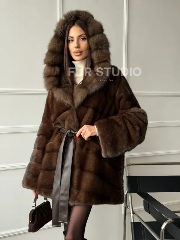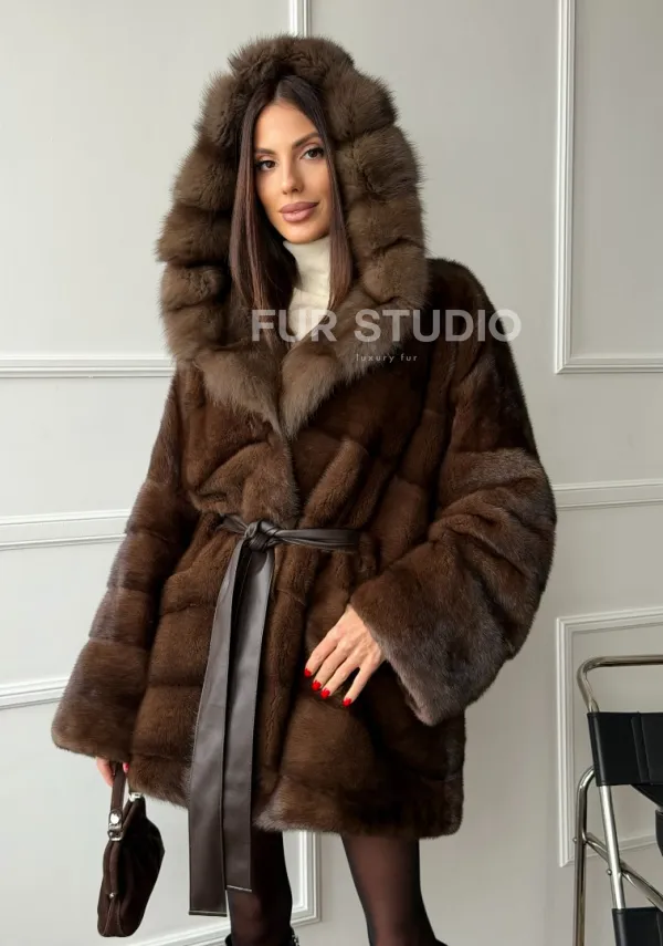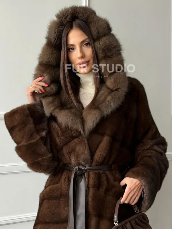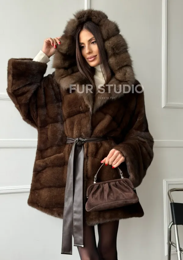 Шуба норка - кимоно с капюшоном доступна для покупки в нашем шоуруме Furs Studio в Чите. У нас так же есть доставка во все города России. Добавьте немного роскоши в свой гардероб с этой шубой, которая будет служить вам многие годы.