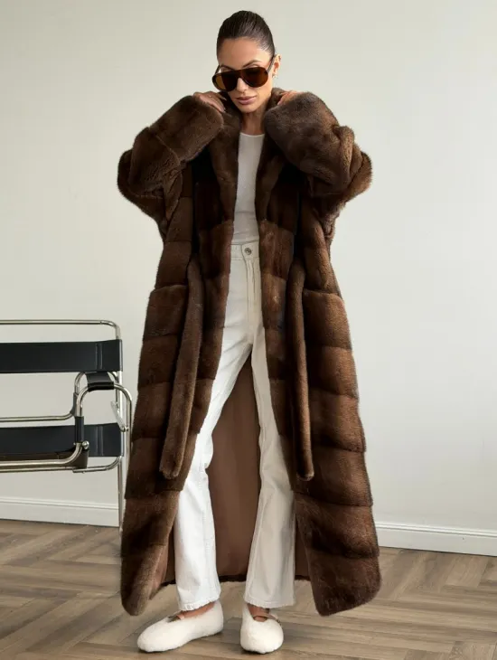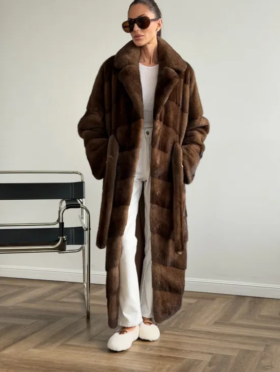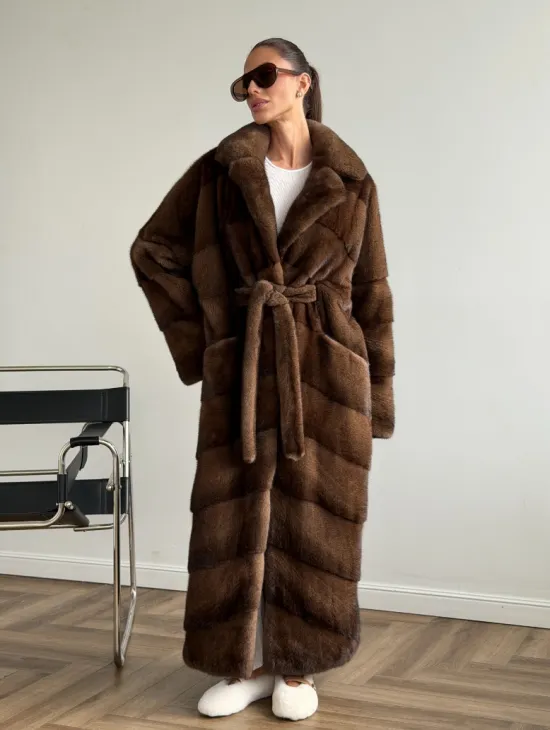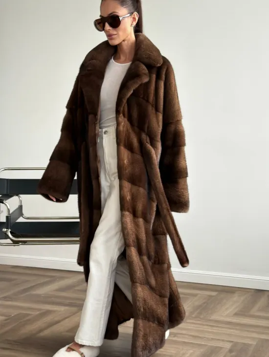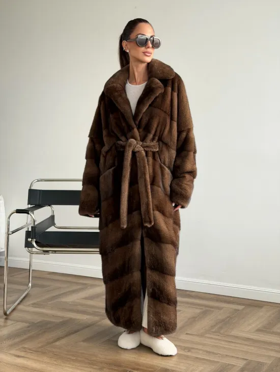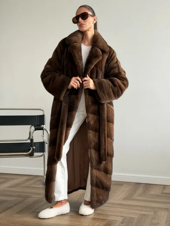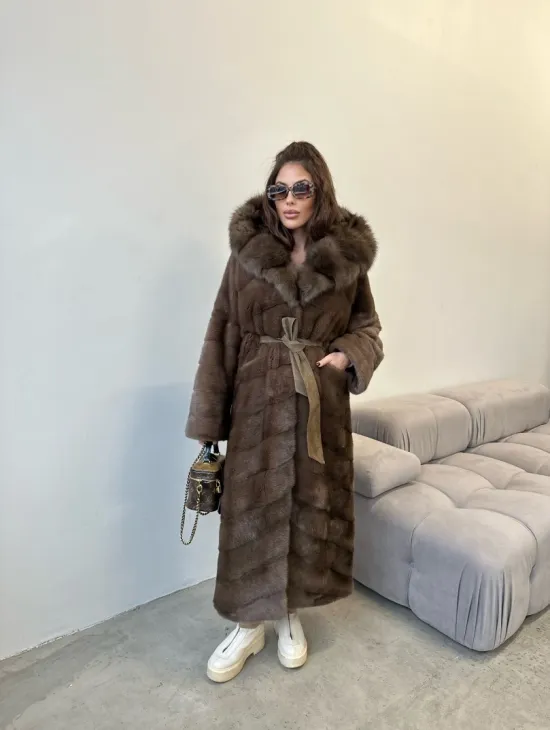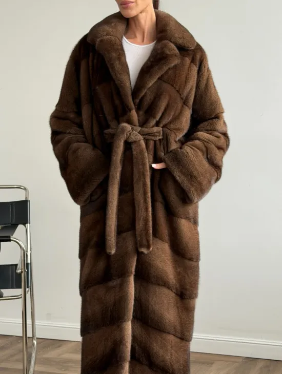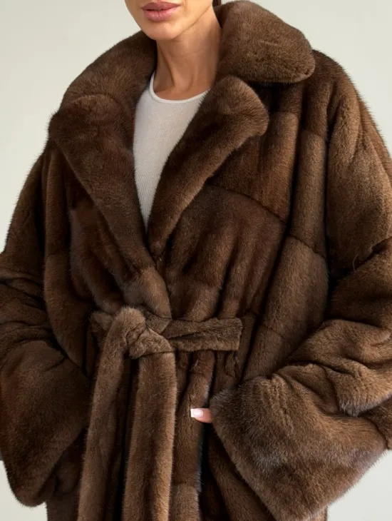 Мех данной шубы аукционная норка , цвет коричневый. Предлагается в размерах от 42 до 48. Длина модели 75-80 см, что выгодно подчеркивает фигуру девушек. Эта модель идеально подойдет для девушек и женщин, предпочитающих роскошные натуральные меха.
