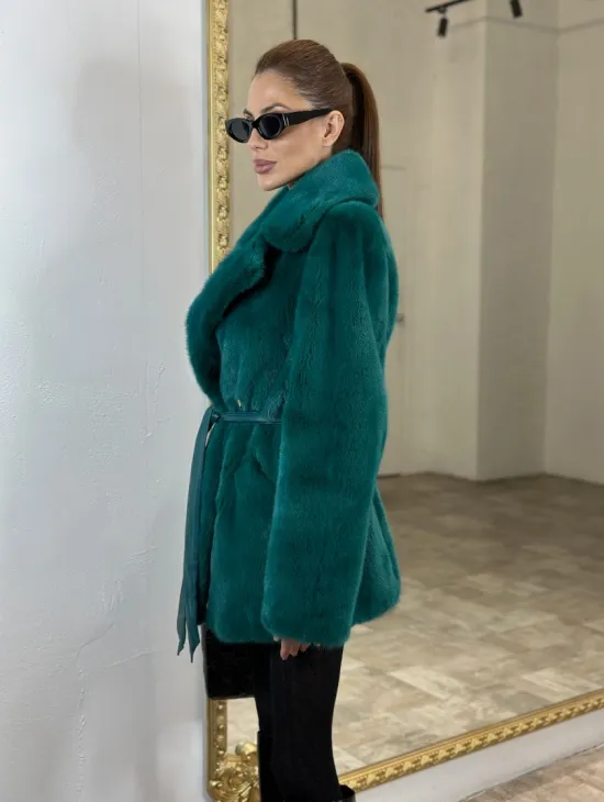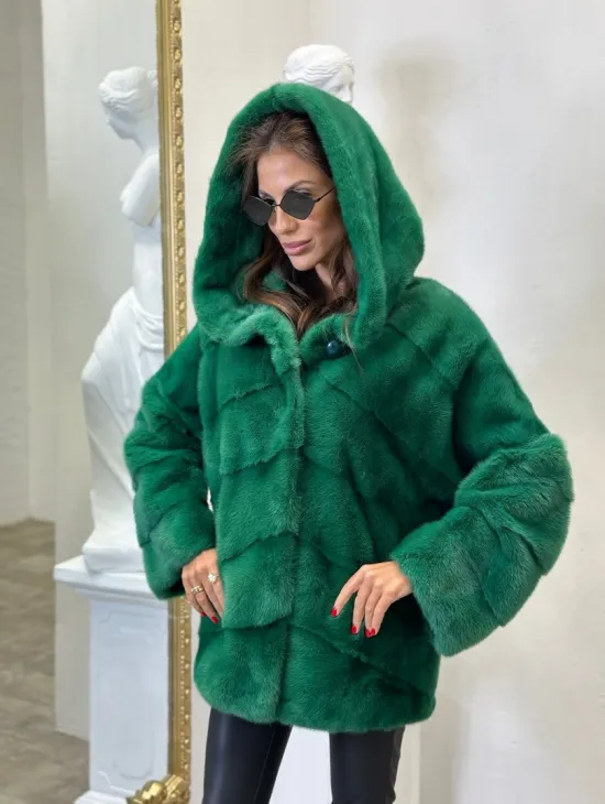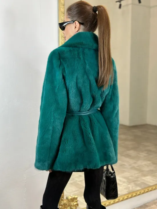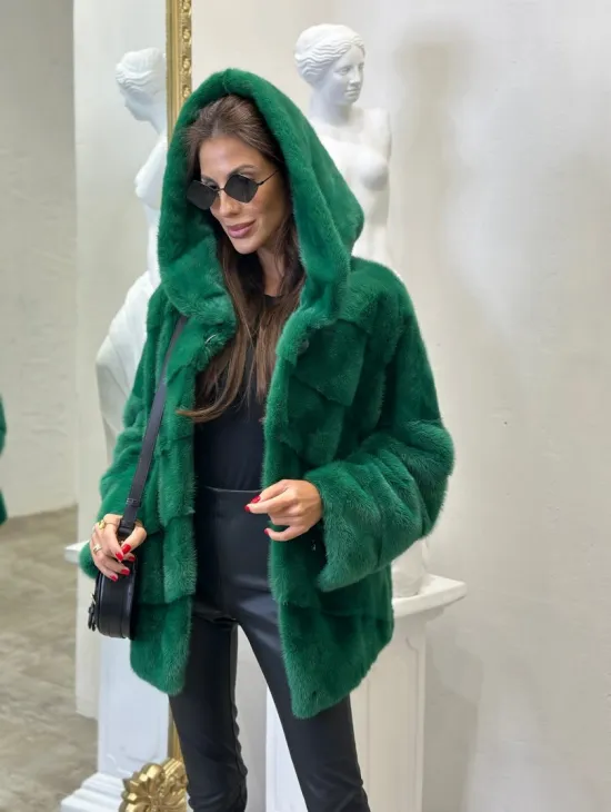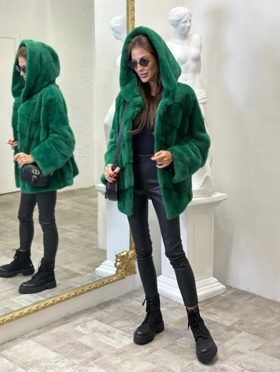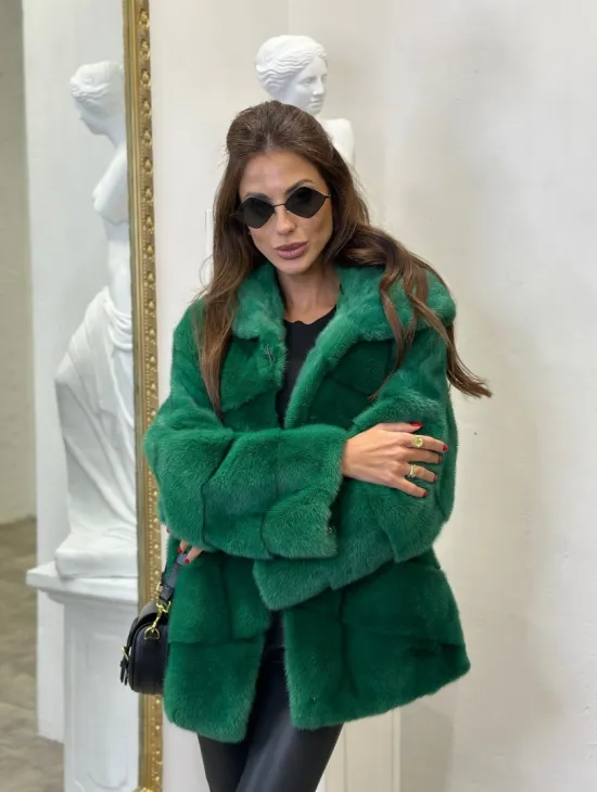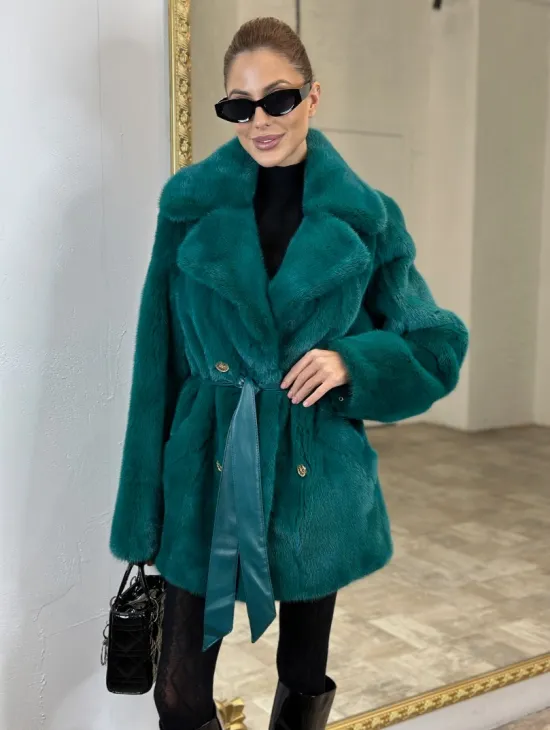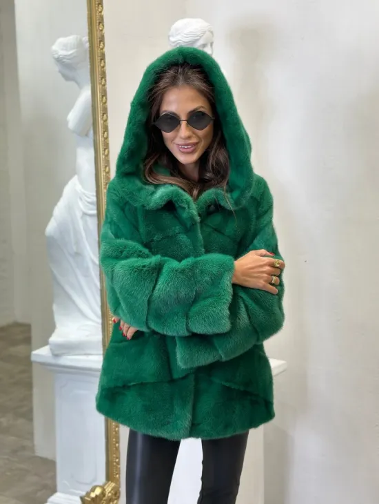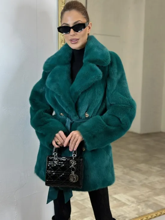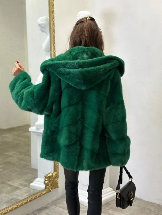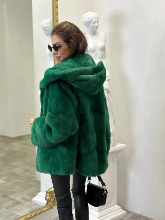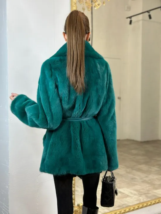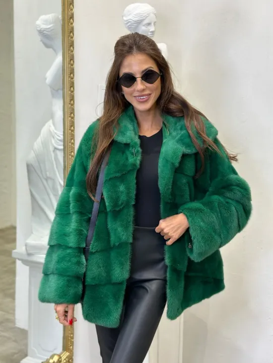 Мех данной шубы аукционная норка , цвет зеленый. Предлагается в размерах от 42 до 54 (oversize). Длина модели 75-80 см, что выгодно подчеркивает фигуру девушек. Эта модель идеально подойдет для девушек и женщин, предпочитающих роскошные натуральные меха.