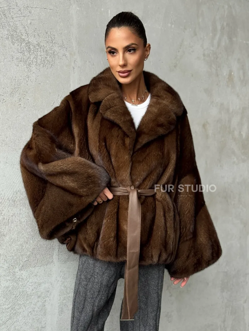 Мех данной шубы аукционная норка , цвет коричневый. Предлагается в размерах от 42 до 56 (oversize). Длина модели 70-75 см, что выгодно подчеркивает фигуру девушек. Эта модель идеально подойдет для девушек и женщин, предпочитающих роскошные натуральные меха.