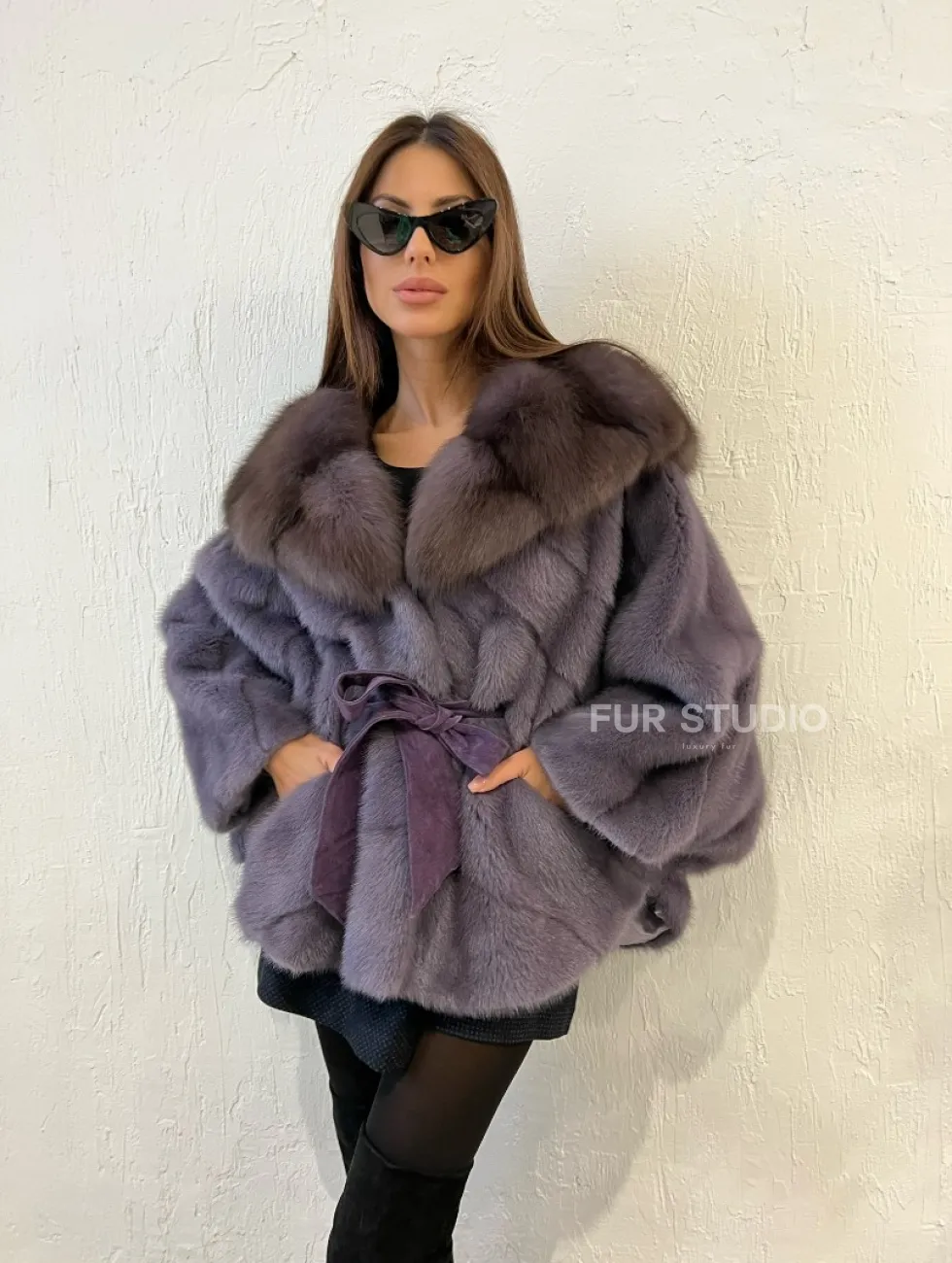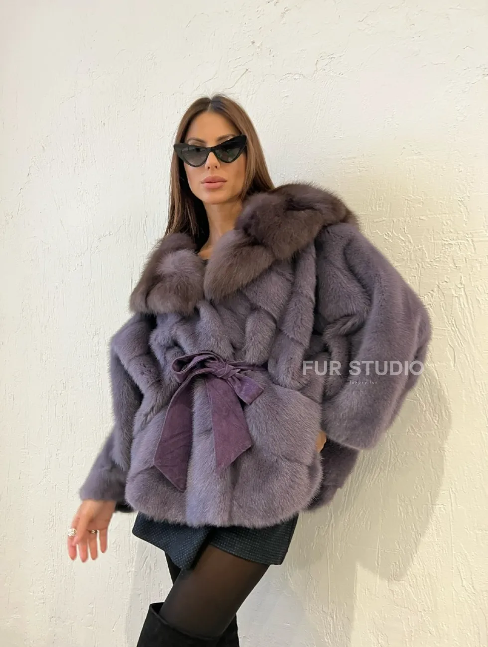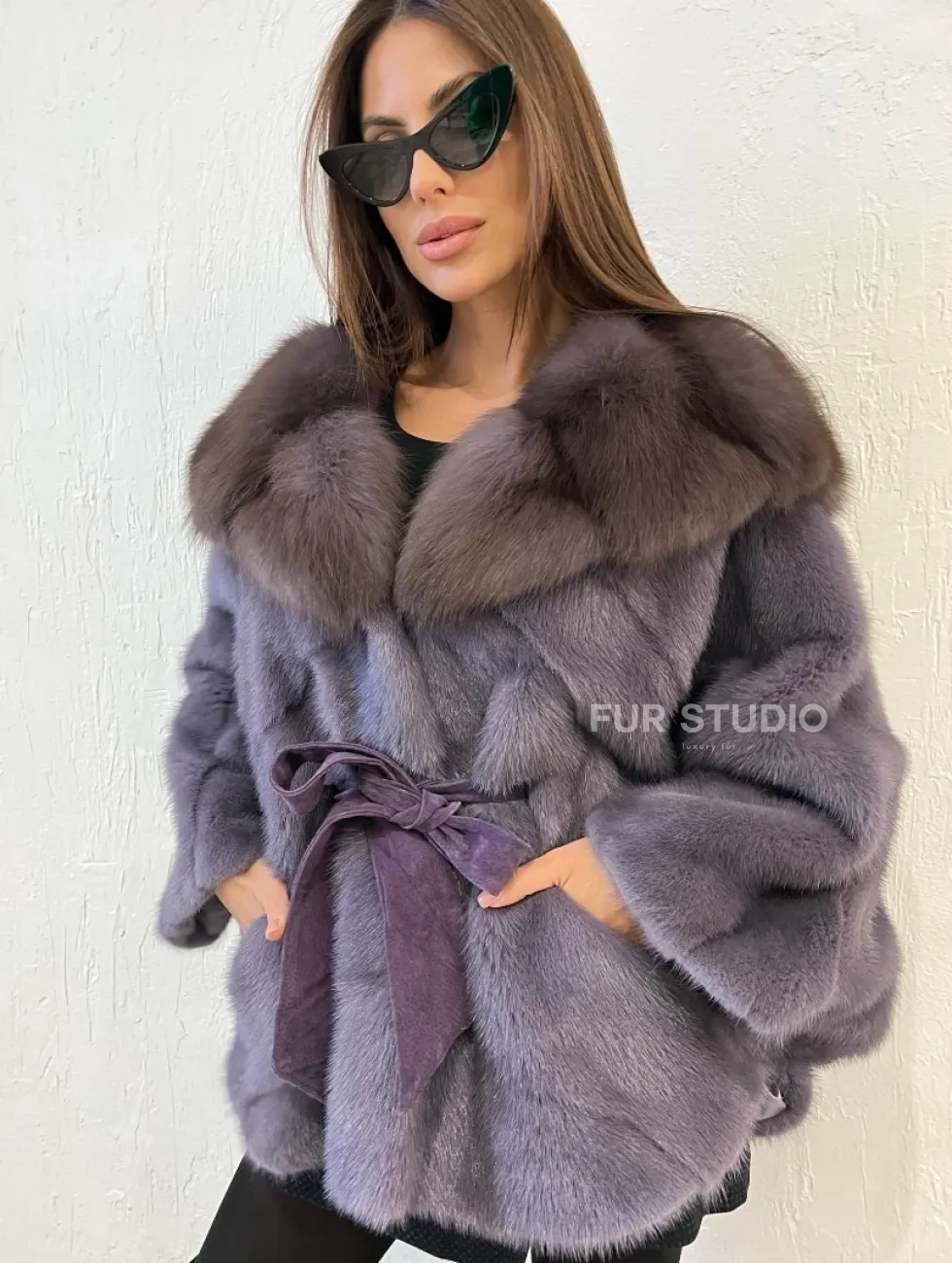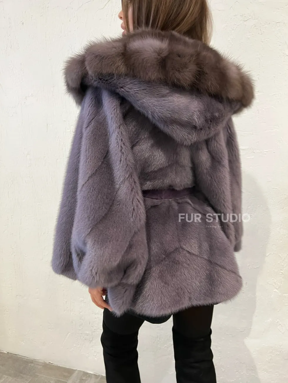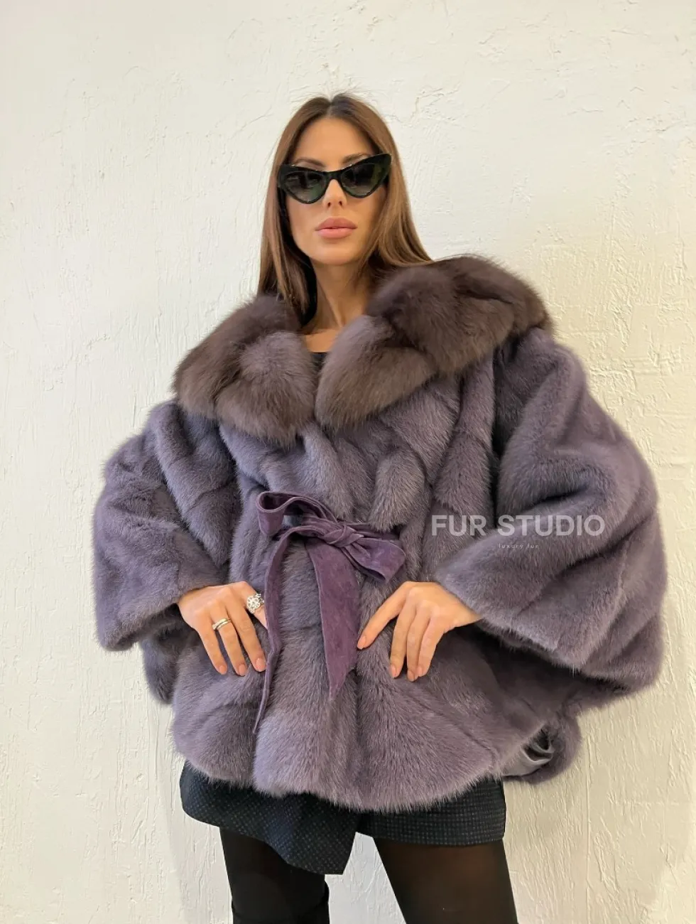 Шуба норковая - пончо с капюшоном куница цвет лаванда создана для роскошных женщин. Благородный оттенок подчеркнет вашу индивидуальность. Цвет лаванда достаточно редкий, поэтому вы будете привлекать внимание. Длина удобна в носке и не сковывает движений. Это удобно, если вы водите машину. Непревзойденное качество изделия будет доставлять удовольствие владелице долгие годы.
