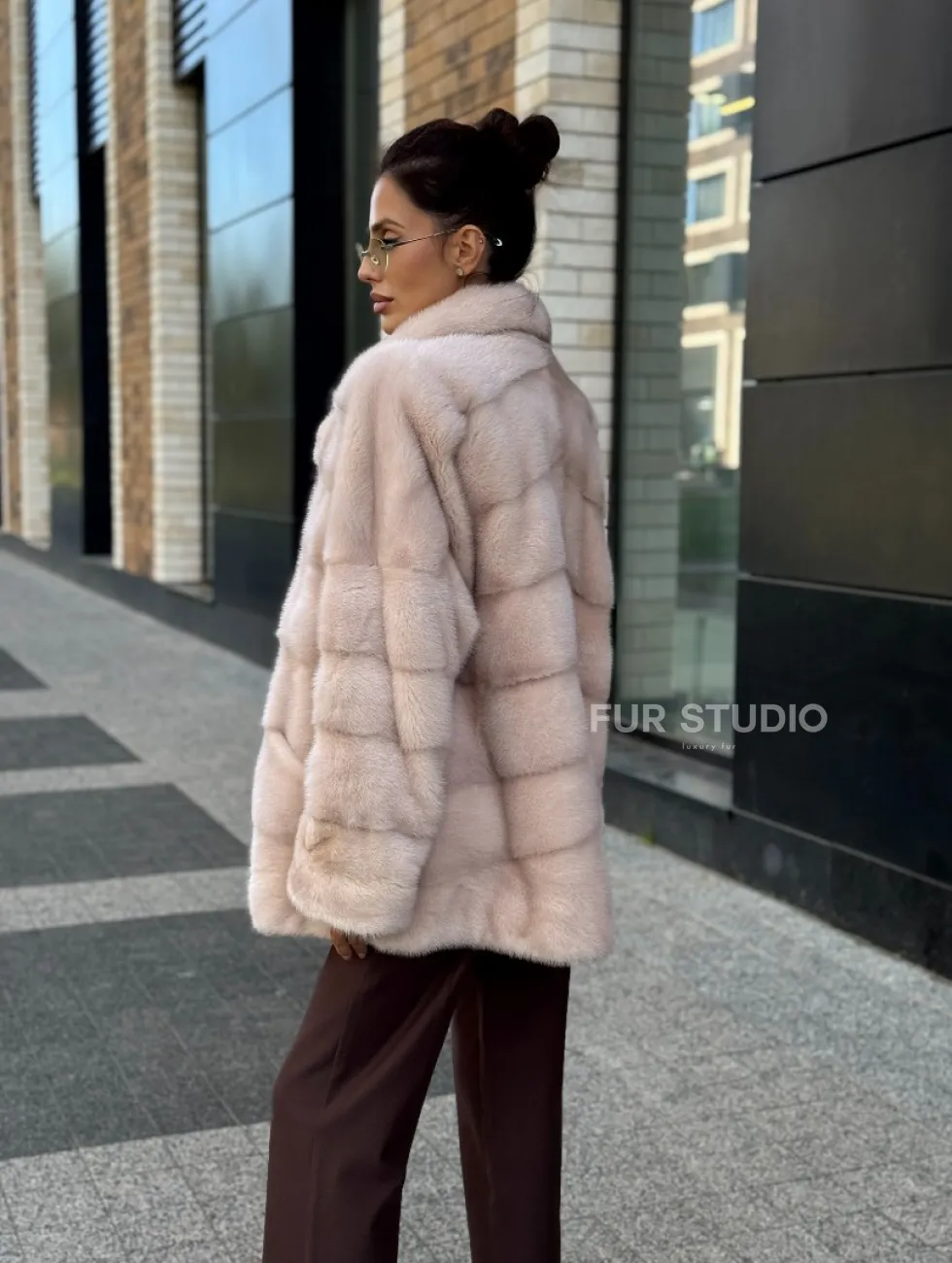 Шуба норковая пудрового цвета с английским воротником доступна для покупки в нашем шоуруме Furs Studio в Чите. У нас так же есть доставка во все города России. Добавьте немного роскоши в свой гардероб с этой шубой, которая будет служить вам многие годы.