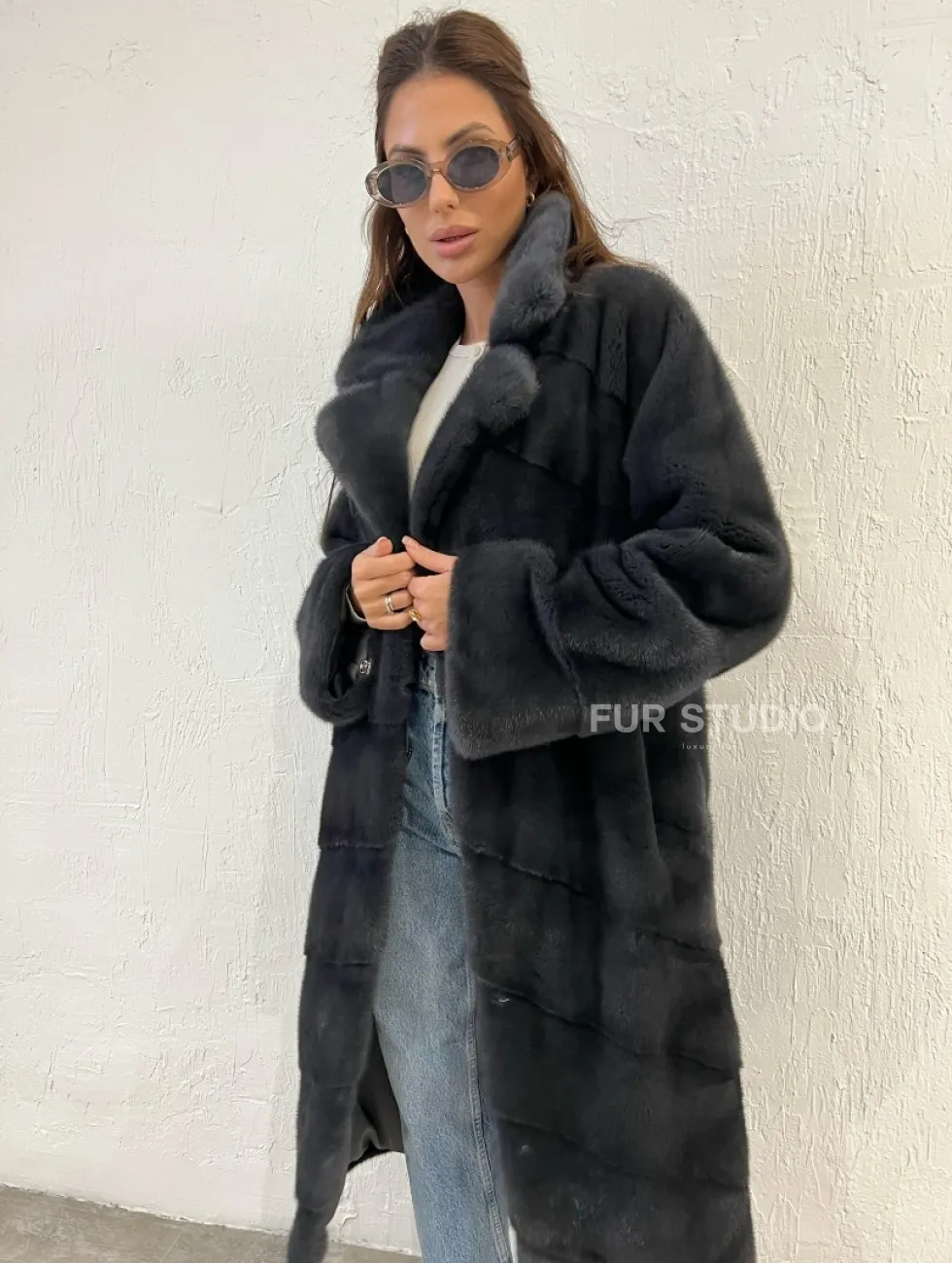 Цвет графит акцентирует внимание на оттенке волос и кожи владелицы. Модель можно носить с джинсами, леггинсами, но подойдет и для вечернего мероприятия. Добавьте к образу оригинальную сумочку, стильную обувь и вы будете выглядеть, как звезда Голливуда. Купить шубу норковую с английским воротником цвета графит могут девушки, которые любят блистать.