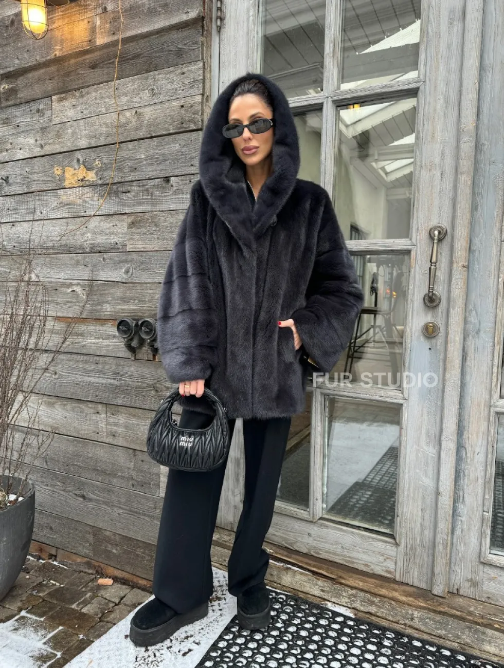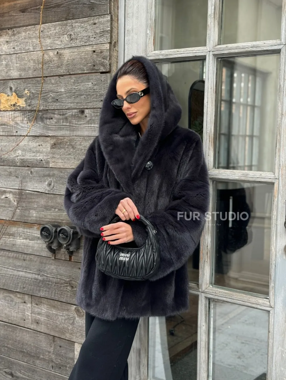 Шуба норковая с капюшоном - цвет графит доступна для покупки в нашем шоуруме Furs Studio в Чите. У нас так же есть доставка во все города России. Добавьте немного роскоши в свой гардероб с этой шубой, которая будет служить вам многие годы.