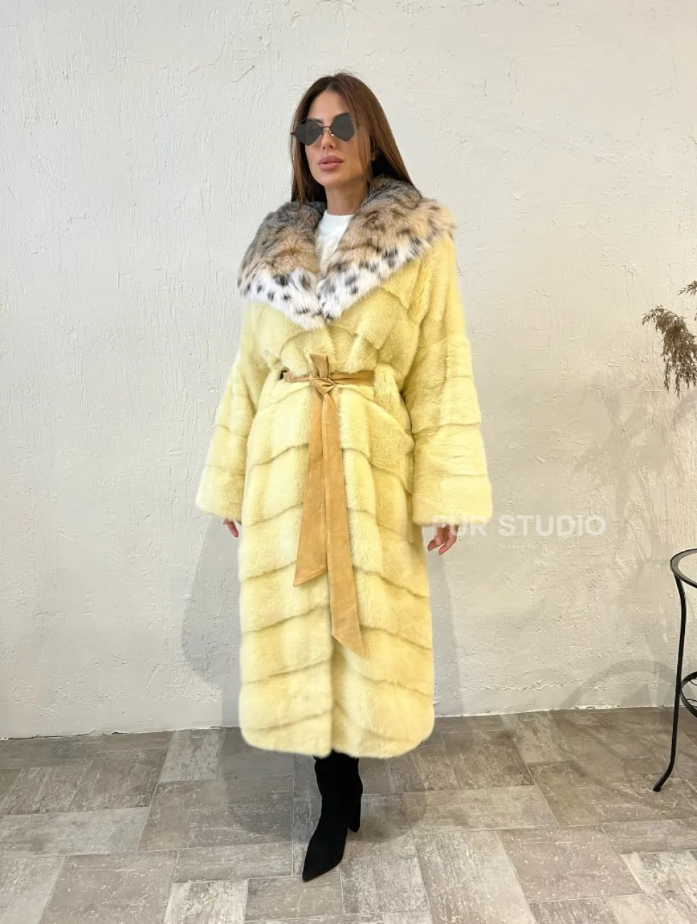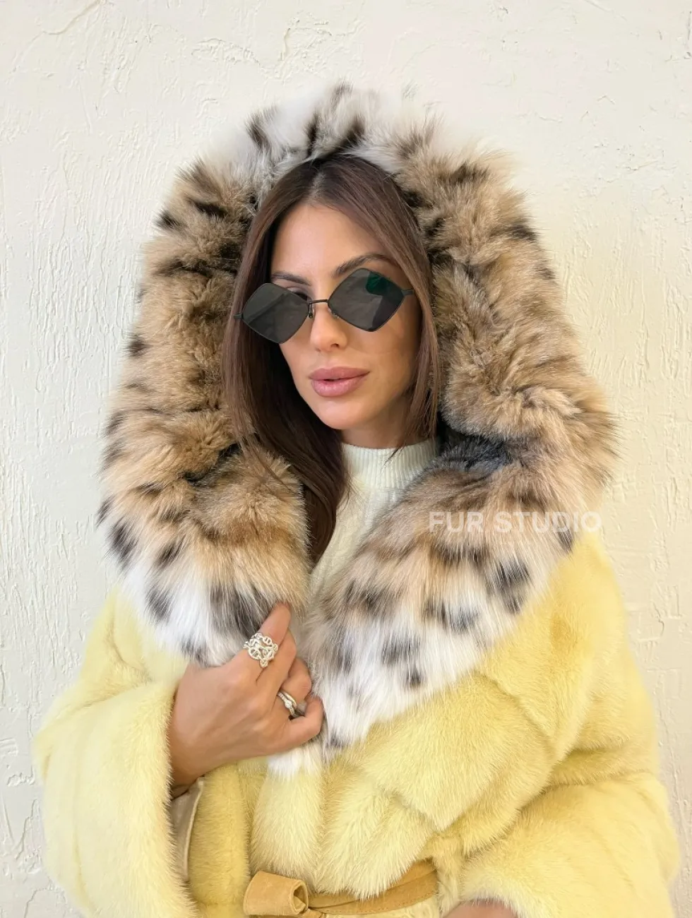 Шуба норковая с капюшоном из меха рыси в лимонном цвете доступна для покупки в нашем шоуруме Furs Studio в Чите. У нас так же есть доставка во все города России. Добавьте немного роскоши в свой гардероб с этой шубой, которая будет служить вам многие годы.