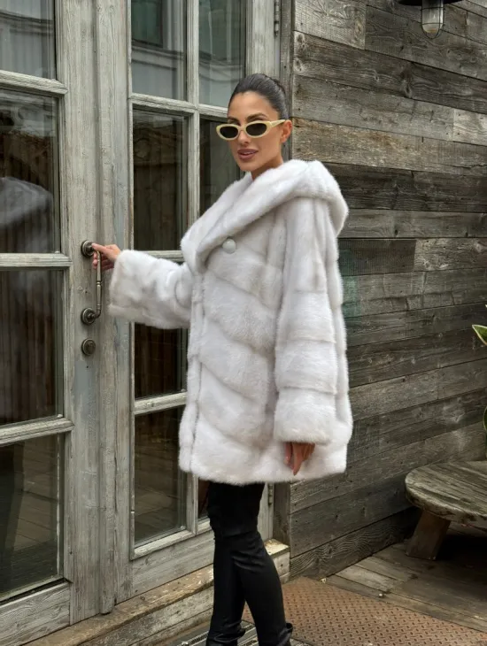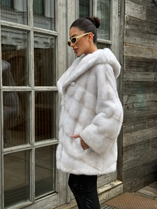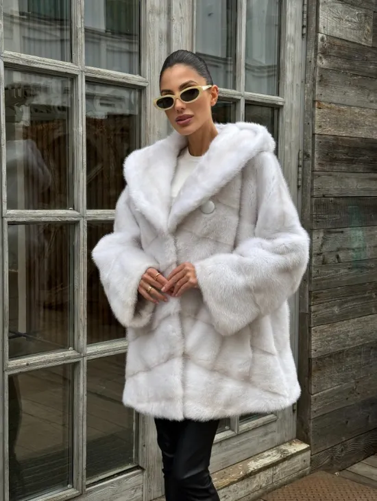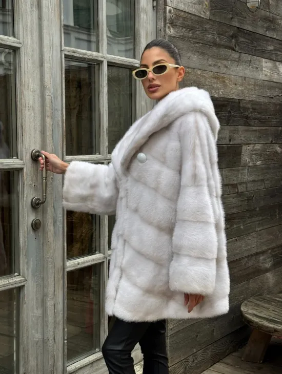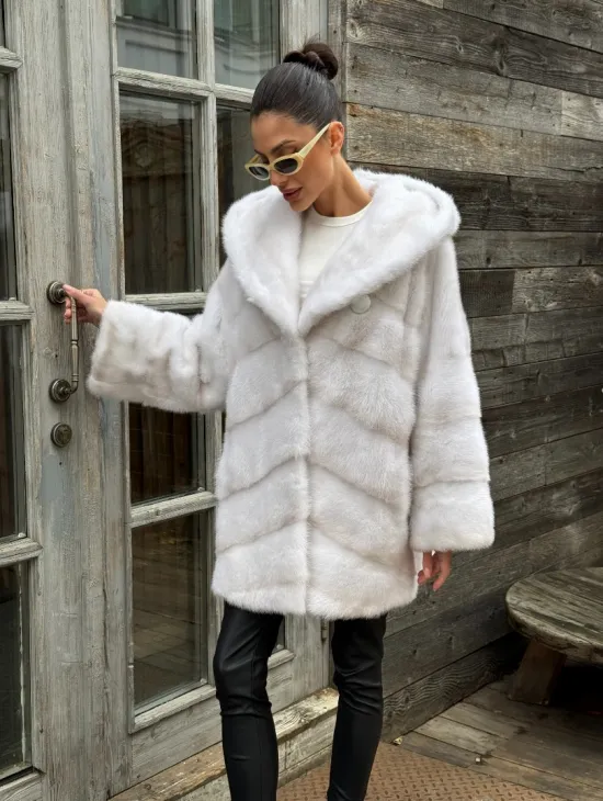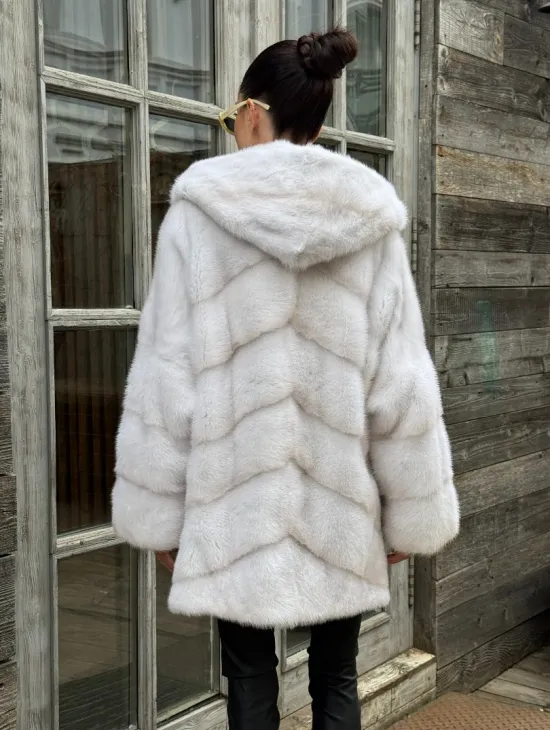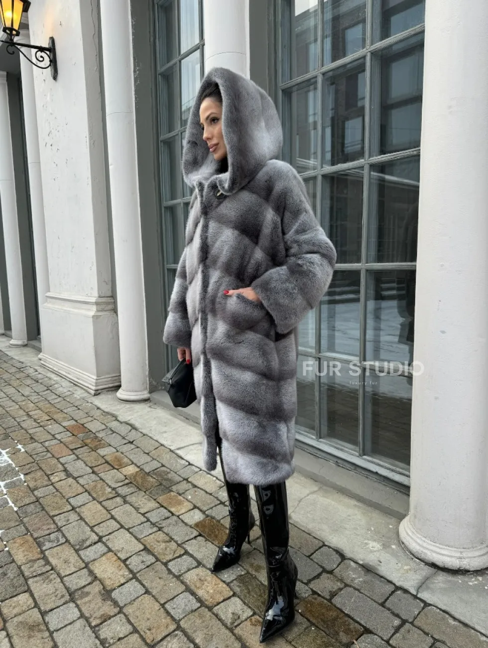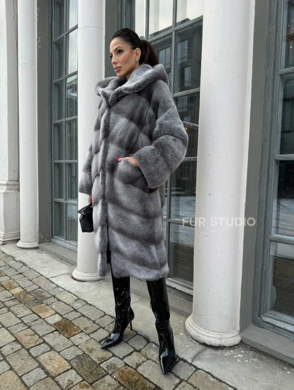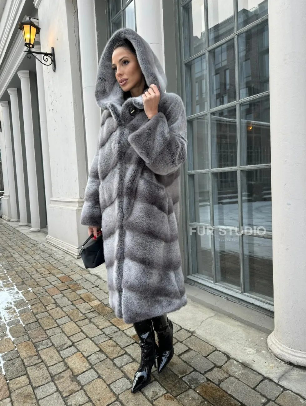 Шуба норковая с капюшоном, паркет - цвет графит-хамелеон доступна для покупки в нашем шоуруме Furs Studio в Чите. У нас так же есть доставка во все города России. Добавьте немного роскоши в свой гардероб с этой шубой, которая будет служить вам многие годы.