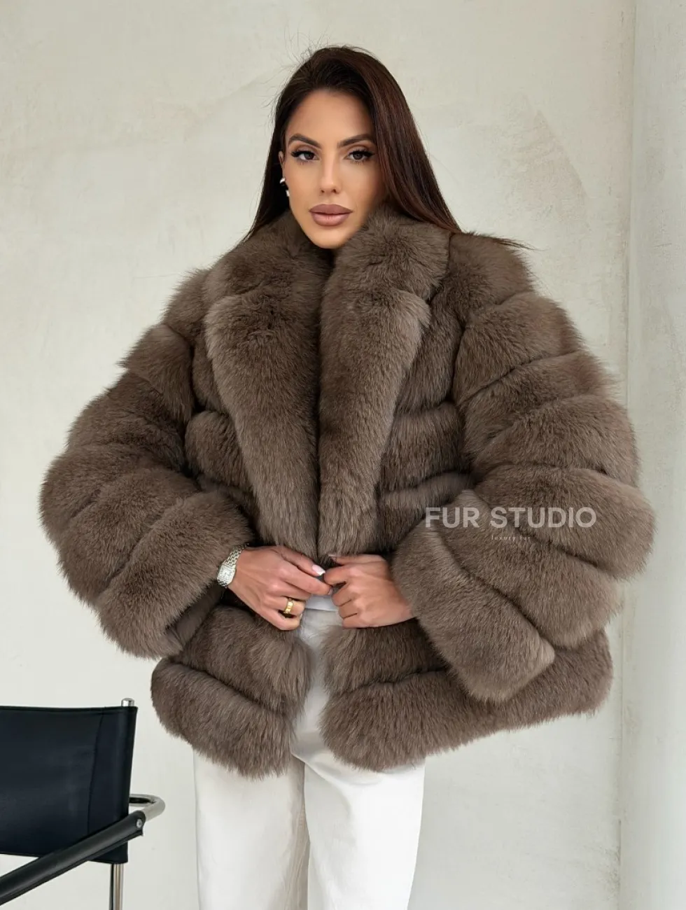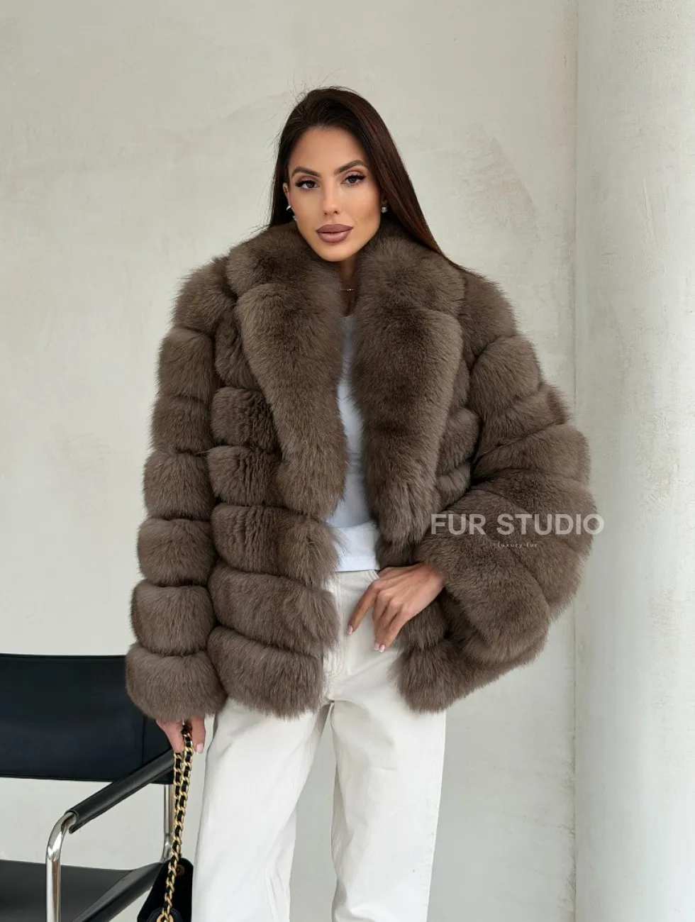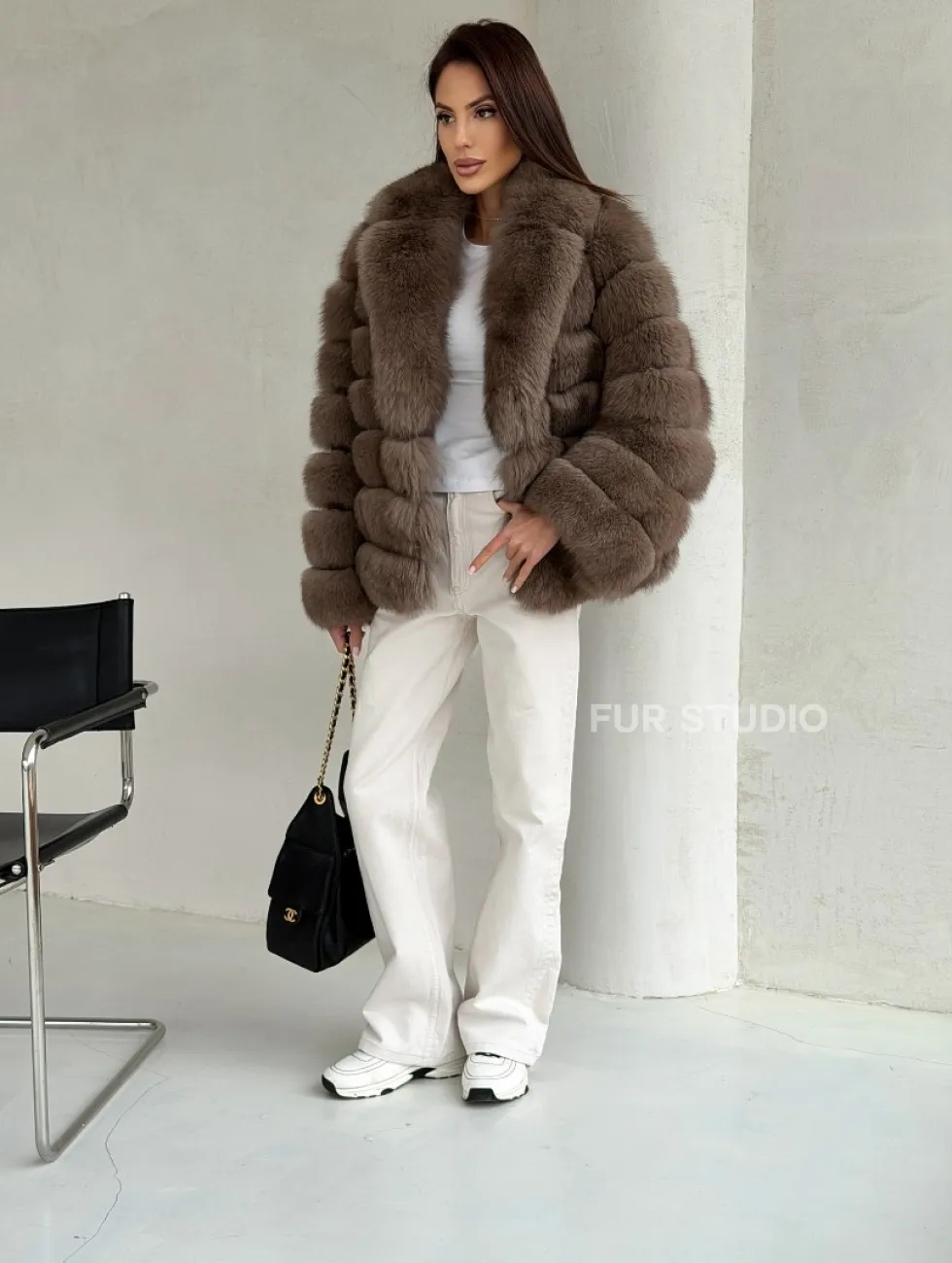 Мех данной шубы финский песец, цвет коричневый. Предлагается в размерах от 42 до 48. Длина модели 60-65 см, что выгодно подчеркивает фигуру девушек. Эта модель идеально подойдет для девушек и женщин, предпочитающих роскошные натуральные меха.