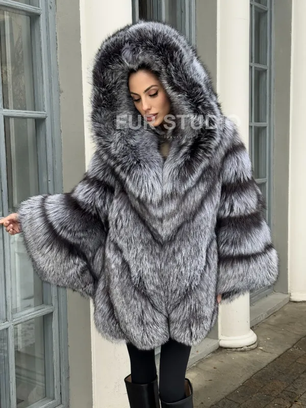 Шуба - пончо из чернобурки с капюшоном доступна для покупки в нашем шоуруме Furs Studio в Чите. У нас так же есть доставка во все города России. Добавьте немного роскоши в свой гардероб с этой шубой, которая будет служить вам многие годы.
