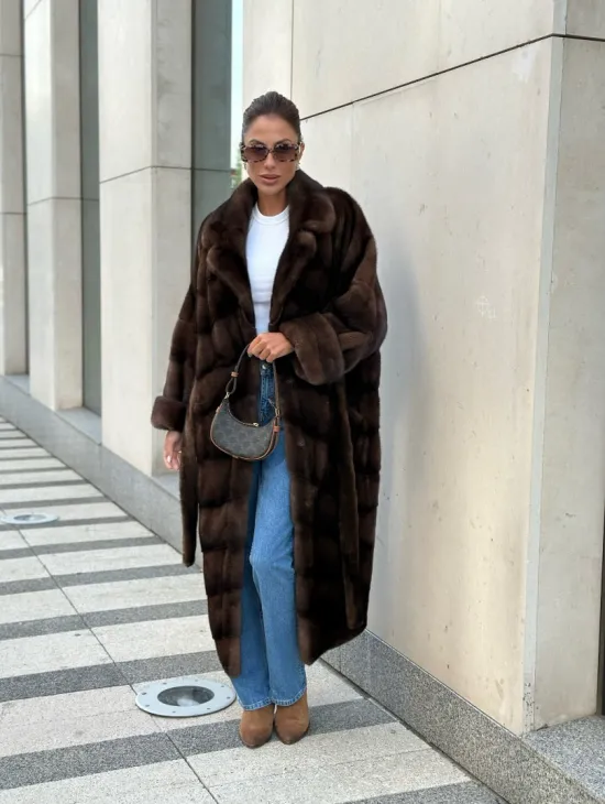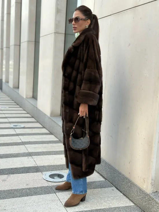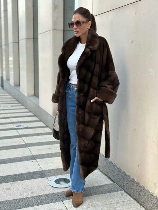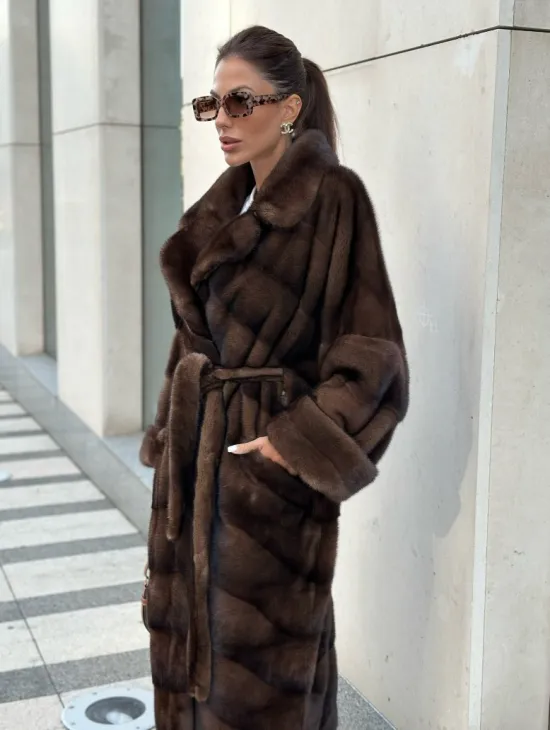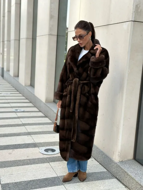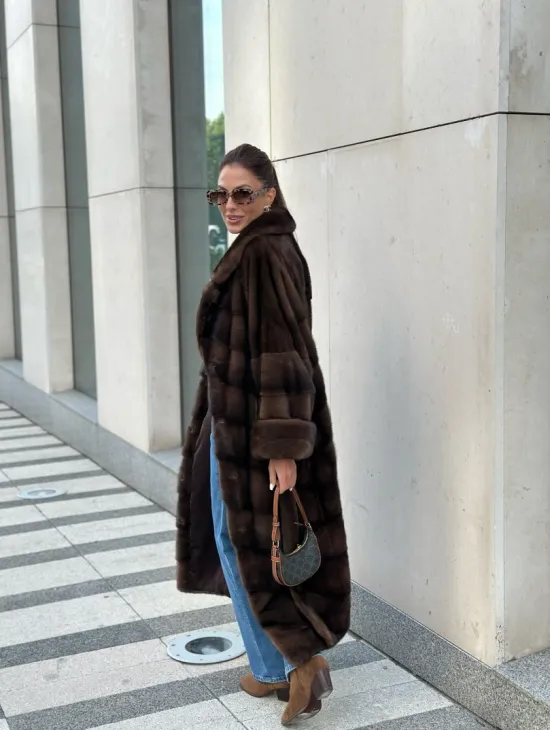 Мех данной шубы аукционная норка , цвет коричневый. Предлагается в размерах от 42 до 52. Длина модели 70-75 см, что выгодно подчеркивает фигуру девушек. Эта модель идеально подойдет для девушек и женщин, предпочитающих роскошные натуральные меха.