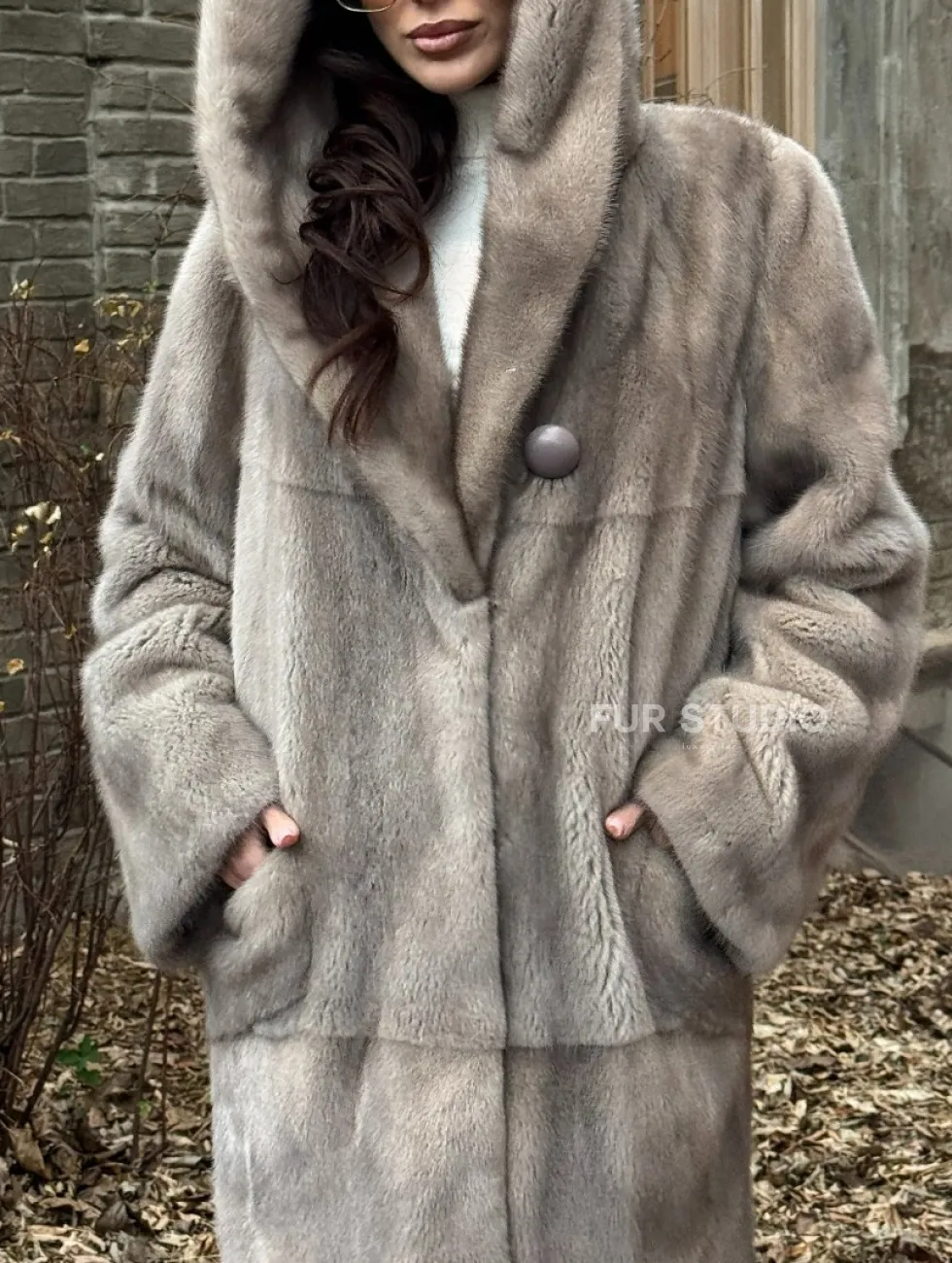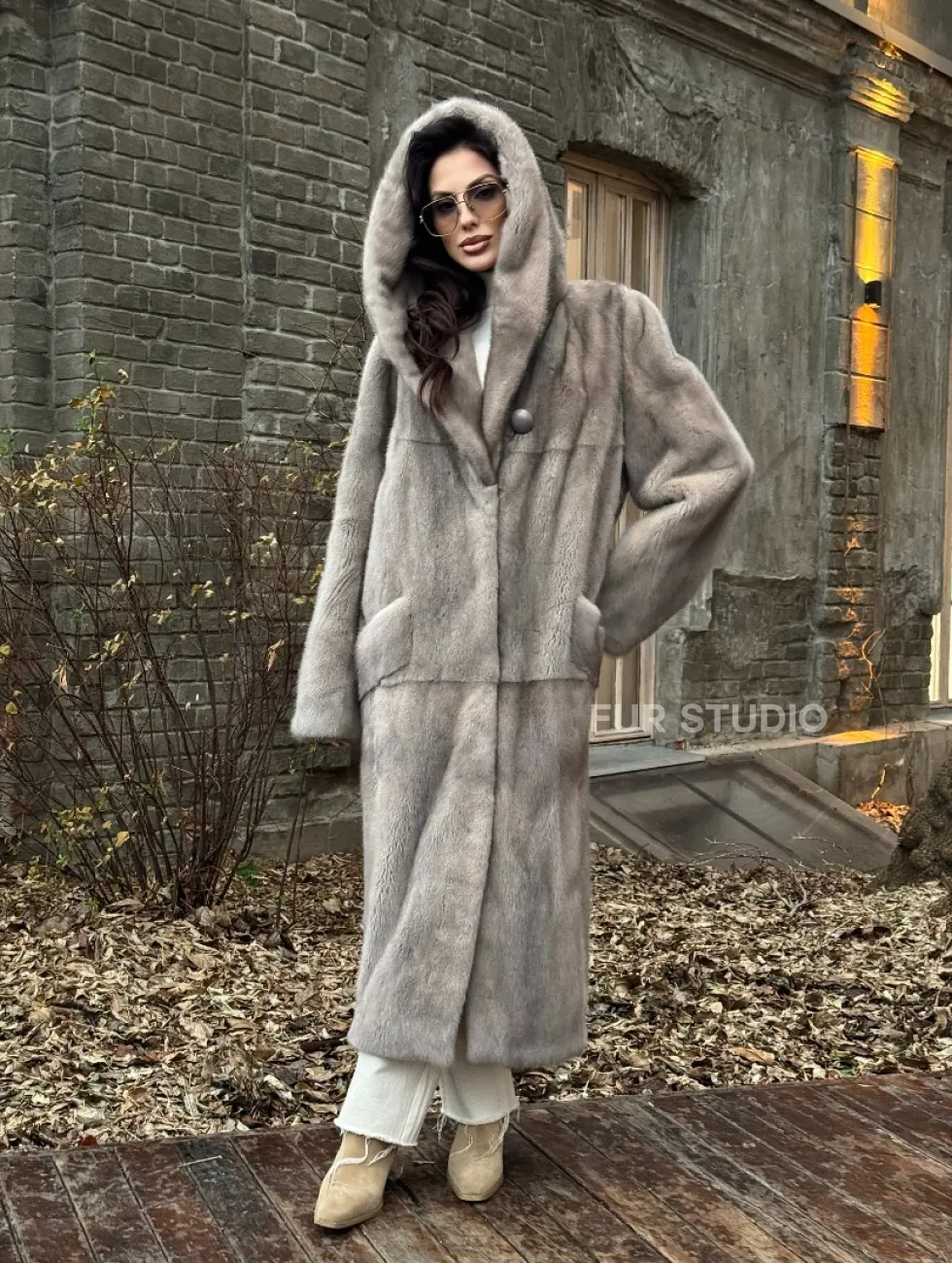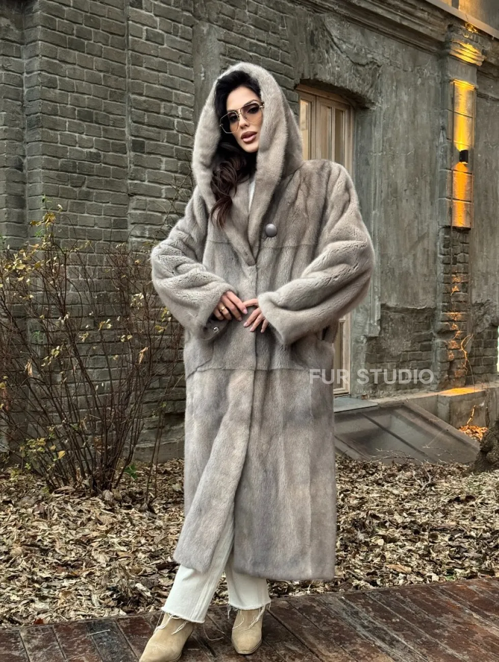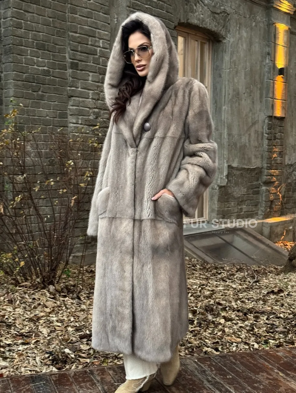 Шуба прямого кроя с капюшоном и меховым поясом в сером цвете доступна для покупки в нашем шоуруме Furs Studio в Чите. У нас так же есть доставка во все города России. Добавьте немного роскоши в свой гардероб с этой шубой, которая будет служить вам многие годы.