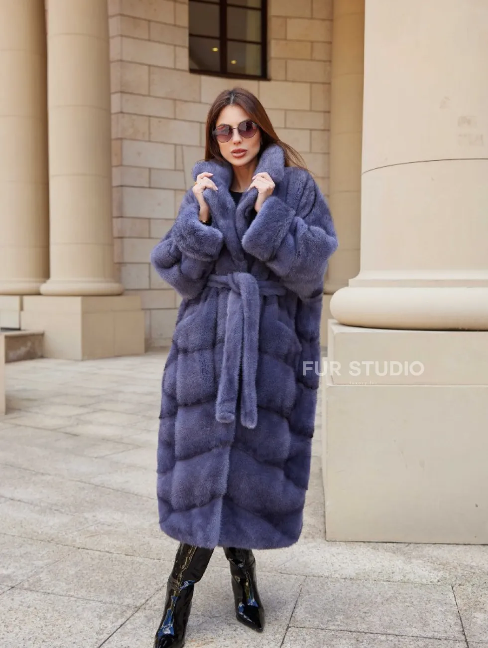 Шуба с поясом из аукционной норки цвет сапфир доступна для покупки в нашем шоуруме Furs Studio в Чите. У нас так же есть доставка во все города России. Добавьте немного роскоши в свой гардероб с этой шубой, которая будет служить вам многие годы.