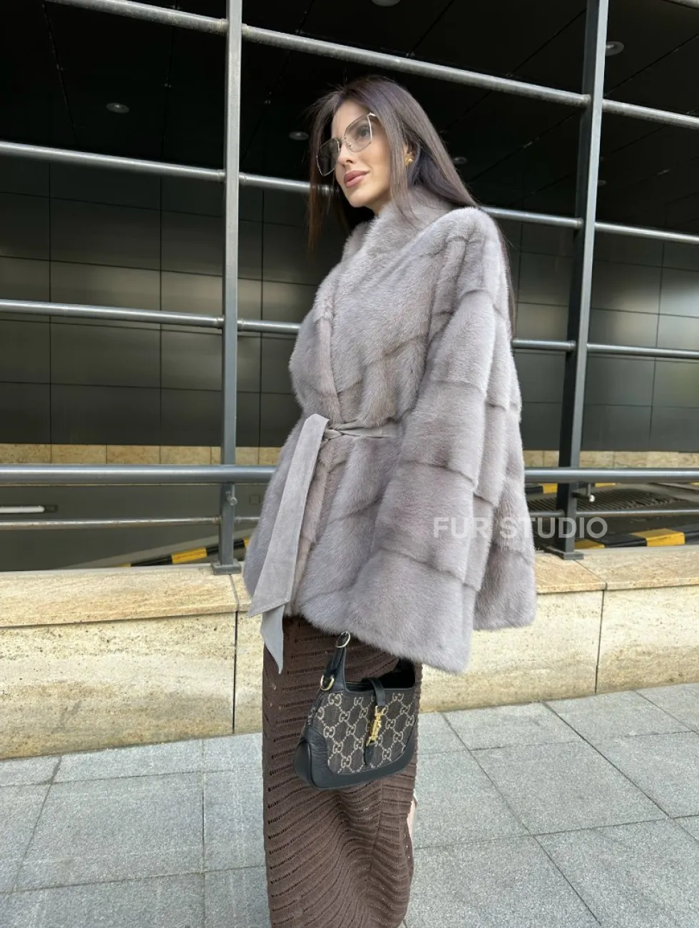 Мех данной шубы аукционная норка, цвет серый. Предлагается в размерах от 42 до 54. Длина модели 70-75 см, что выгодно подчеркивает фигуру девушек. Эта модель идеально подойдет для девушек и женщин, предпочитающих роскошные натуральные меха.