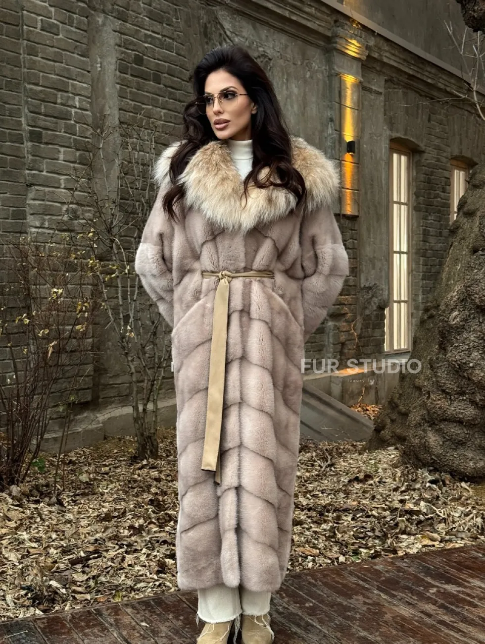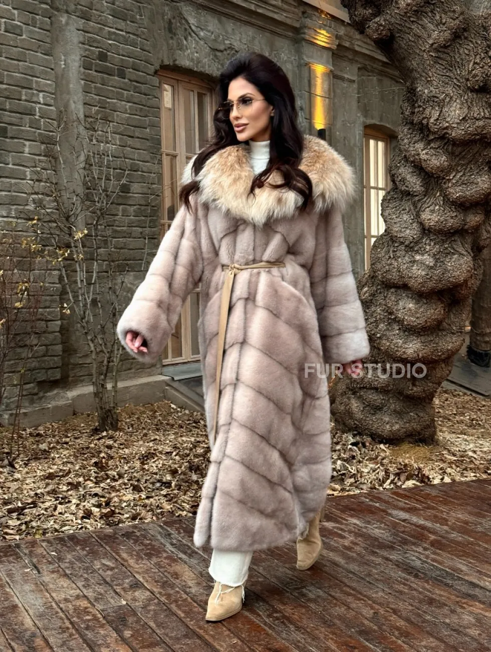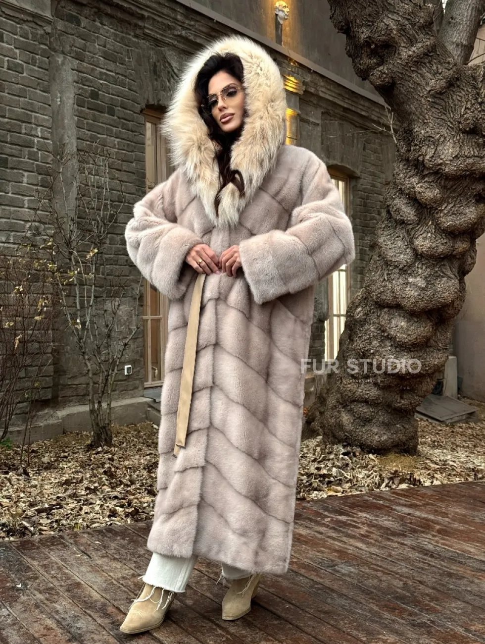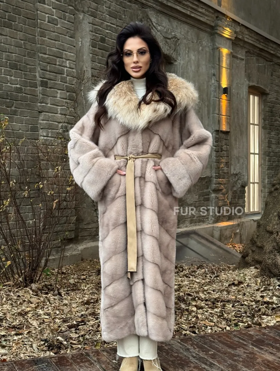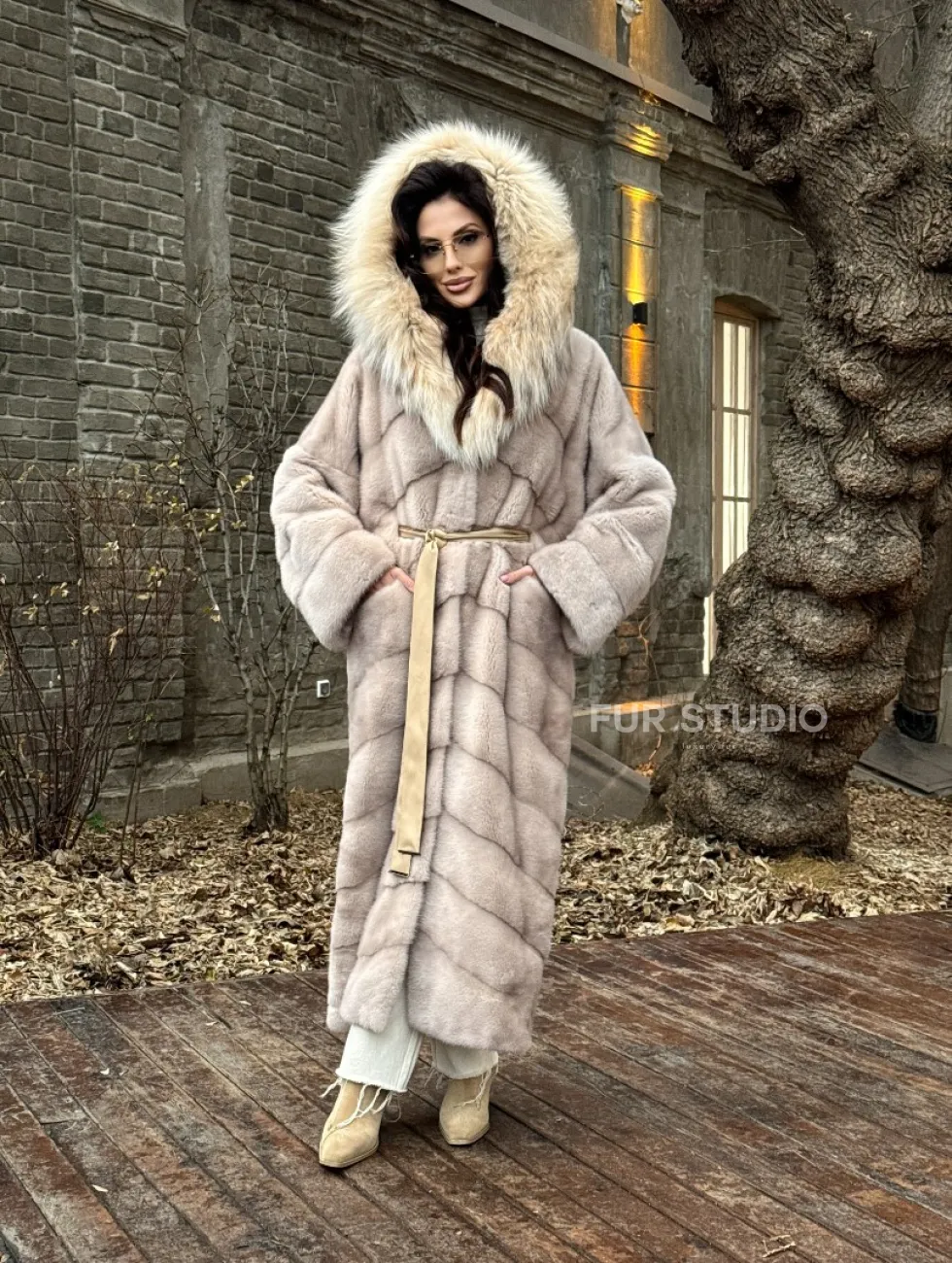 Шуба теплая из меха норки с капюшоном из натуральной рыси доступна для покупки в нашем шоуруме Furs Studio в Чите. У нас так же есть доставка во все города России. Добавьте немного роскоши в свой гардероб с этой шубой, которая будет служить вам многие годы.