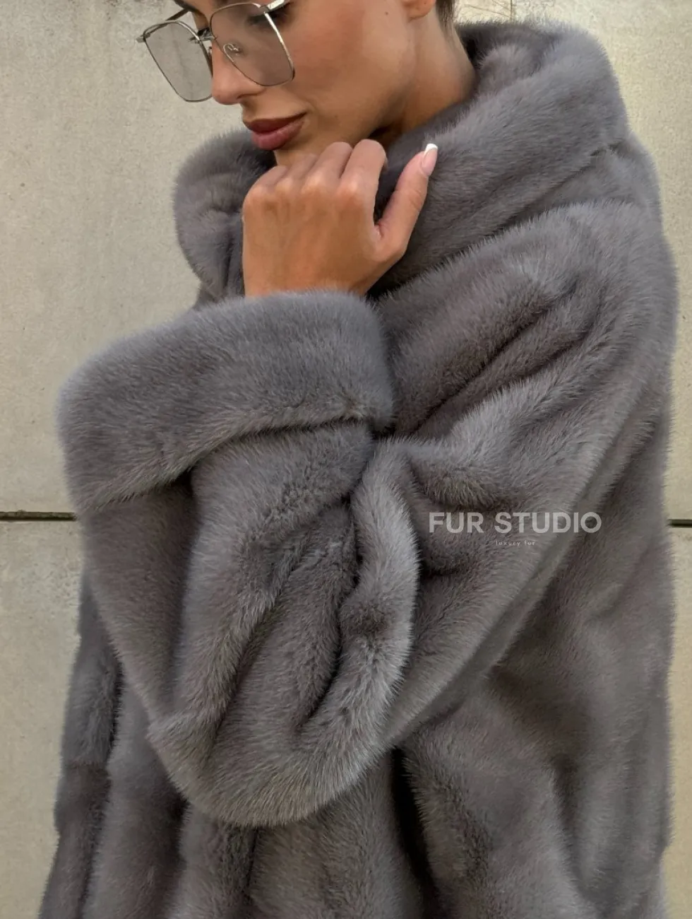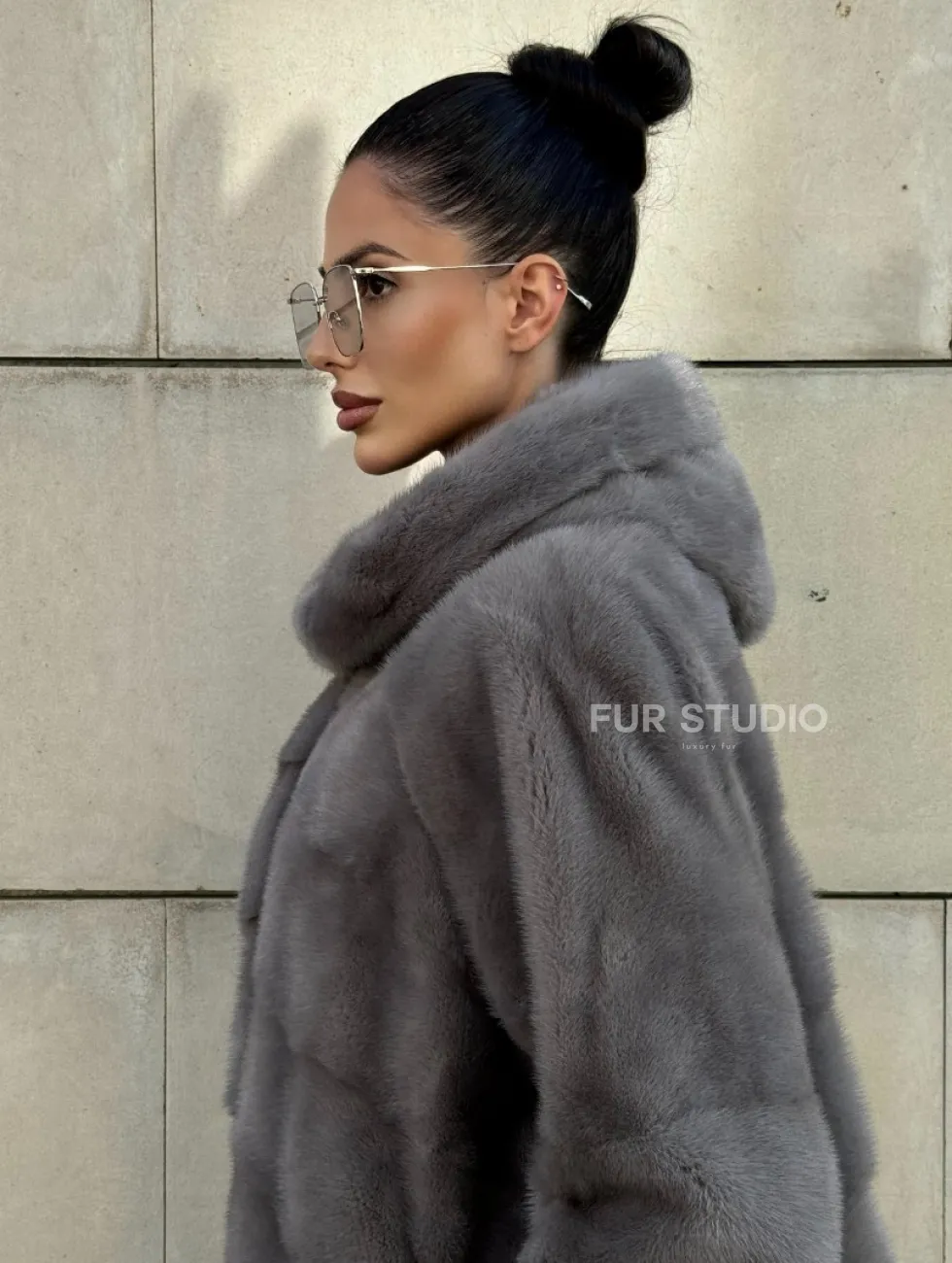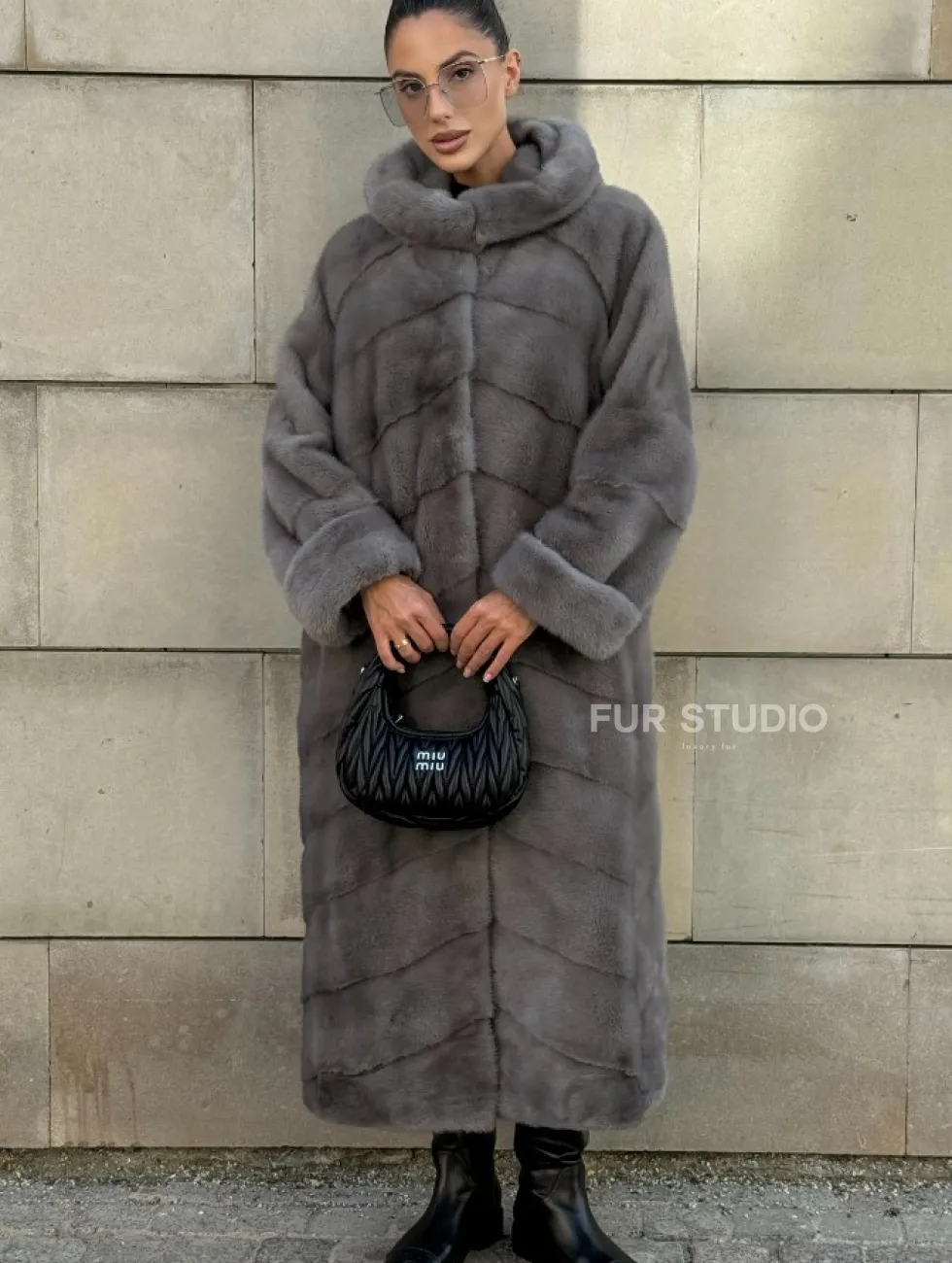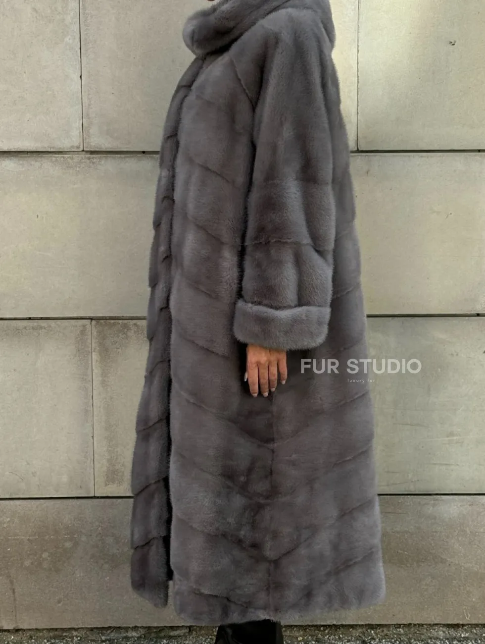 Шуба в диагональной выкладке меха норки, графит грей с капюшоном доступна для покупки в нашем шоуруме Furs Studio в Чите. У нас так же есть доставка во все города России. Добавьте немного роскоши в свой гардероб с этой шубой, которая будет служить вам многие годы.