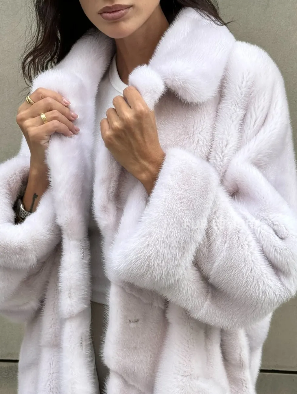 Мех данной шубы аукционная норка, цвет белый. Предлагается в размерах от 42 до 50. Длина модели 85-90 см, что выгодно подчеркивает фигуру девушек. Эта модель идеально подойдет для девушек и женщин, предпочитающих роскошные натуральные меха.