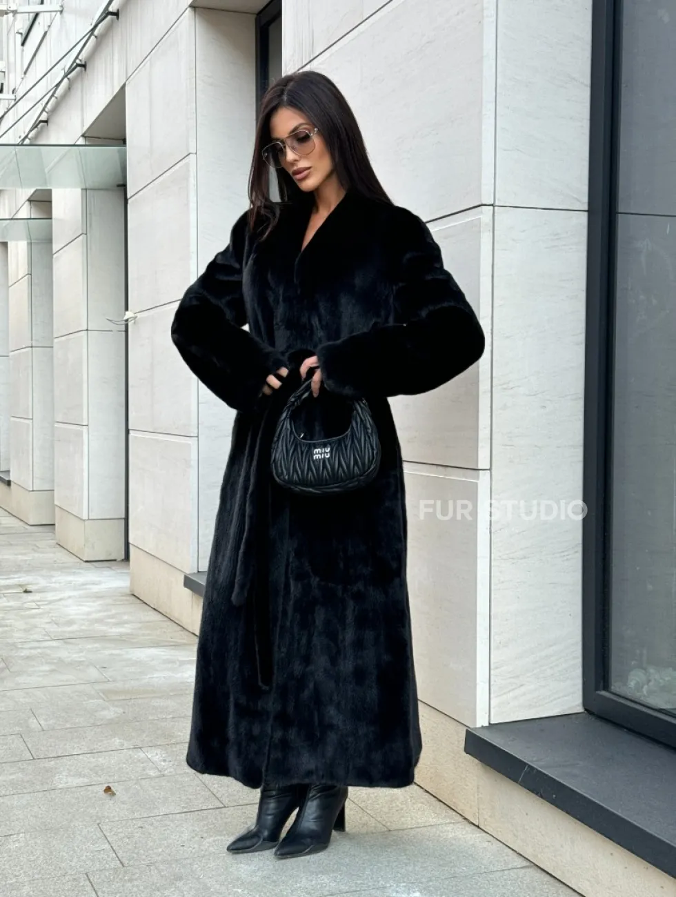 Шуба халат из аукционного меха норки, V-образный воротник с поясом доступна для покупки в нашем шоуруме Furs Studio в Чите. У нас так же есть доставка во все города России. Добавьте немного роскоши в свой гардероб с этой шубой, которая будет служить вам многие годы.