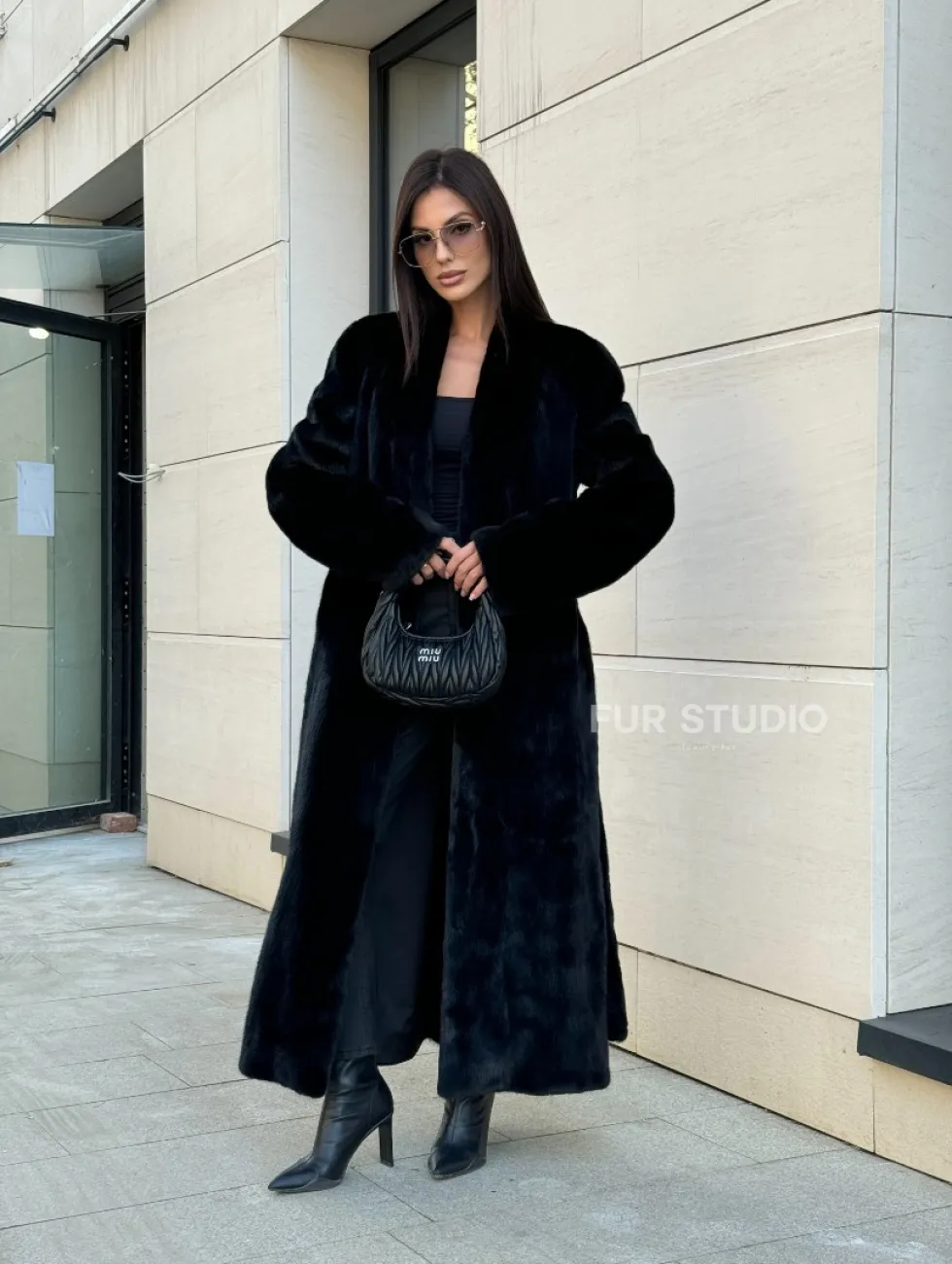 Мех данной шубы аукционная норка, цвет черный. Предлагается в размерах от 42 до 52. Длина модели 125-130 см, что выгодно подчеркивает фигуру девушек. Эта модель идеально подойдет для девушек и женщин, предпочитающих роскошные натуральные меха.