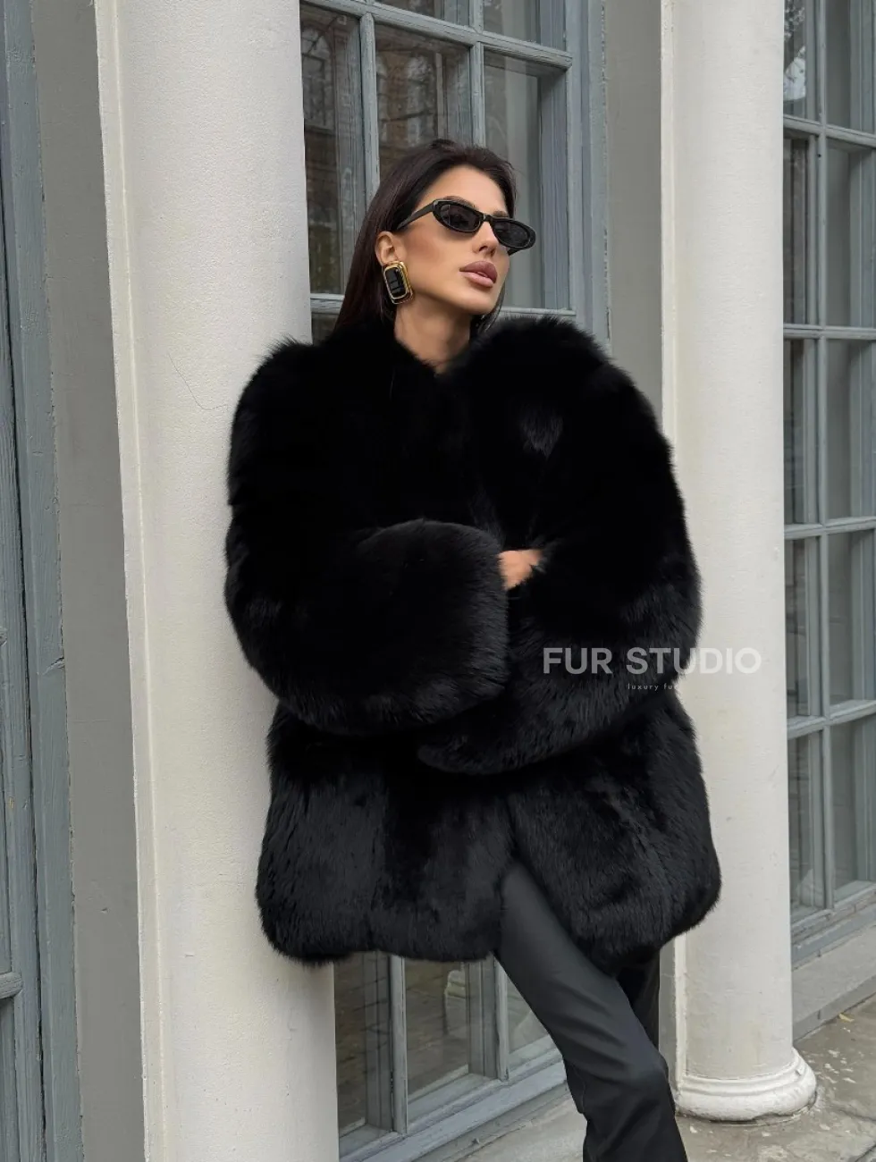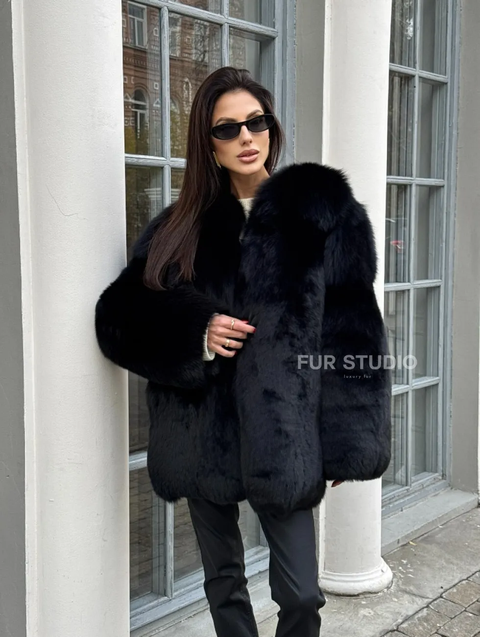Шуба - жакет из меха песца цельные платины TOTAL BLACK доступна для покупки в нашем шоуруме Furs Studio в Чите. У нас так же есть доставка во все города России. Добавьте немного роскоши в свой гардероб с этой шубой, которая будет служить вам многие годы.