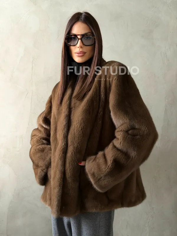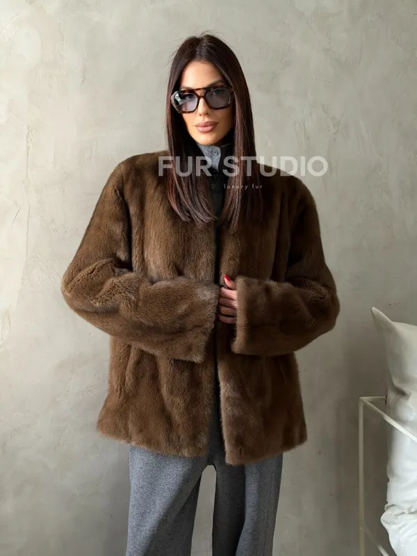Мех данной шубы аукционная норка , цвет коричневый. Предлагается в размерах от 42 до 50. Длина модели 65-70 см, что выгодно подчеркивает фигуру девушек. Эта модель идеально подойдет для девушек и женщин, предпочитающих роскошные натуральные меха.