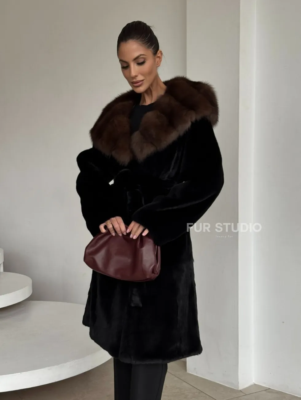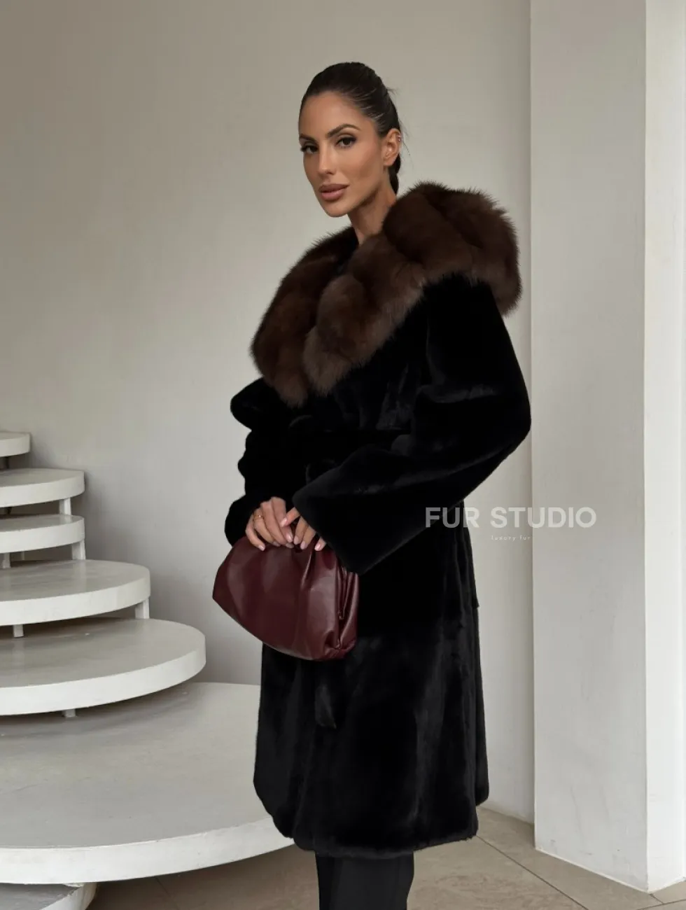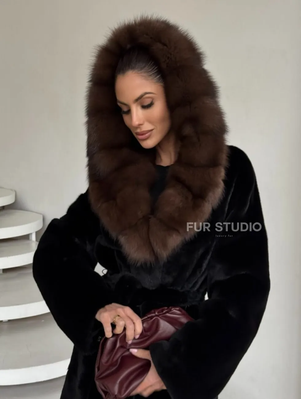 Шуба женская из норки PREMIUM BLACKGLAMA с капюшоном кобра из меха куницы доступна для покупки в нашем шоуруме Furs Studio в Чите. У нас так же есть доставка во все города России. Добавьте немного роскоши в свой гардероб с этой шубой, которая будет служить вам многие годы.