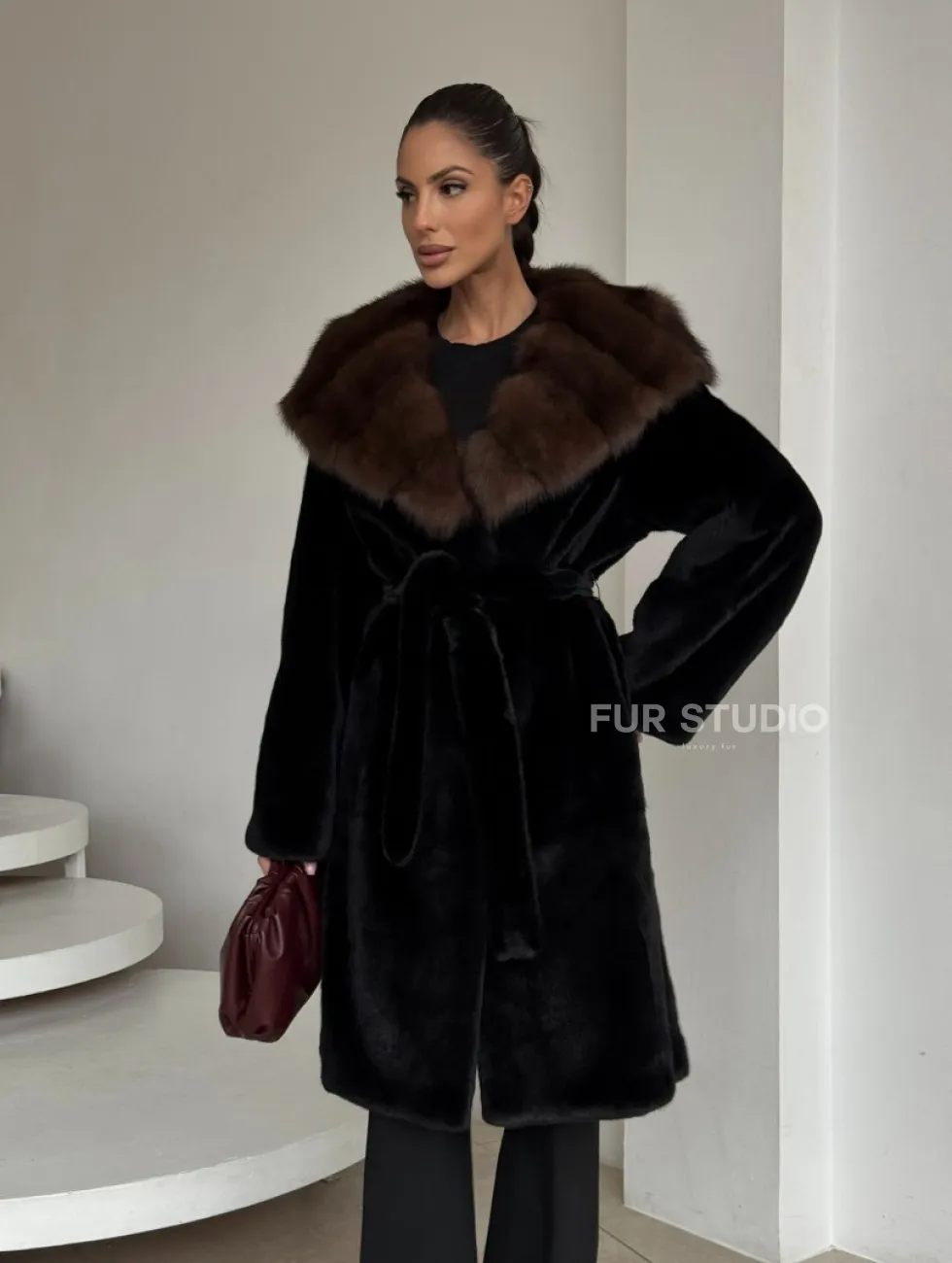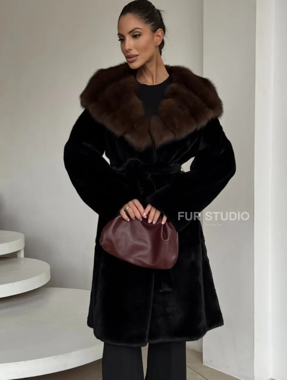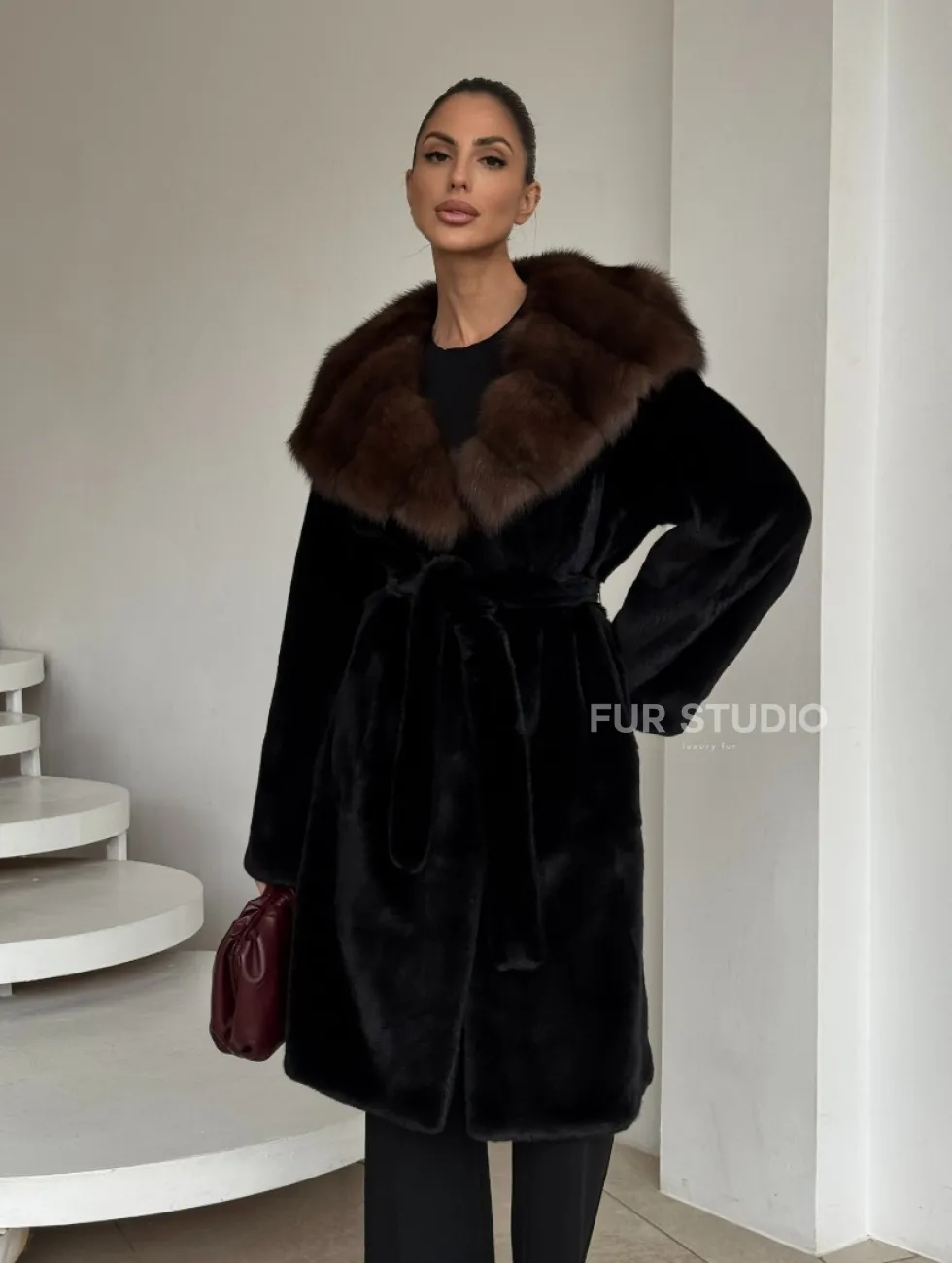 Шуба женская из норки PREMIUM BLACKGLAMA с капюшоном кобра из меха куницы доступна для покупки в нашем шоуруме Furs Studio в Чите. У нас так же есть доставка во все города России. Добавьте немного роскоши в свой гардероб с этой шубой, которая будет служить вам многие годы.