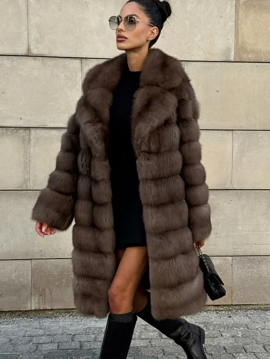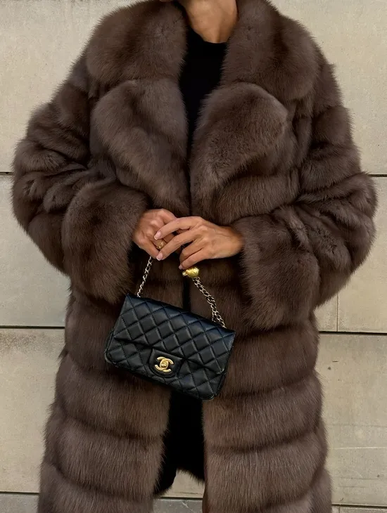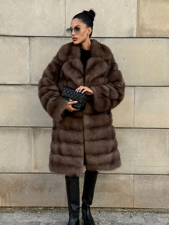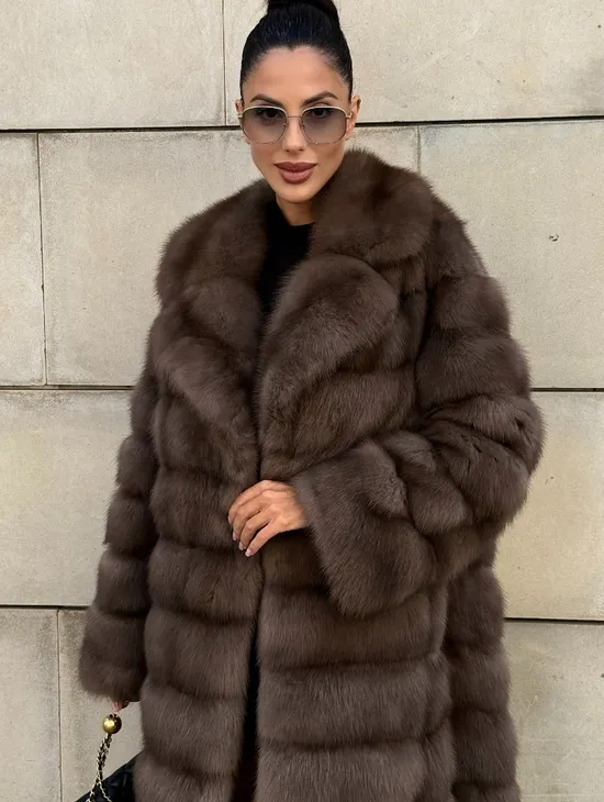 Стильный жакет - полушубок из куницы с V-образным воротником