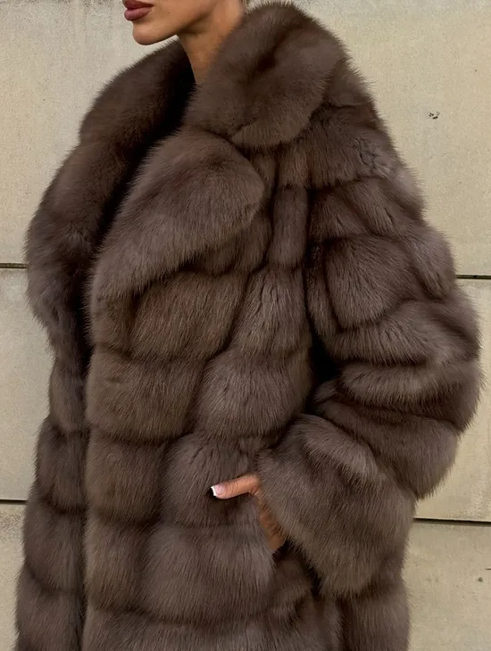 Жилет из меха куницы в цвете Truffle стойка воротник