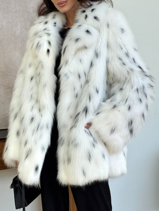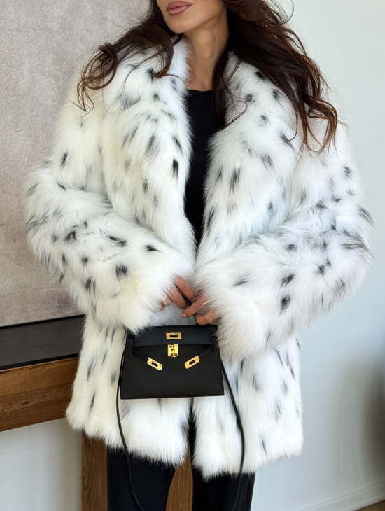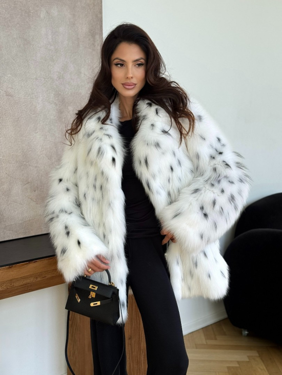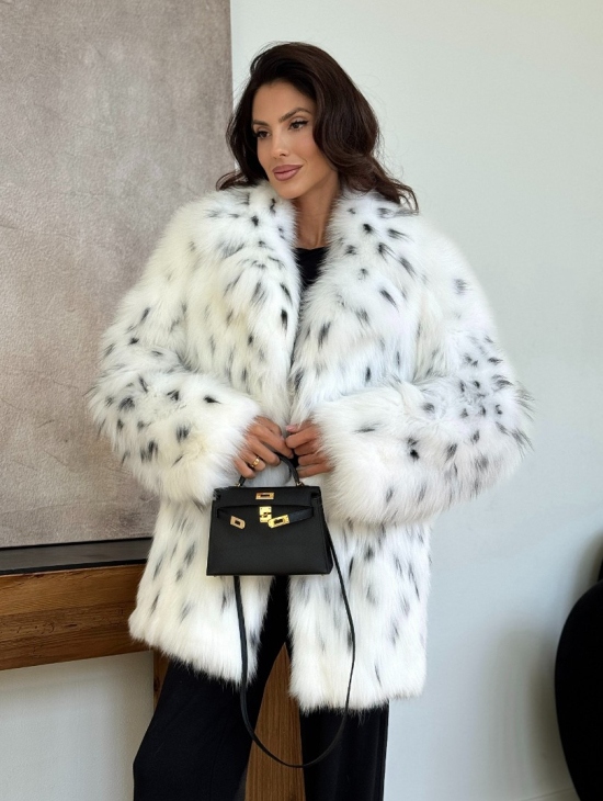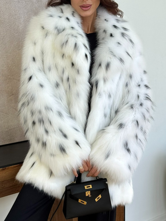 Шуба из меха лисы под рысь - цвет белый, PREMIUM COLLECTION