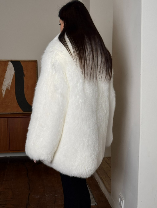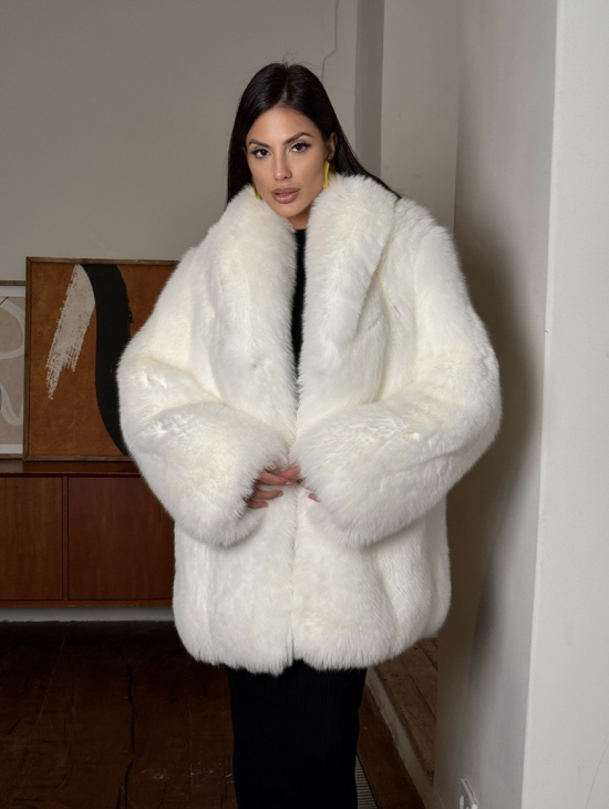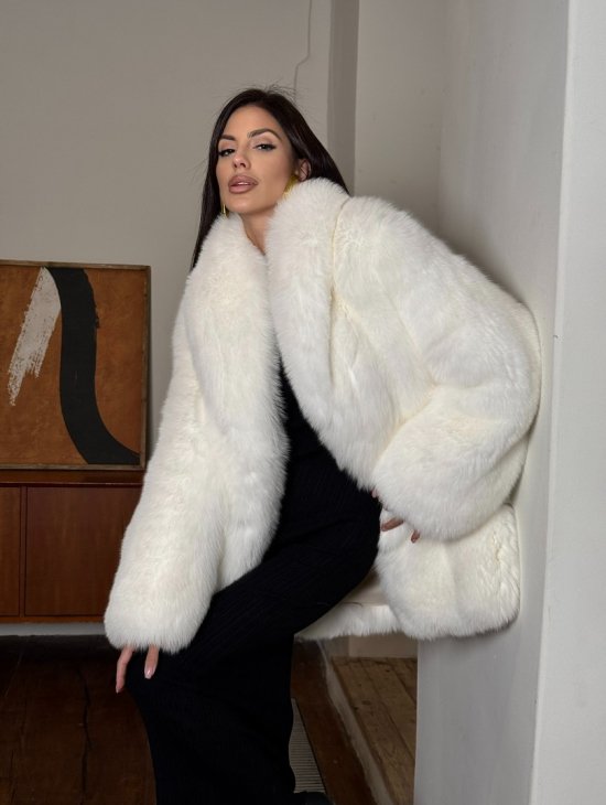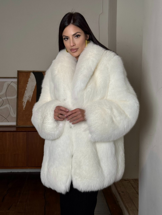 Белая шуба из меха лисы - воротник шаль