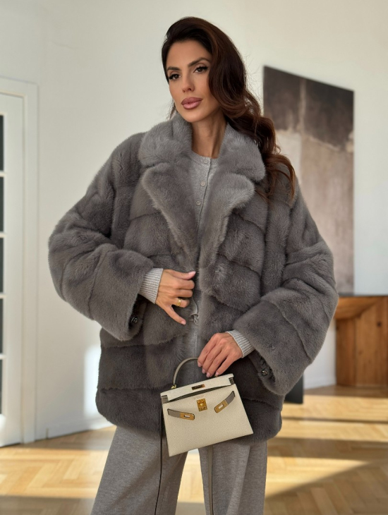 Стильная шубка из меха норки SAGA FURS в цвете соболь